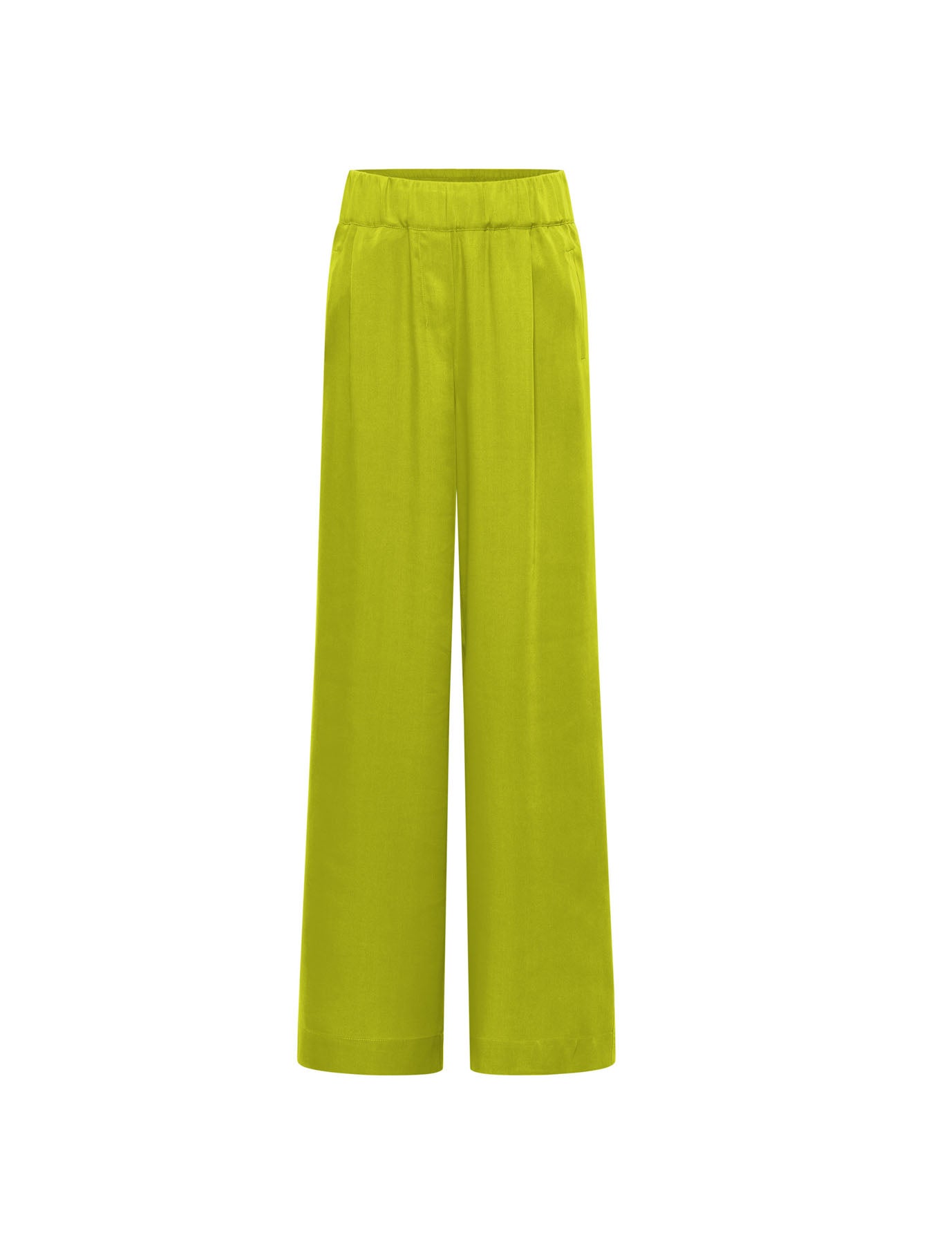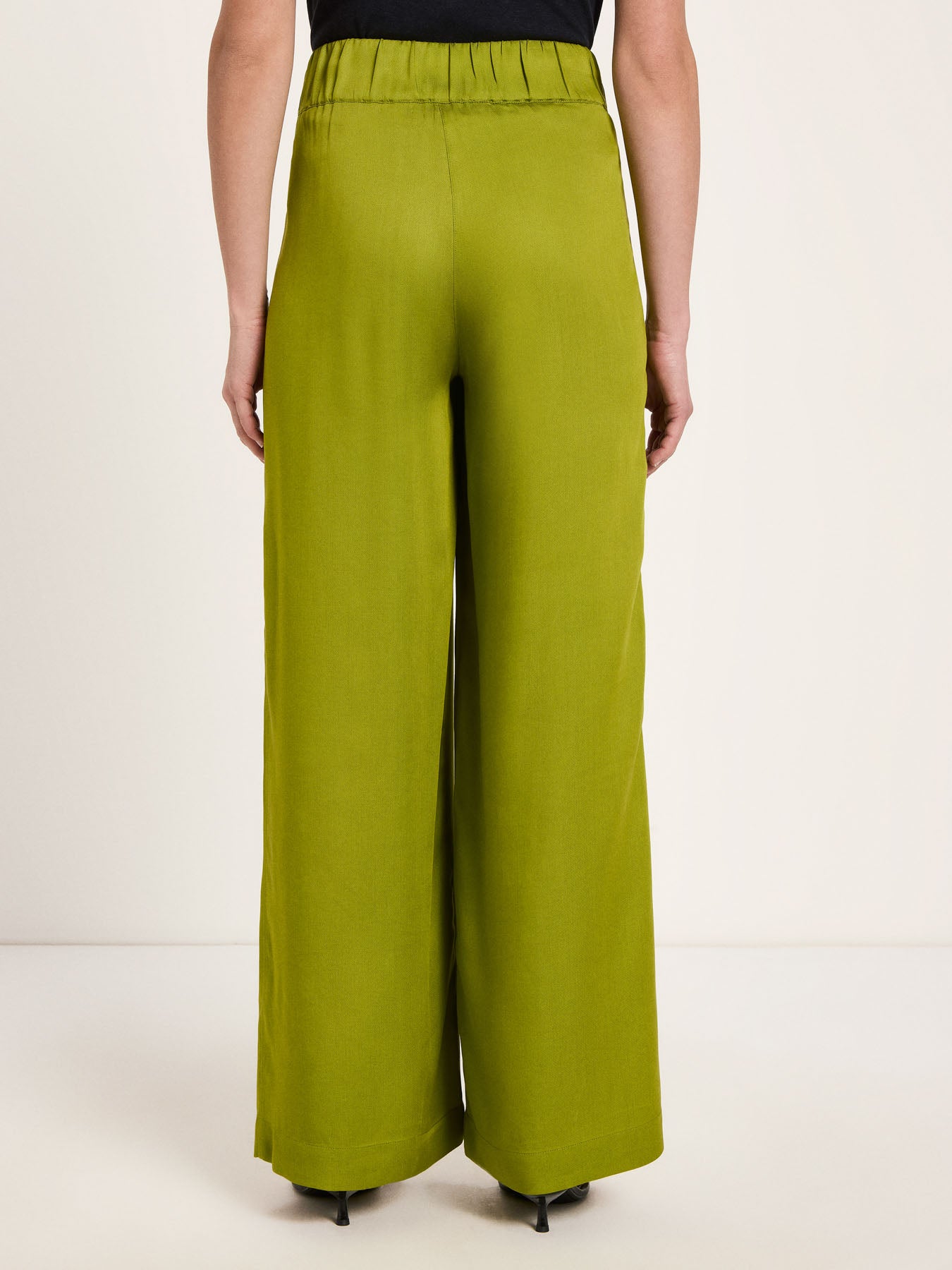 Fließend, weich und unkompliziert elegant: Die Hose mit weitem Bein aus TENCEL™ Lyocell überzeugt durch ihren geschmeidigen Fall, eine angenehm glatte Haptik und femininen Komfort. Der elastische Bund sorgt für eine flexible Passform, während Bundfalten und die lange, gerade Silhouette eine ruhige, stilvolle Linienführung schaffen. Vegan gefertigt – perfekt für bewusste Looks im Alltag oder kombiniert mit der passenden Bluse als unkompliziertes Set.