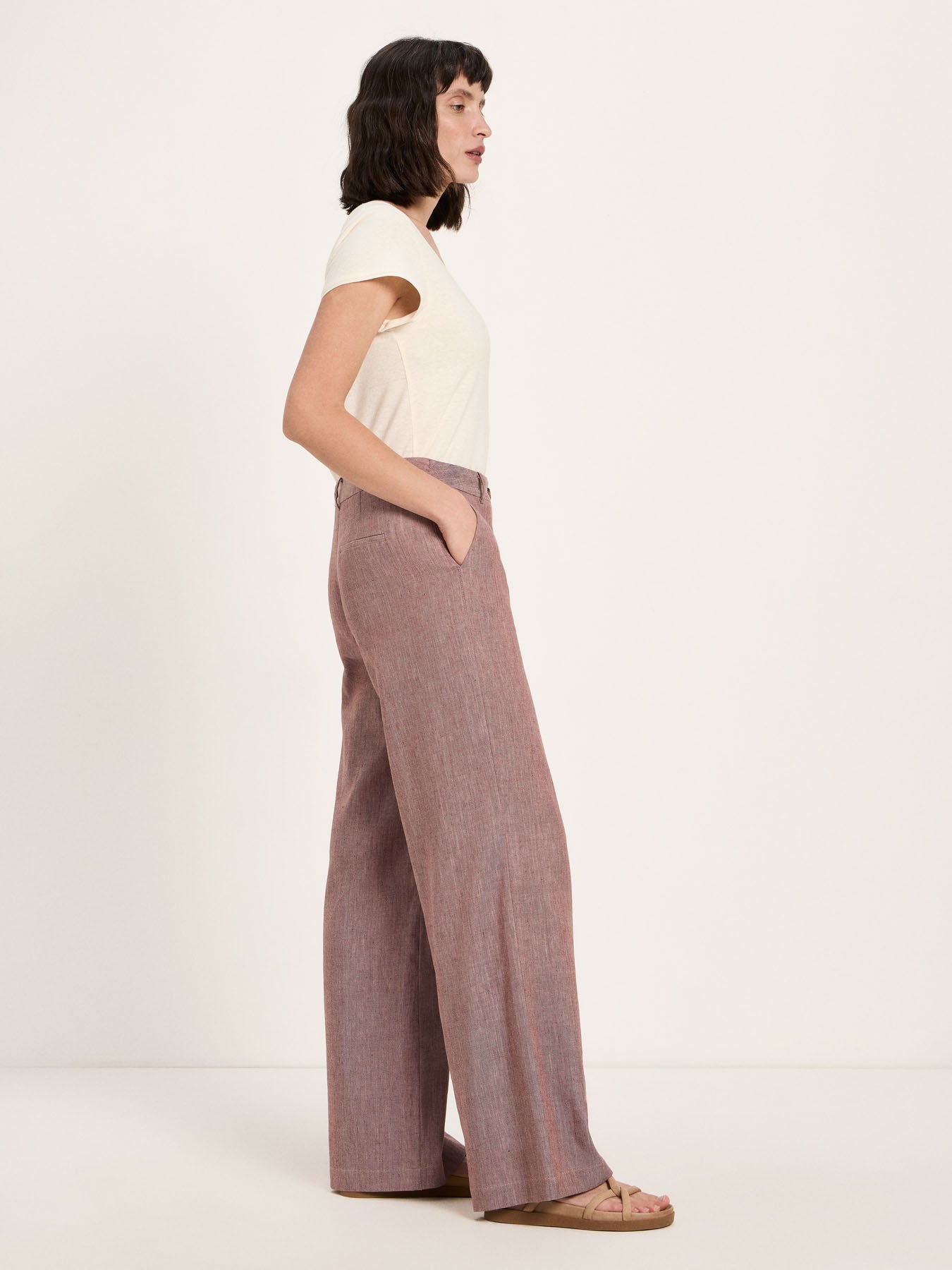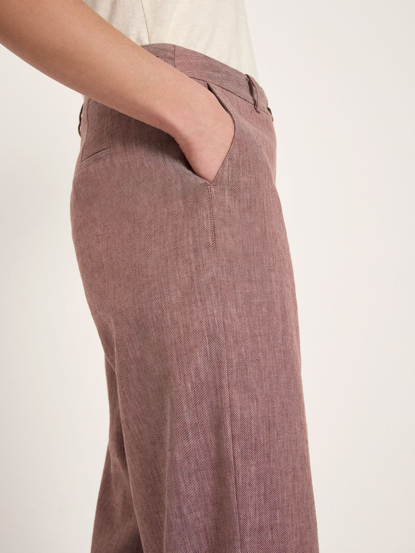 Ein zeitloser Begleiter für warme Tage! Mit ihrem weit fließenden Bein und dem natürlichen Materialmix aus Leinen und Bio-Baumwolle bietet diese Marlenehose viel Bewegungsfreiheit und ein angenehm luftiges Tragegefühl. Die klassische Silhouette verleiht jedem Look eine feminine Note, ideal für heiße Sommertage oder die Übergangszeit.