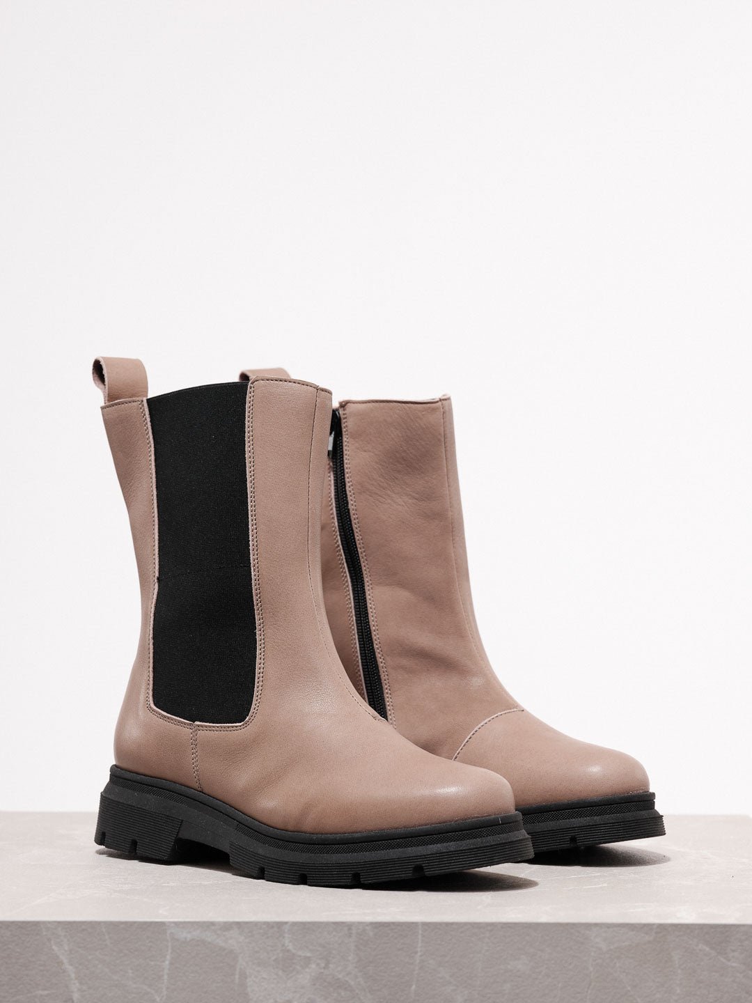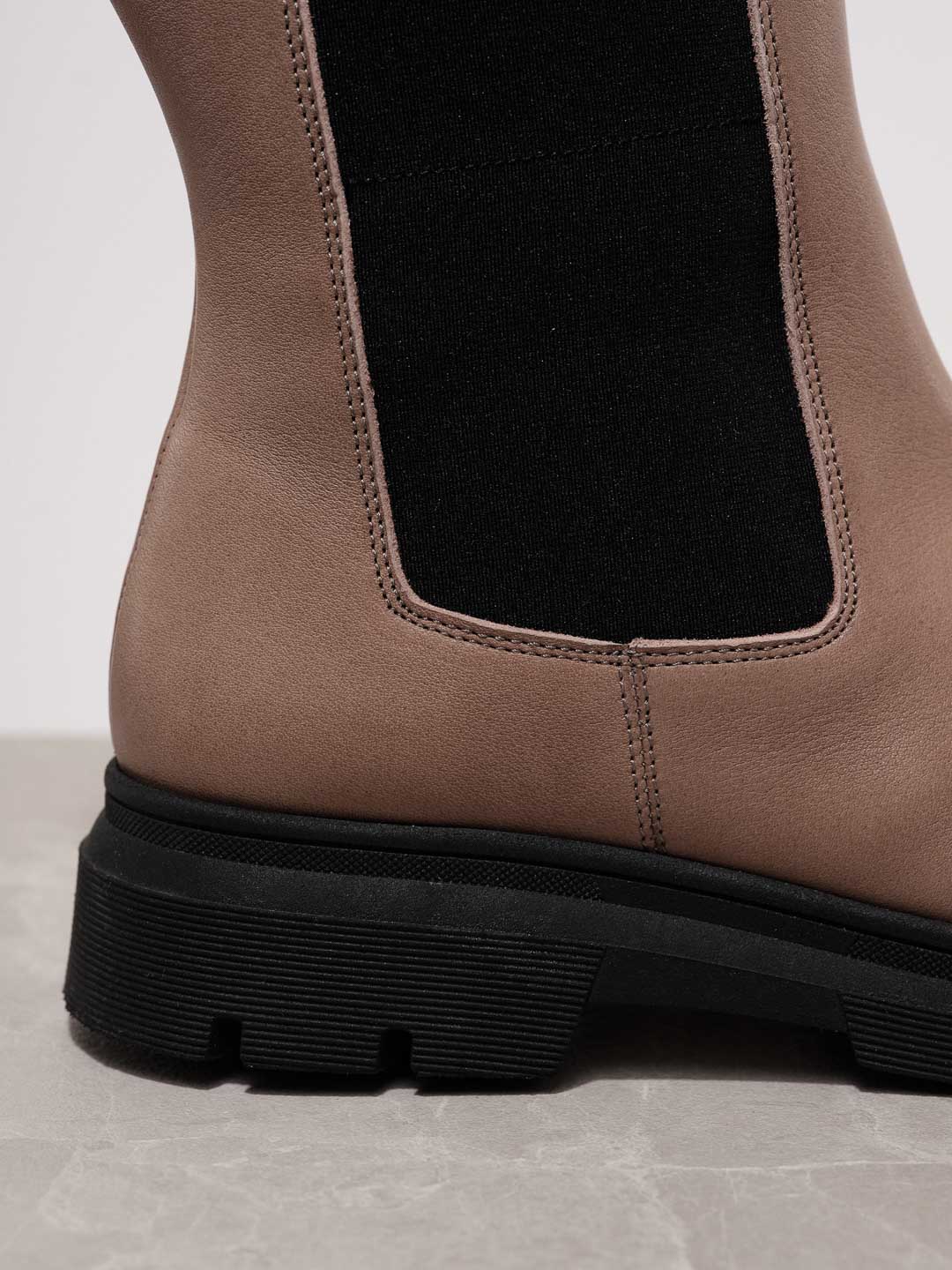 Modern und reduziert - unsere Chelsea Boots mit extra hohem Schaft. Eine dicke Sohle und vegetabil gegerbtes, glattes Leder außen und innen schützen vor nassem Wetter. Ein flexibler Gummieinsatz, eine Lasche und ein seitlicher Reißverschluss sind modische Details mit Funktion und erleichtern das An - und Ausziehen. Der Schuh ist nicht gefüttert.