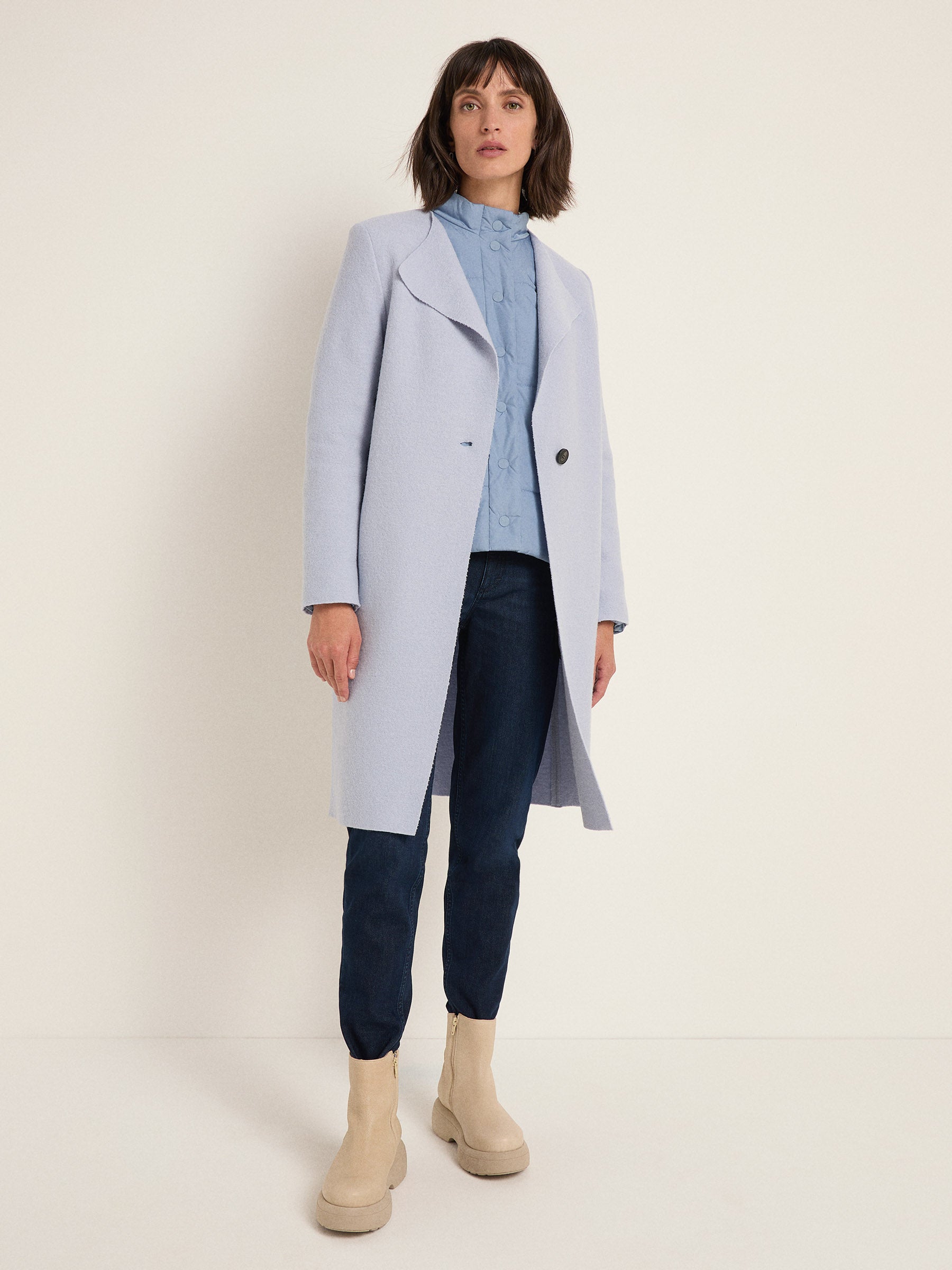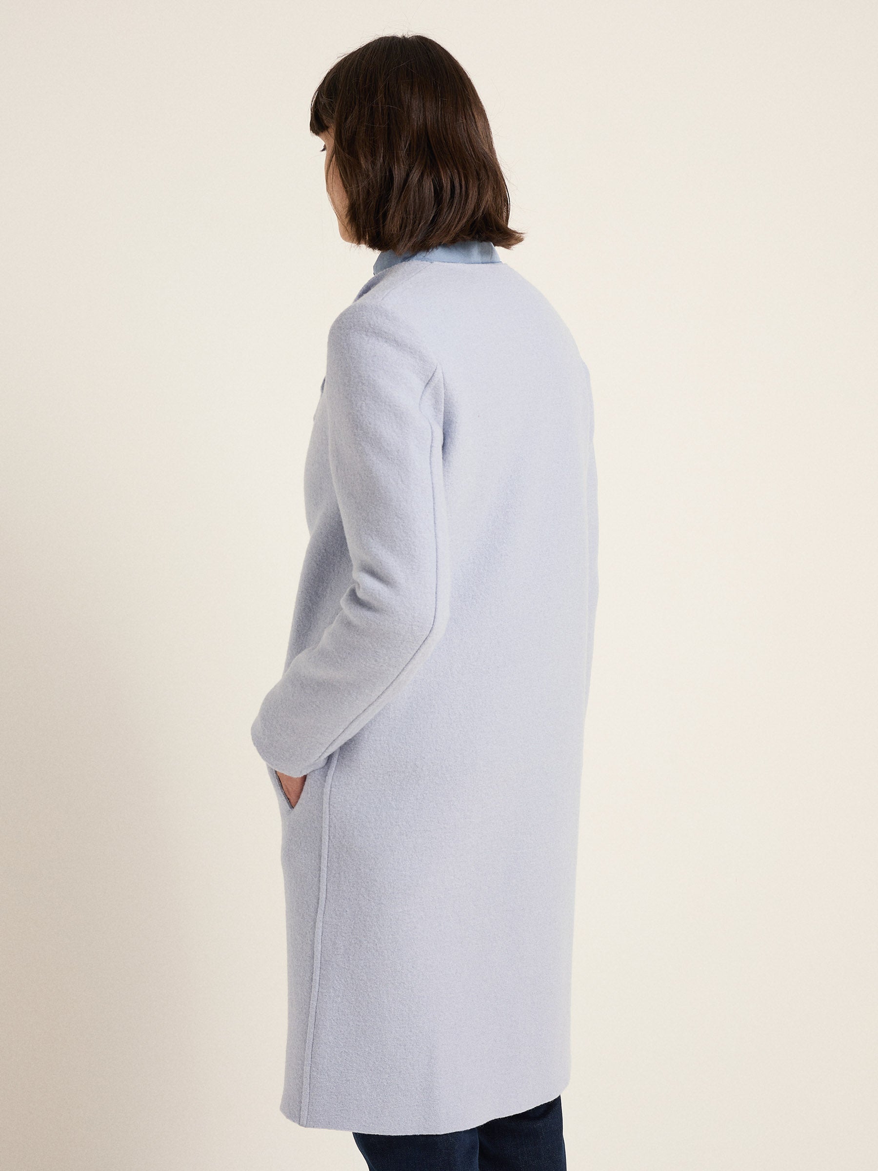 Herbstmantel aus Bio-Schurwolle: Ein Klassiker, der sich zu jedem Outfit kombinieren lässt! Unser GOTS-zertifizierter Walkmantel besticht durch seine schlichte Eleganz. Die Passform ist gerade - lässig-leger - die Schultern nicht überschnitten und die seitlichen Eingrifftaschen fungieren als praktische Details. Besonders geeignet für den Saisonübergang und laue Wintertage.