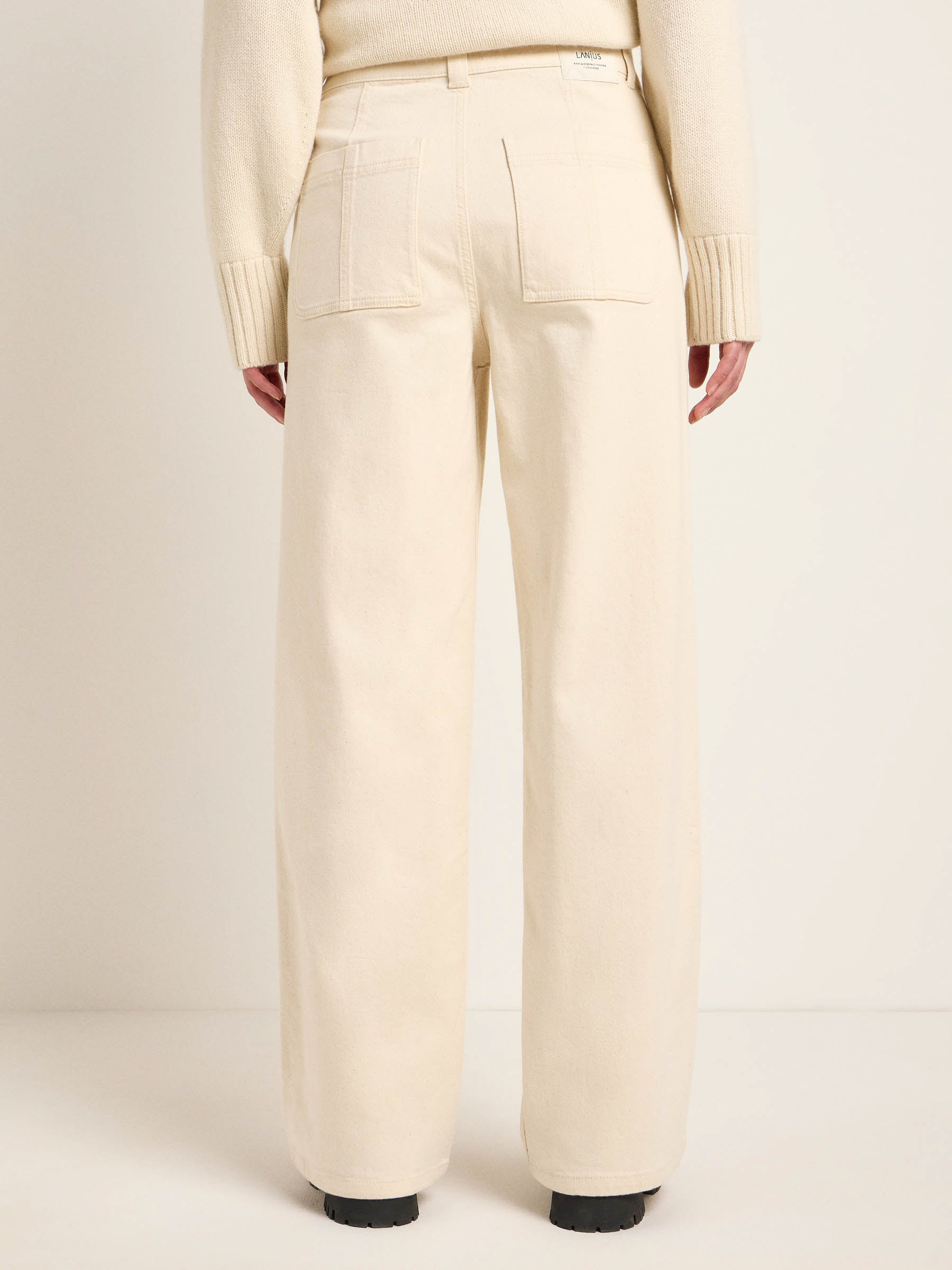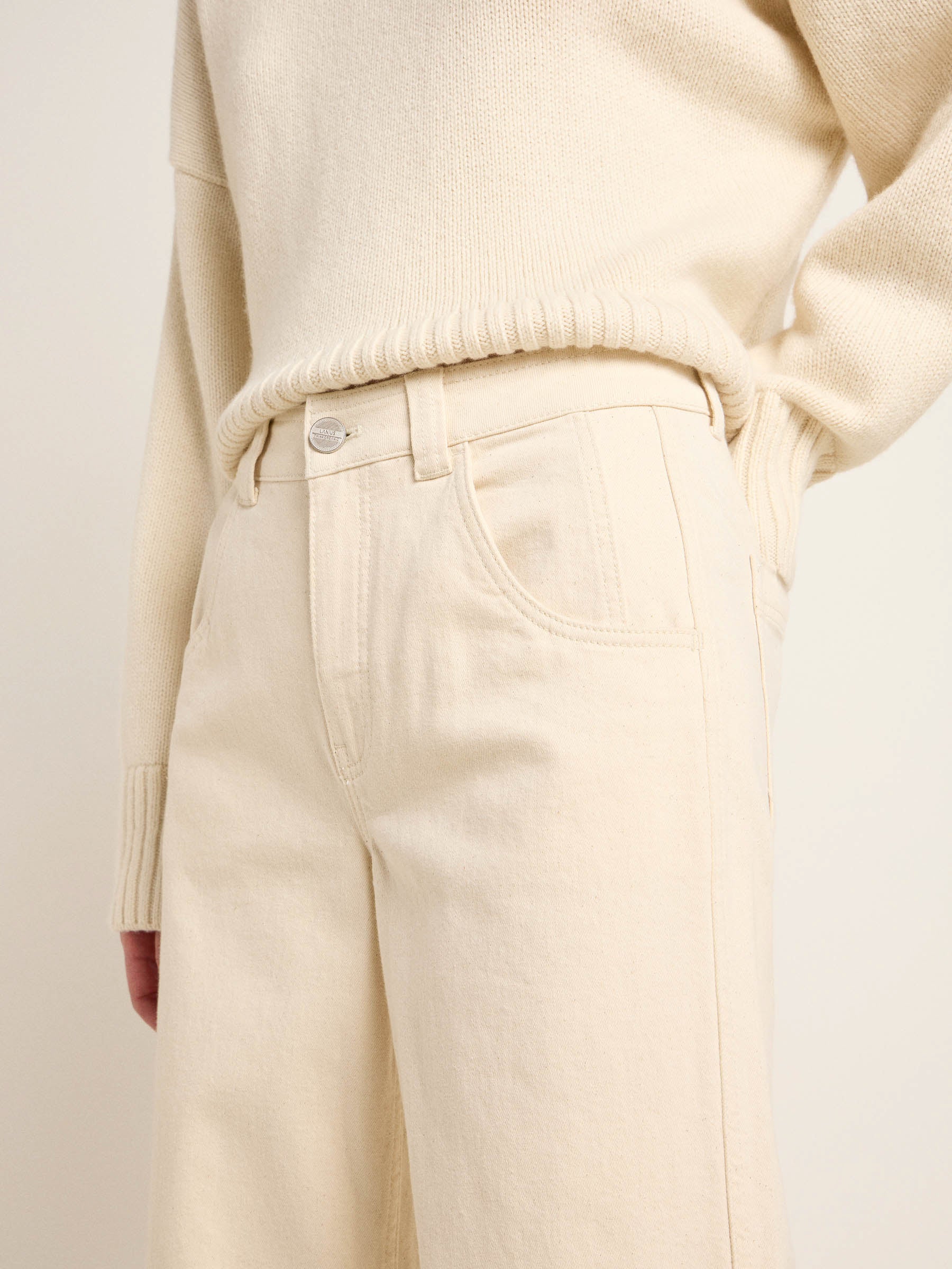 Der weite Schnitt und der mittelhohe Bund schmeicheln jeder Figur und zaubern eine traumhafte Silhouette. Hergestellt aus GOTS-zertifizierter Bio-Baumwolle, bietet sie ein angenehmes Tragegefühl. Die lange Beinlänge und die natürliche Optik machen diese Hose zu einem vielseitigen Begleiter für jeden Anlass.