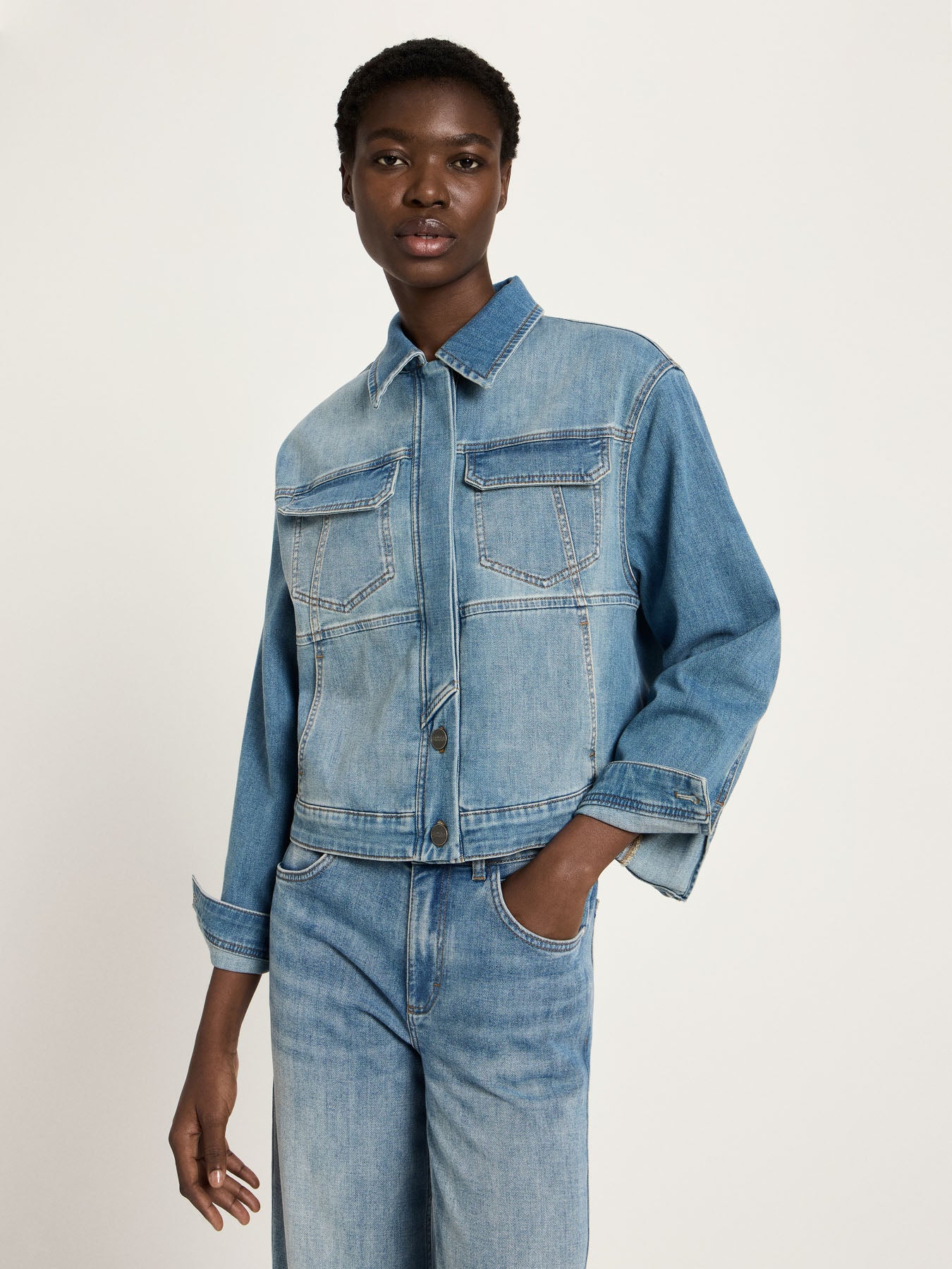 Zeitlos, lässig und nachhaltig – unsere Jeansjacke aus hochwertigem Candiani Denim vereint klassisches Design mit moderner Verantwortung. Gefertigt aus kontrolliert biologischer Baumwolle und veredelt in Italien, überzeugt sie durch ihre authentische "stonewash blue"-Färbung und den angenehm weichen Griff. Die verkürzte Passform und markanten Ziernähte verleihen ihr einen modernen Look, während klassische Details wie Hemdkragen, Brusttaschen und Metallknöpfe für den ikonischen Denim-Charakter sorgen. Styling-Tipp: Perfekt kombinierbar mit femininen Kleidern, Tencel™-Blusen oder Denim-on-Denim-Looks.