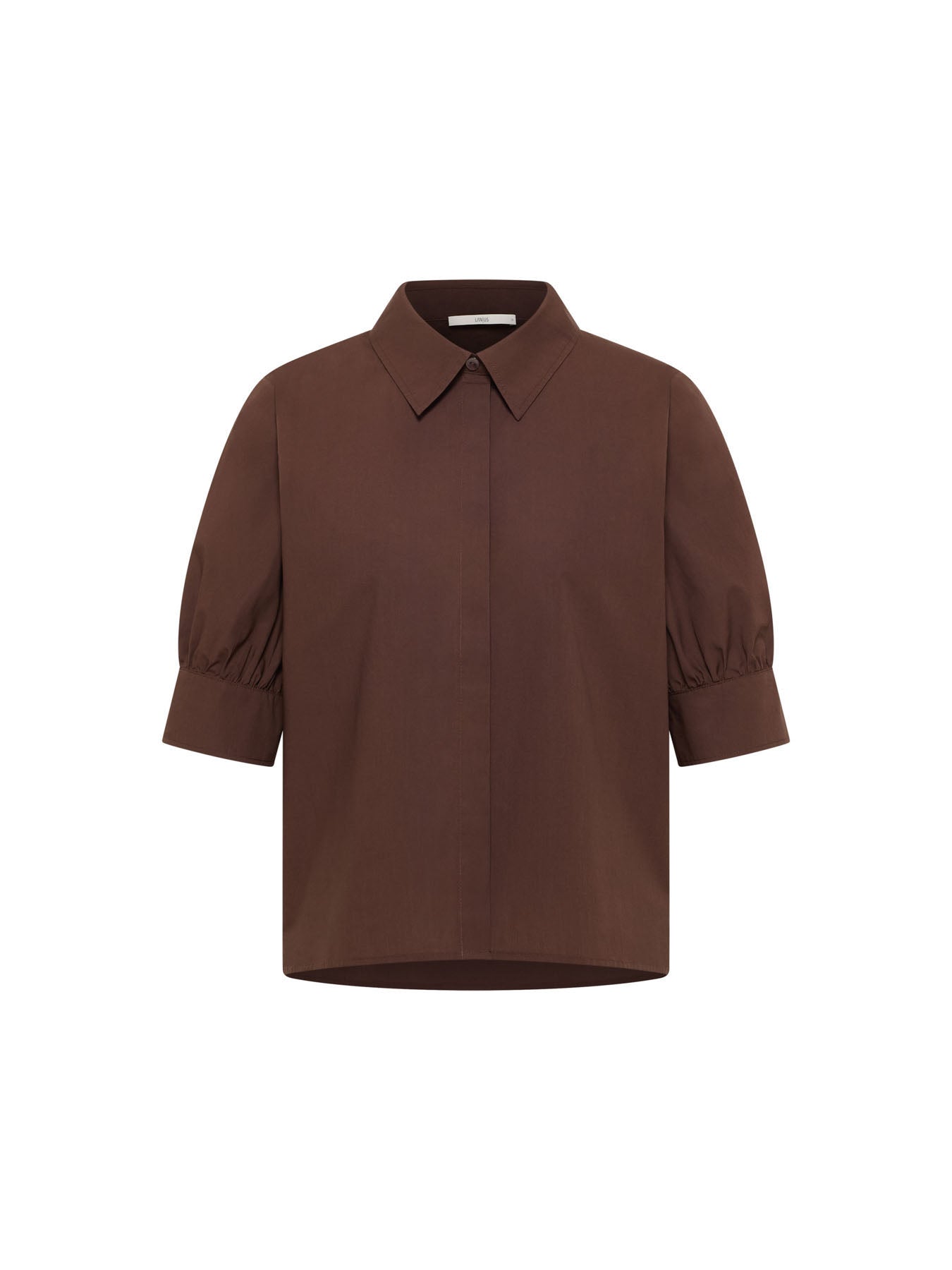 Kurze Puffärmel, Hemdblusenkragen, Knopfleiste, gerade Geschnitten
