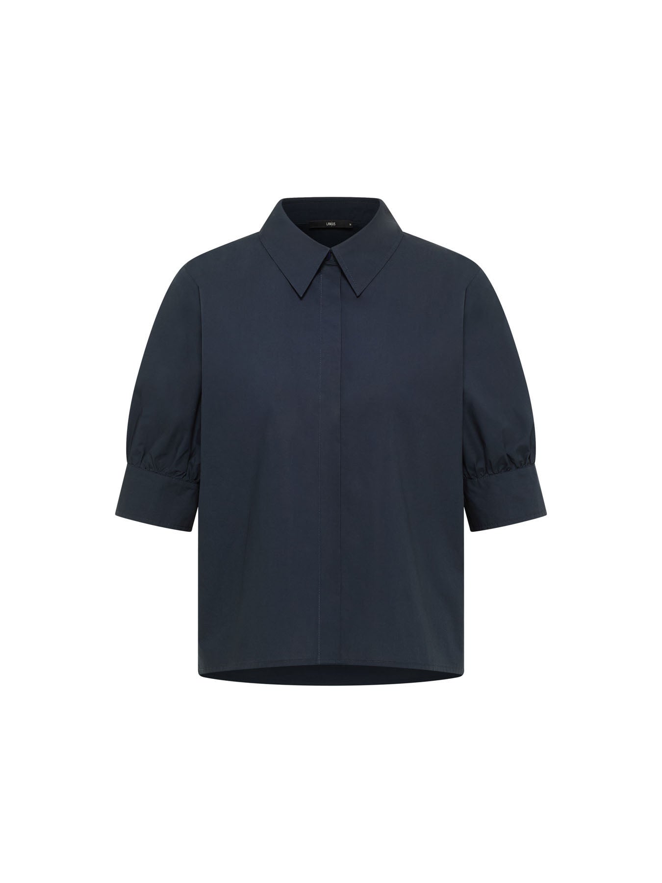 Kurze Puffärmel, Hemdblusenkragen, Knopfleiste, gerade Geschnitten