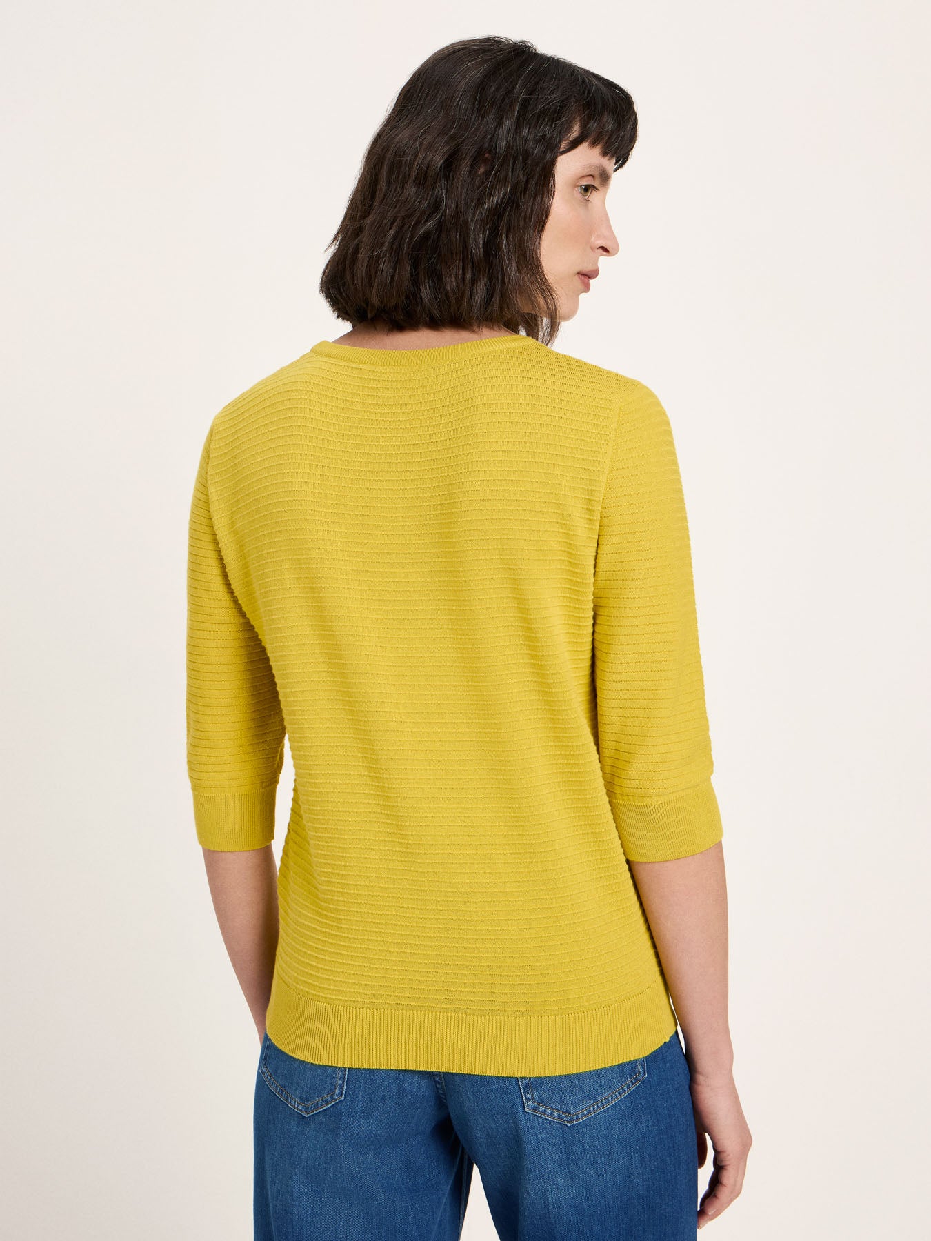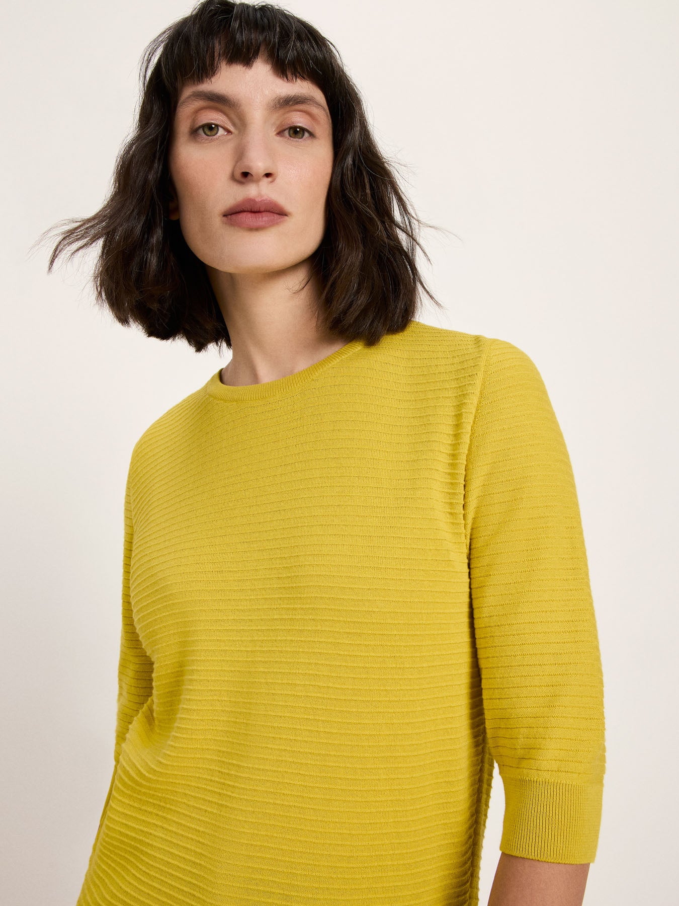 körperumspielende Passform, ellbogenumspielender Ärmel, leichter struktuierter Strick
