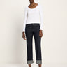 Gefertigt aus hochwertiger Bio-Baumwolle bietet die Jeans nicht nur einen modernen Look, sondern auch ein angenehmes Tragegefühl. Der gerade Schnitt und der mittelhohe Bund sorgen für eine zeitlose Silhouette, während der klassische Aufschlag am Saum der Jeans einen besonderen Charme verleiht. Ein vielseitiger Begleiter für jeden Anlass.