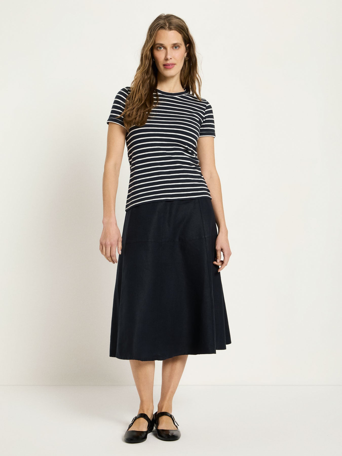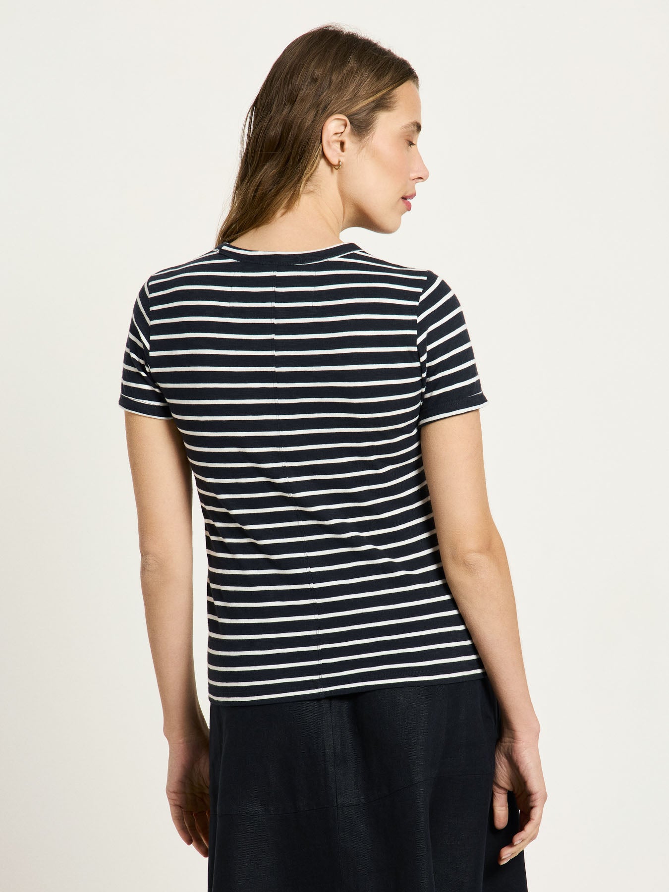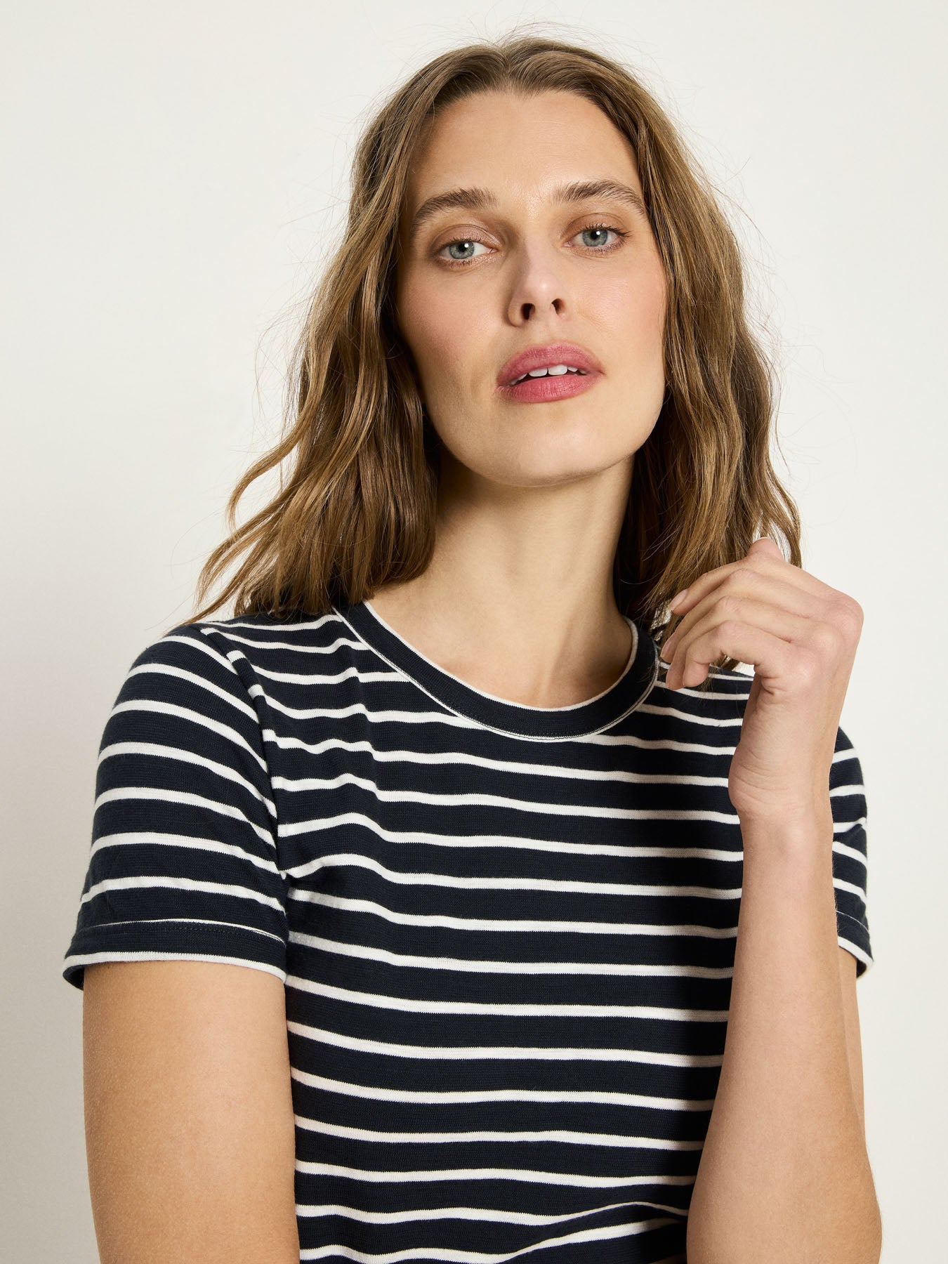 Dieses Kurzarmshirt ist ein echtes Essential für jeden Tag. Gefertigt aus hochwertiger Bio-Baumwolle überzeugt es durch seine angenehme Haptik und eine klare, zeitlose Form. Die weiche, atmungsaktive Qualität sorgt für hohen Tragekomfort und macht das Shirt zum idealen Begleiter für Alltag, Freizeit und Reise. Solo getragen oder als Basis unter Jacken und Strick – dieses Modell passt sich jedem Stil mühelos an.
