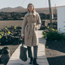Minimalistisch und zeitlos: Der Mantel aus hochwertiger Schurwolle überzeugt mit klarer Silhouette und zurückhaltender Eleganz. Der Bindegürtel betont die Taille und verleiht dem entspannten Schnitt Struktur. Der große Kragen lässt sich hochgeschlossen tragen oder locker offen für unterschiedliche Styling-Varianten. Seitliche Eingrifftaschen und ein rückseitiger Schlitz runden das Design ab.