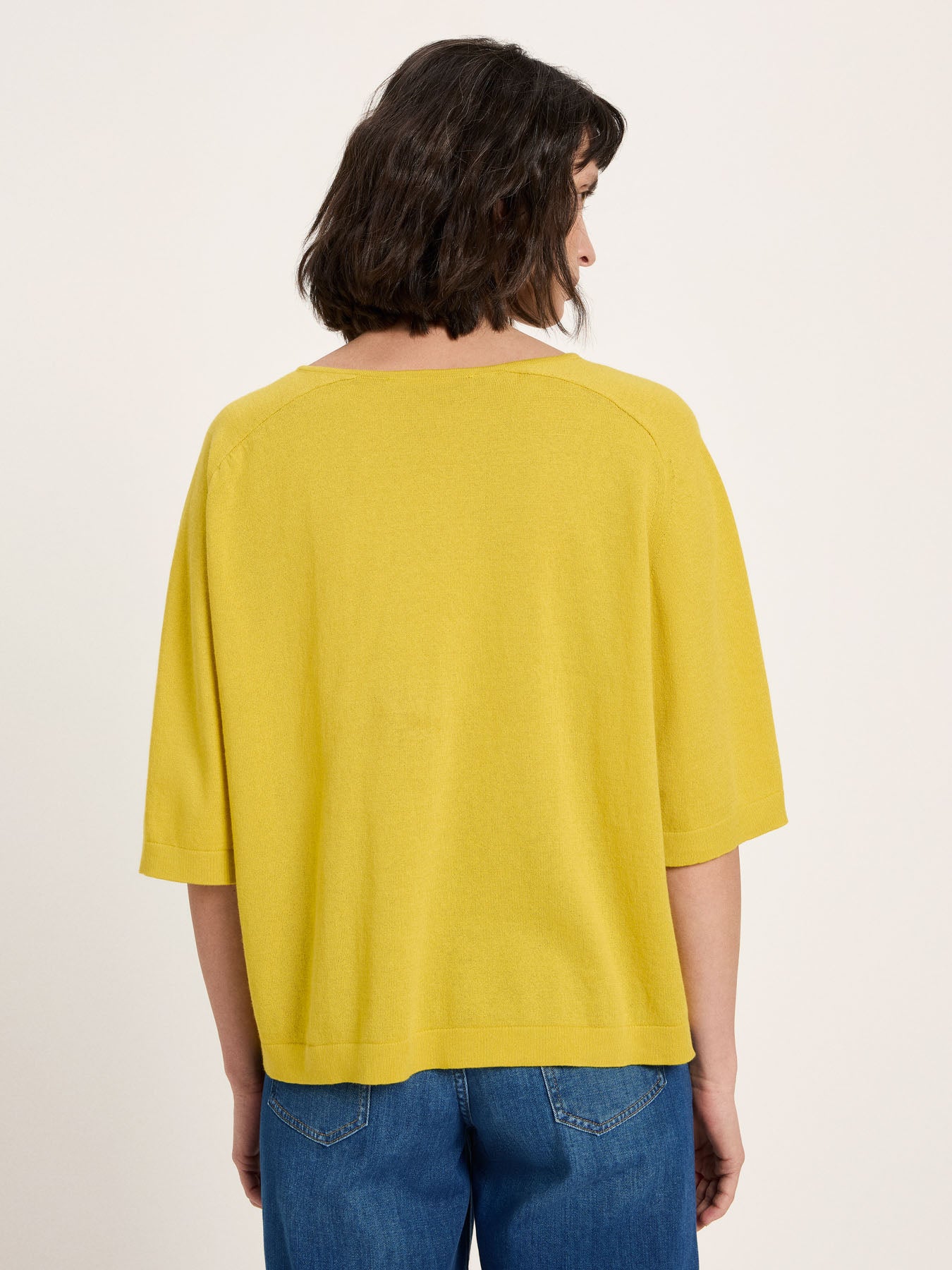 körperumspielende Passform, kurze Ärmel, leichter dünner Strick
