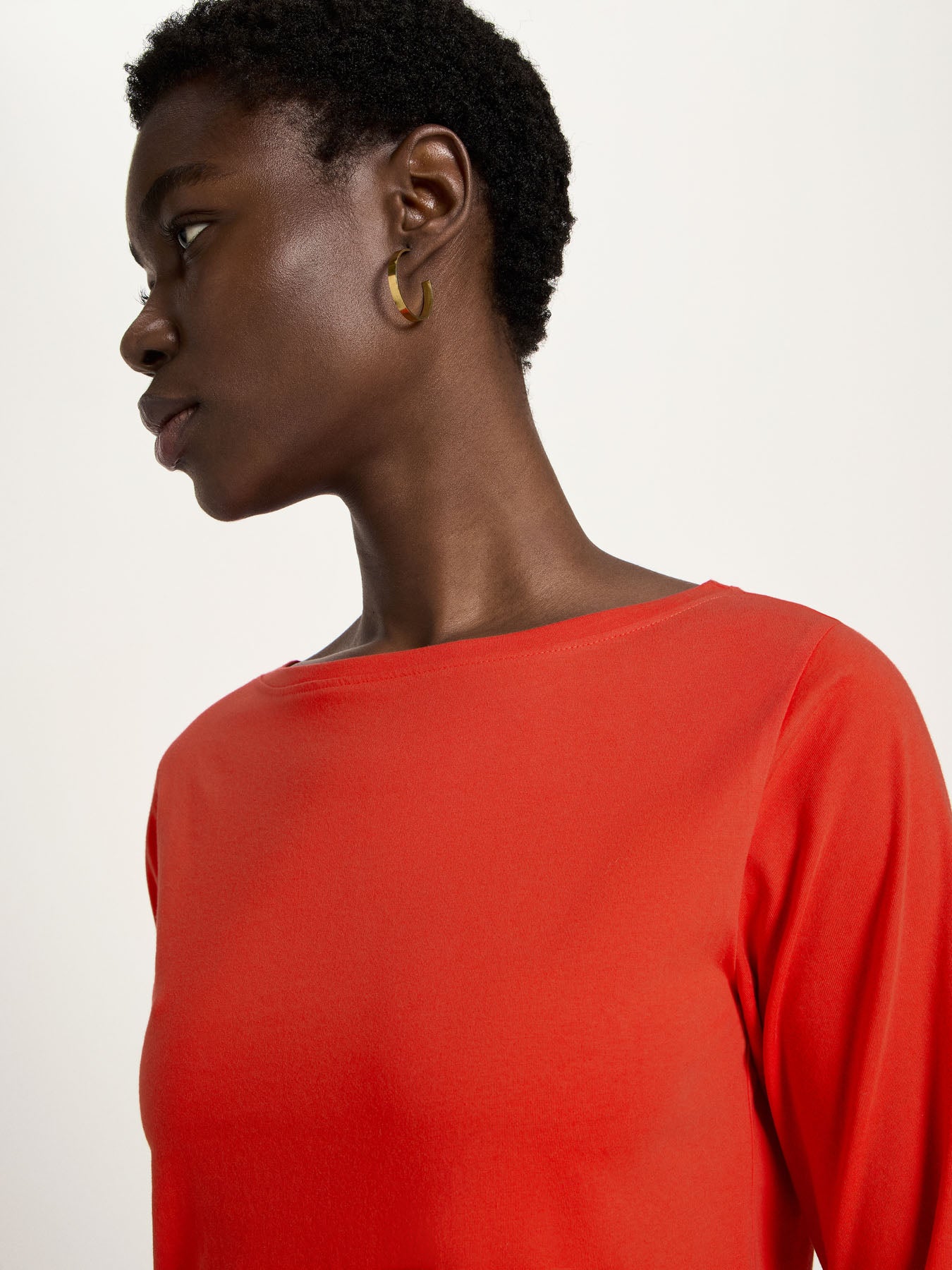 Spring Basic: Feminines, körpernahes U-Boot-Shirt aus 100 % Baumwolle aus kontrolliert biologischem Anbau in vielen verschiedenen Farben. Die verkürzten Ärmel und der moderne hohe Ausschnitt ergänzen die bewährte Qualität und erprobte Passform. GOTS-zertifiziert, vegan und klimaneutralisiert - nachhaltige Basics für jeden Tag mit bestem Gewissen.