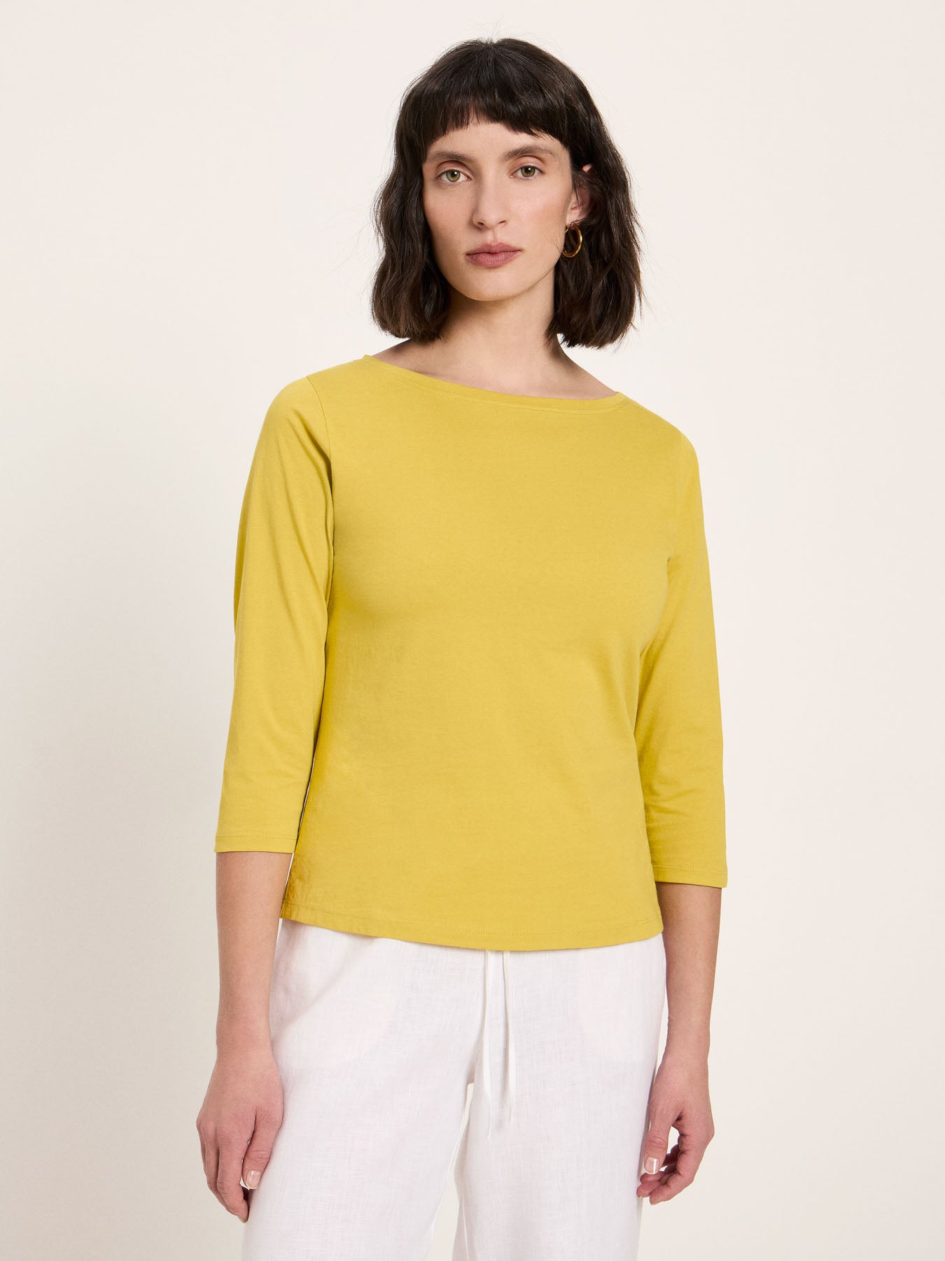 Spring Basic: Feminines, körpernahes U-Boot-Shirt aus 100 % Baumwolle aus kontrolliert biologischem Anbau in vielen verschiedenen Farben. Die verkürzten Ärmel und der moderne hohe Ausschnitt ergänzen die bewährte Qualität und erprobte Passform. GOTS-zertifiziert, vegan und klimaneutralisiert - nachhaltige Basics für jeden Tag mit bestem Gewissen.