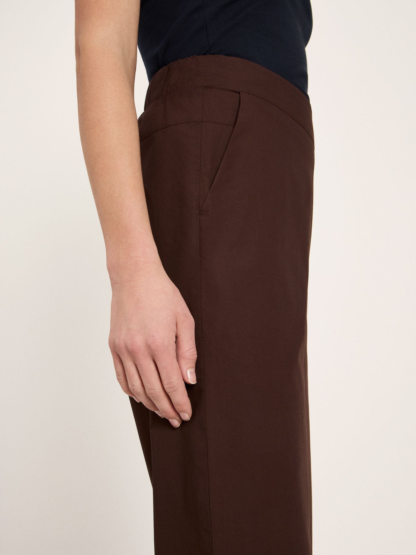 Mit ihrem geraden, verkürzten Bein bringt diese Hose aus hochwertiger Bio-Baumwolle eine moderne Leichtigkeit in die Garderobe. Der klare Schnitt wirkt zeitlos und sorgt für eine feminine Silhouette – unkompliziert, aber dennoch stilvoll. Die angenehm weiche, formstabile Qualität macht die Hose zum vielseitigen Essential: lässig mit Sneakern, elegant mit Sandalen oder Loafern.