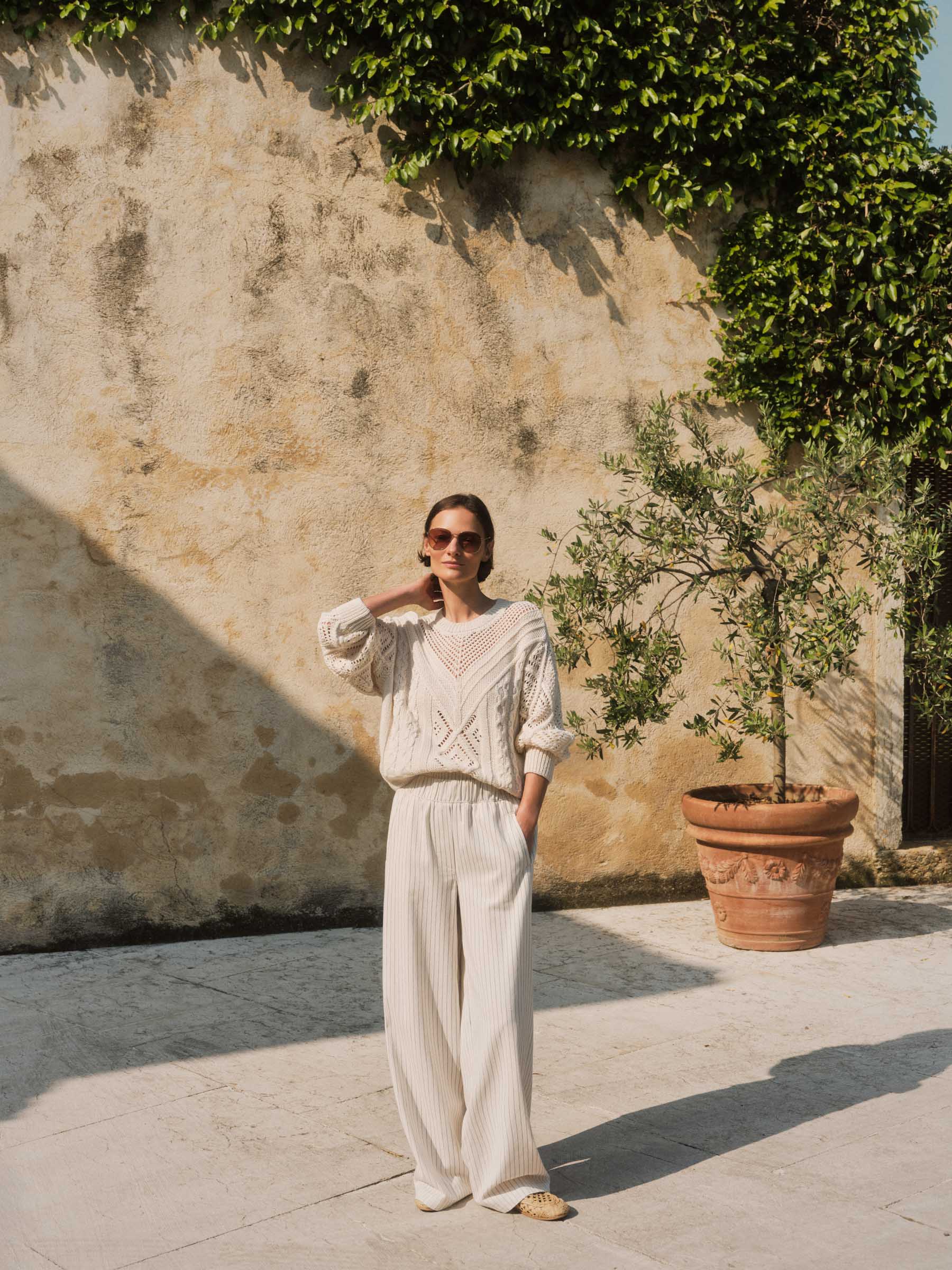 Dieser Lochstrick Pullover aus Bio-Baumwolle setzt auf ein klares Design mit spannender Struktur: Das grafische Lochmuster bringt Leichtigkeit in den Look und sorgt für einen dezenten, modernen Eyecatcher. Gleichzeitig bleibt der Pullover angenehm unkompliziert – perfekt für vielseitige Outfits im Alltag oder im Office .Der weiche Baumwollstrick trägt sich komfortabel und eignet sich besonders gut für Layering: über einem Top getragen wirkt das Muster elegant und luftig, unter Jacke oder Blazer bleibt der Look clean und stilvoll.
