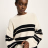 Modern und gemütlich: Der Streifenpullover punktet mit klassischem Rundhalsausschnitt, lockerer Passform und markantem Streifenmuster. Die hochwertige Mischung aus Bio-Schurwolle und Bio-Baumwolle macht ihn weich, wärmend und langlebig. Breite Rippbündchen an Ärmeln und Saum geben Form und runden das Design ab. Ein vielseitiges Piece, das jedes Outfit mit einem modernen Akzent ergänzt – von casual bis chic.