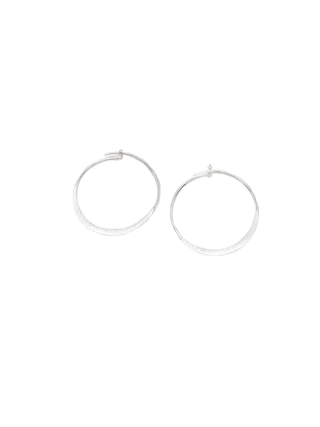Simple und chick: diese besonderen Creolen haben einen flachen Ring mit leicht strukturierter Oberfläche – und passen ausgesprochen gut zu puristischen Looks. Sie sind in zwei Größen erhältlich, wodurch sie bei zwei Ohrlöchern auch toll miteinander kombinierbar sind – hier sehen Sie Größe M. Hergestellt aus recyceltem 925 Sterling Silver, wurden sie mit viel Liebe zum Detail von Hand gefertigt.