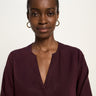 Schlicht, weich und mit natürlichem Glanz: Diese Bluse aus TENCEL™ Lyocell überzeugt durch ihren glatten Griff, fließenden Fall und zeitlos elegantes Design. Der V-Ausschnitt mit angesetztem Kragenelement und der gerade, minimalistische Schnitt machen sie zu einem vielseitigen Essential für Alltag und Büro. Die weiche Lyocell-Qualität trägt sich angenehm leicht auf der Haut – vegan gefertigt und ideal kombinierbar mit Denim, feinen Stoffhosen oder als eleganter Kontrast zu Strick.