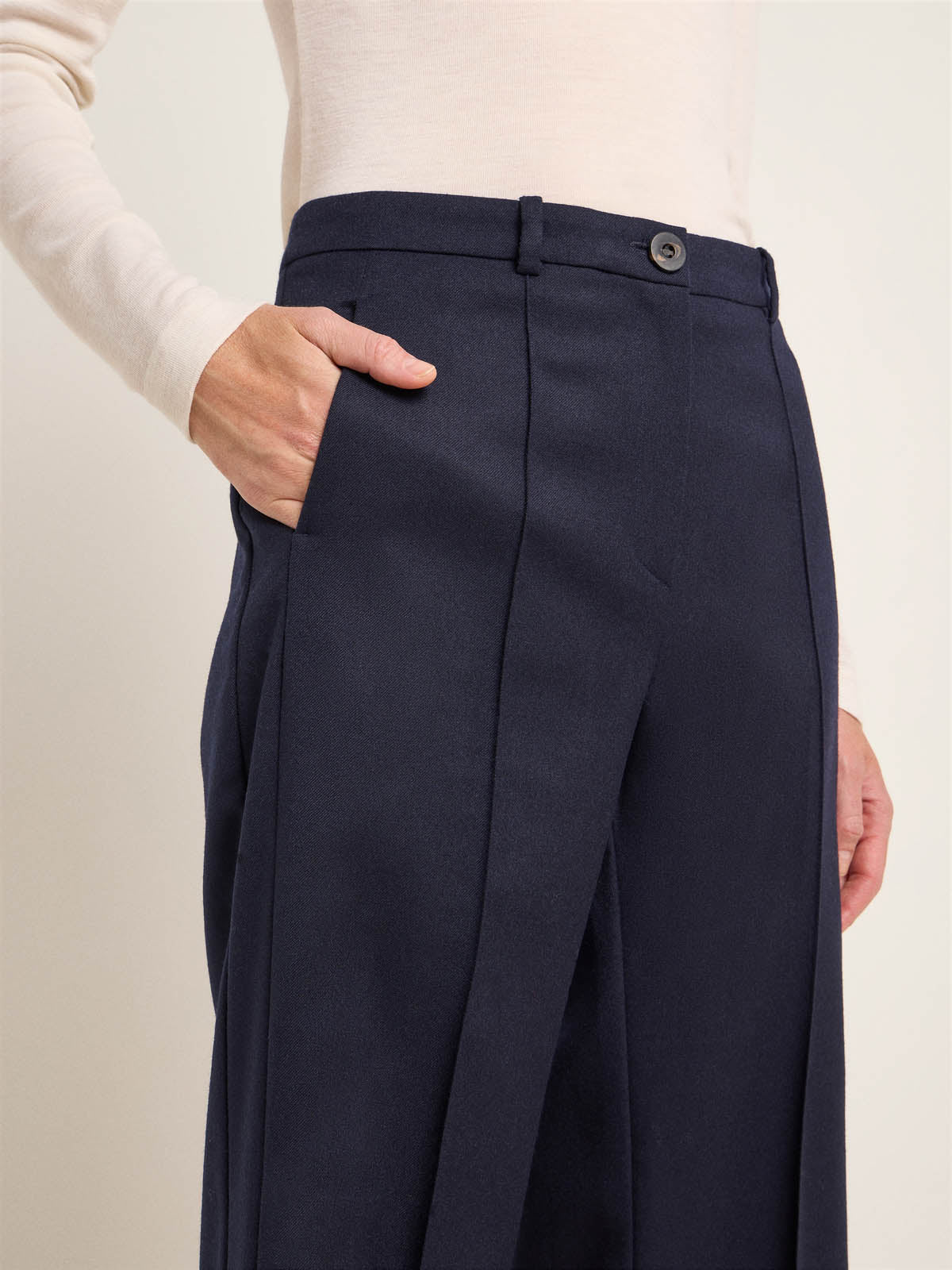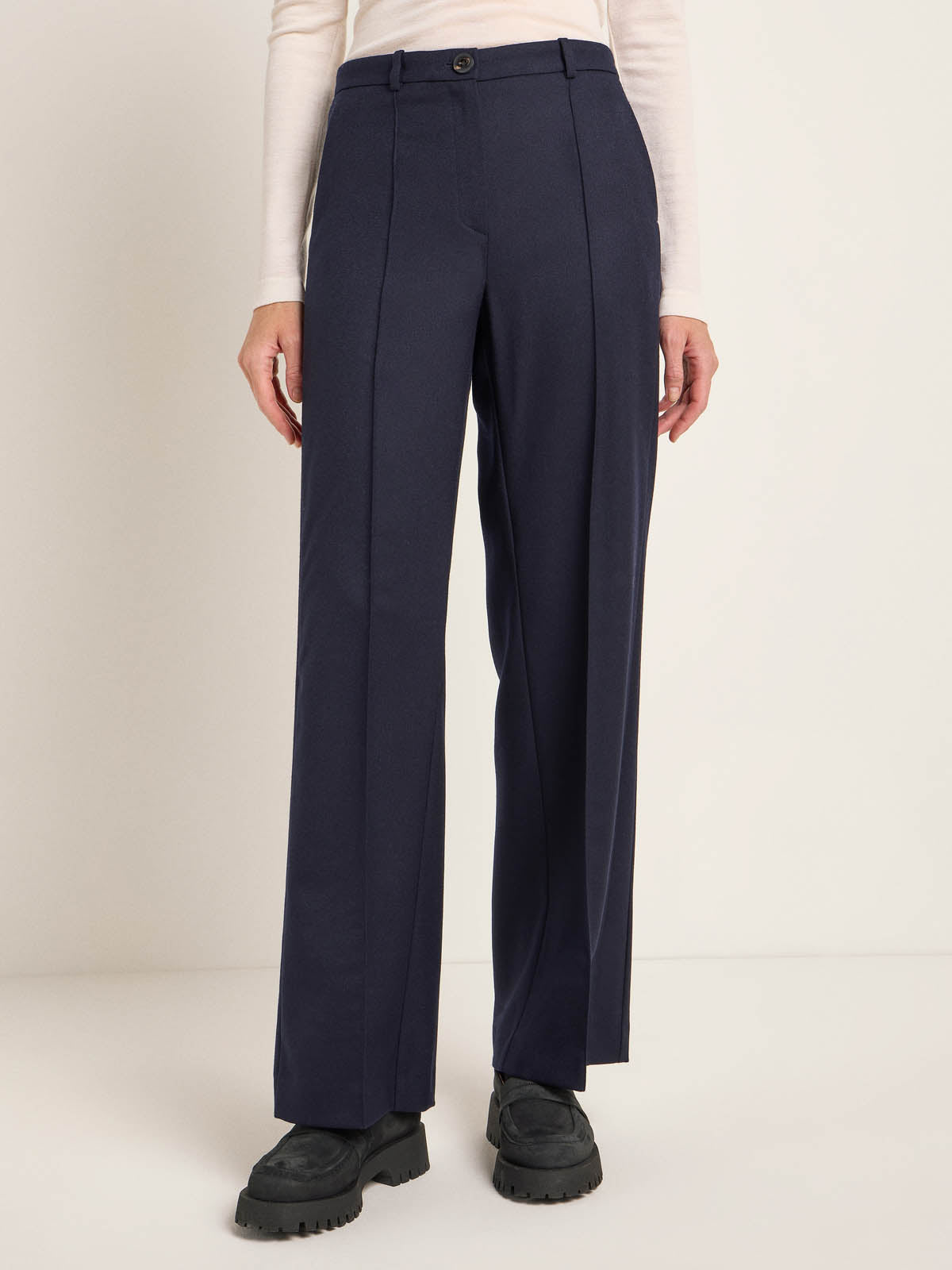 Die Hose im Marlene-Stil ist ein zeitloses Must-have. Fließende Weite und eine schöne zarte Struktur bestimmen den Look der Marlenehose mit ihrem klassischen geraden und weiten Bein mit Bise. Der Bund mit edlem Knopf aus natürlichem Horn und die Eingrifftaschen zeigen zeitlose Eleganz. Die Bio-Schurwolle ist winddicht, temperaturausgleichend und strapazierfähig. Die Hose eignet sich daher besonders für wärmende Styles an kälteren Tagen. Leicht zu kombinieren zu Strick, Bluse oder Blazer kreieren Sie mit der Marlenehose im Handumdrehen verschiedenste Looks.
