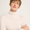 Der hohe Kragen und die schlanke Silhouette machen das Shirt zu einem vielseitigen Stylingpartner, ob als wärmende Basis unter Strick und Blazern oder solo getragen für einen minimalistischen Look. Ein zeitloses Lieblingsstück, das Nachhaltigkeit und Stil elegant verbindet.