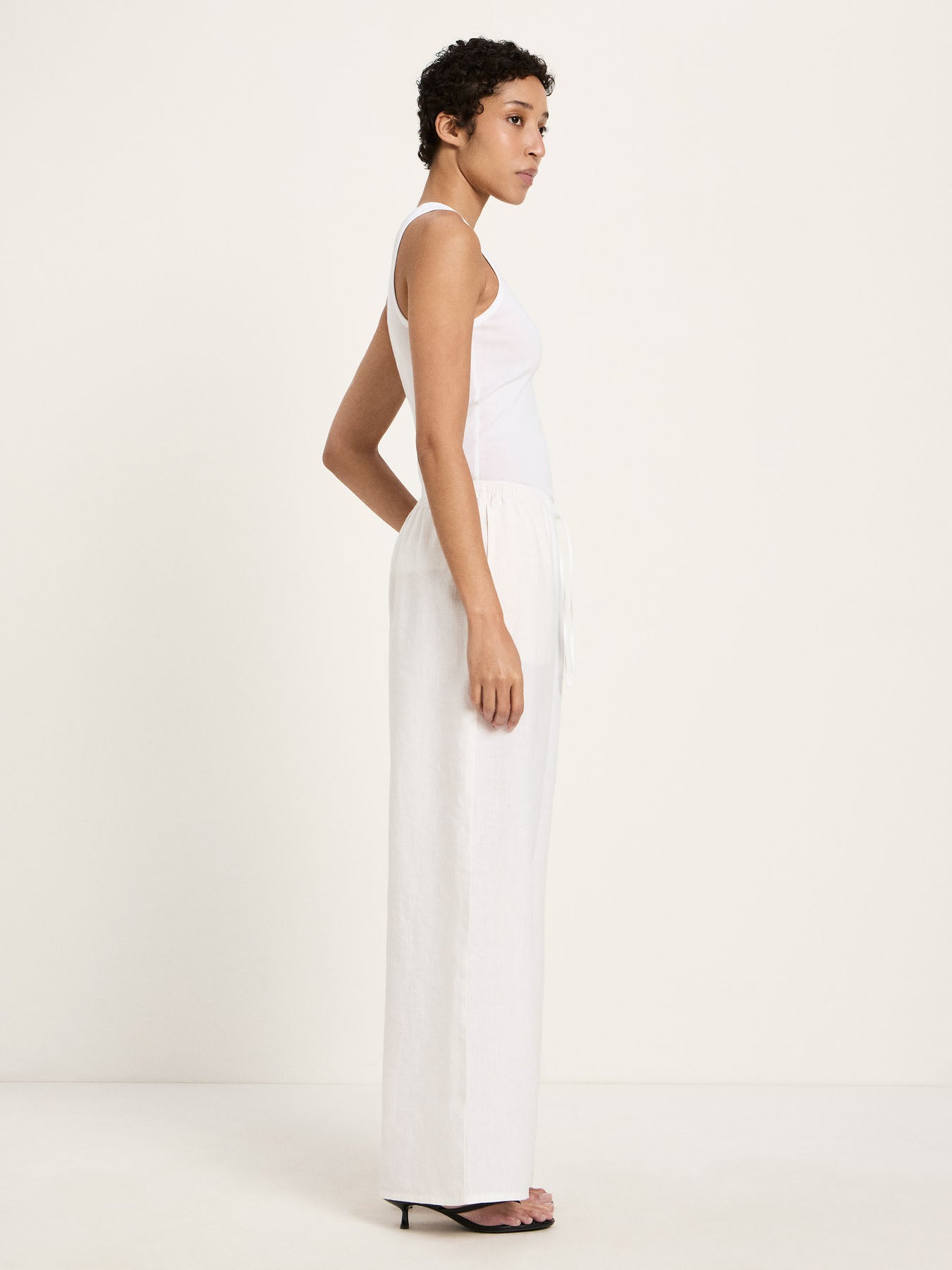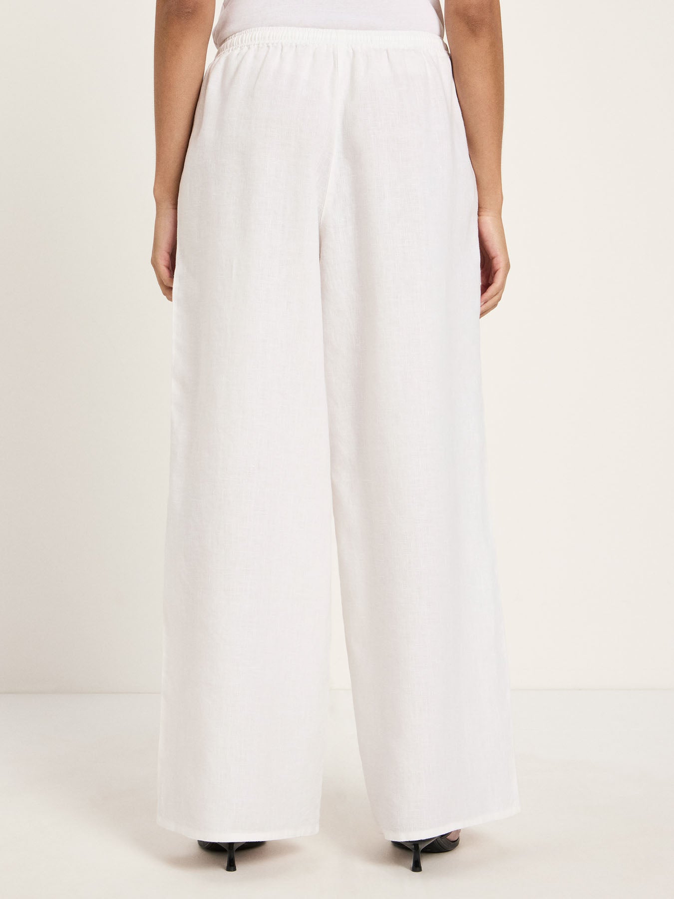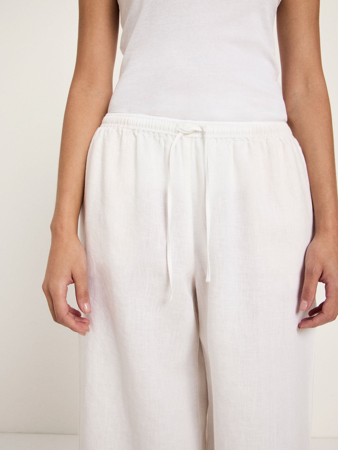 Airy, comfortable, and stylish: these organic linen trousers are a true favorite for warm days. The relaxed fit and elasticated drawstring waistband ensure maximum comfort – whether for everyday wear, the office, or vacation. At the same time, the natural structure of linen provides a particularly light and breathable fabric that feels pleasant against the skin. These trousers can be combined in many ways: with clean-cut tops, feminine blouses, or casual knitwear.