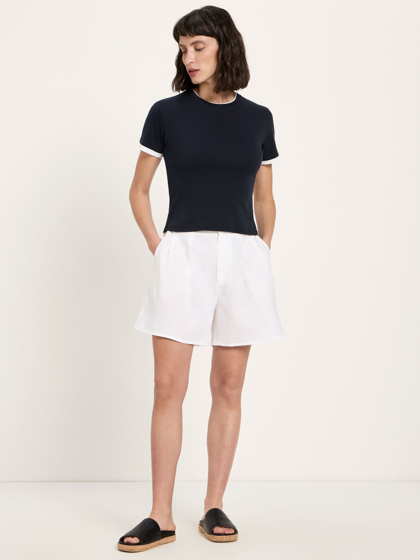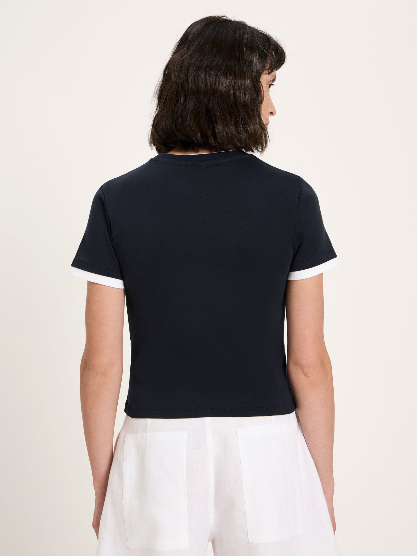 This shirt, made from high-quality organic cotton, impresses with its understated aesthetic and exceptional craftsmanship. The double-stitched edges on the sleeves and neckline add a subtle, sophisticated touch and give the classic design a modern twist. The pleasantly soft, breathable fabric ensures exceptional comfort, making this shirt a versatile everyday essential – perfect worn alone or as a base layer under a blazer, knitwear, or jacket.