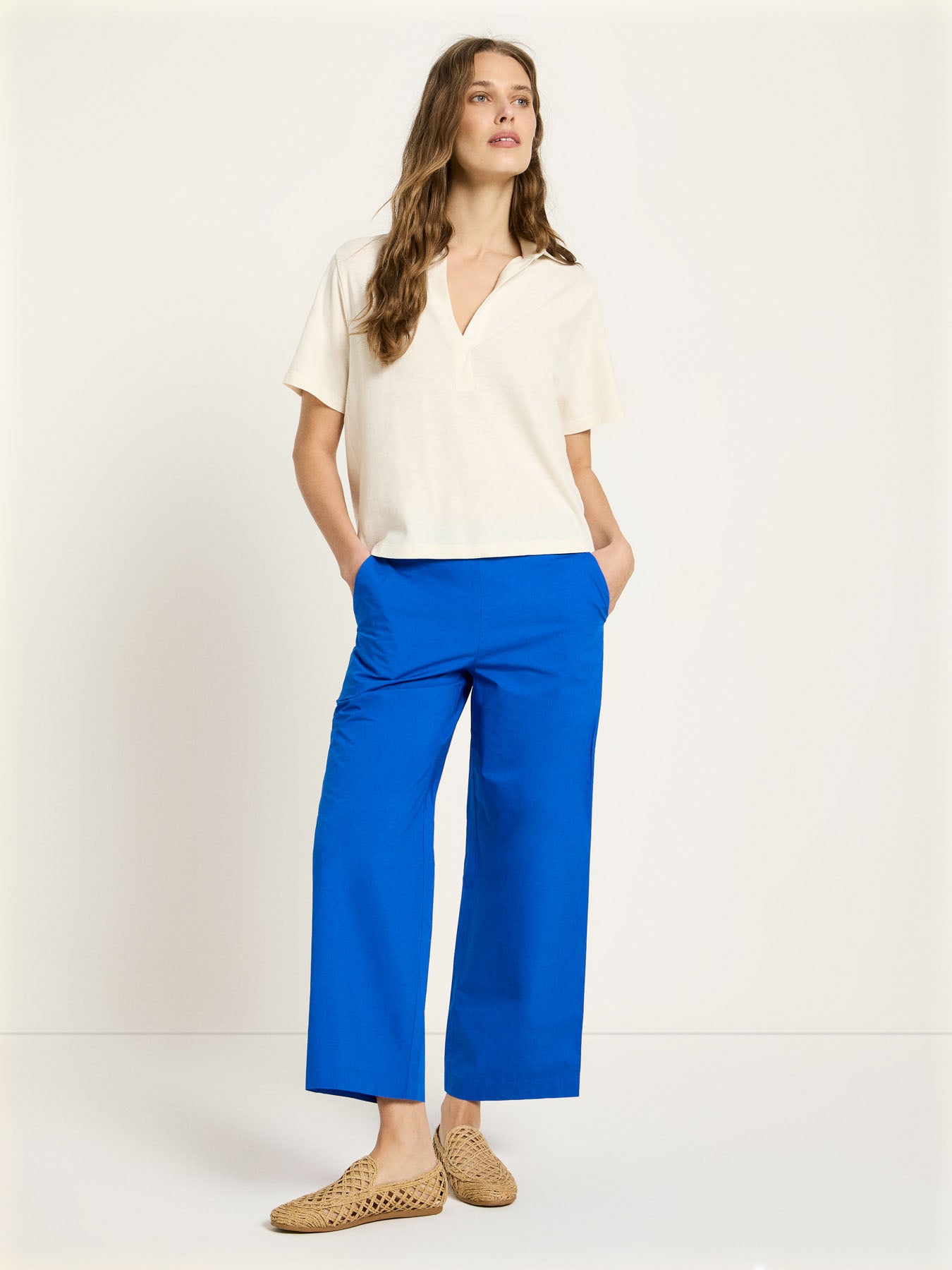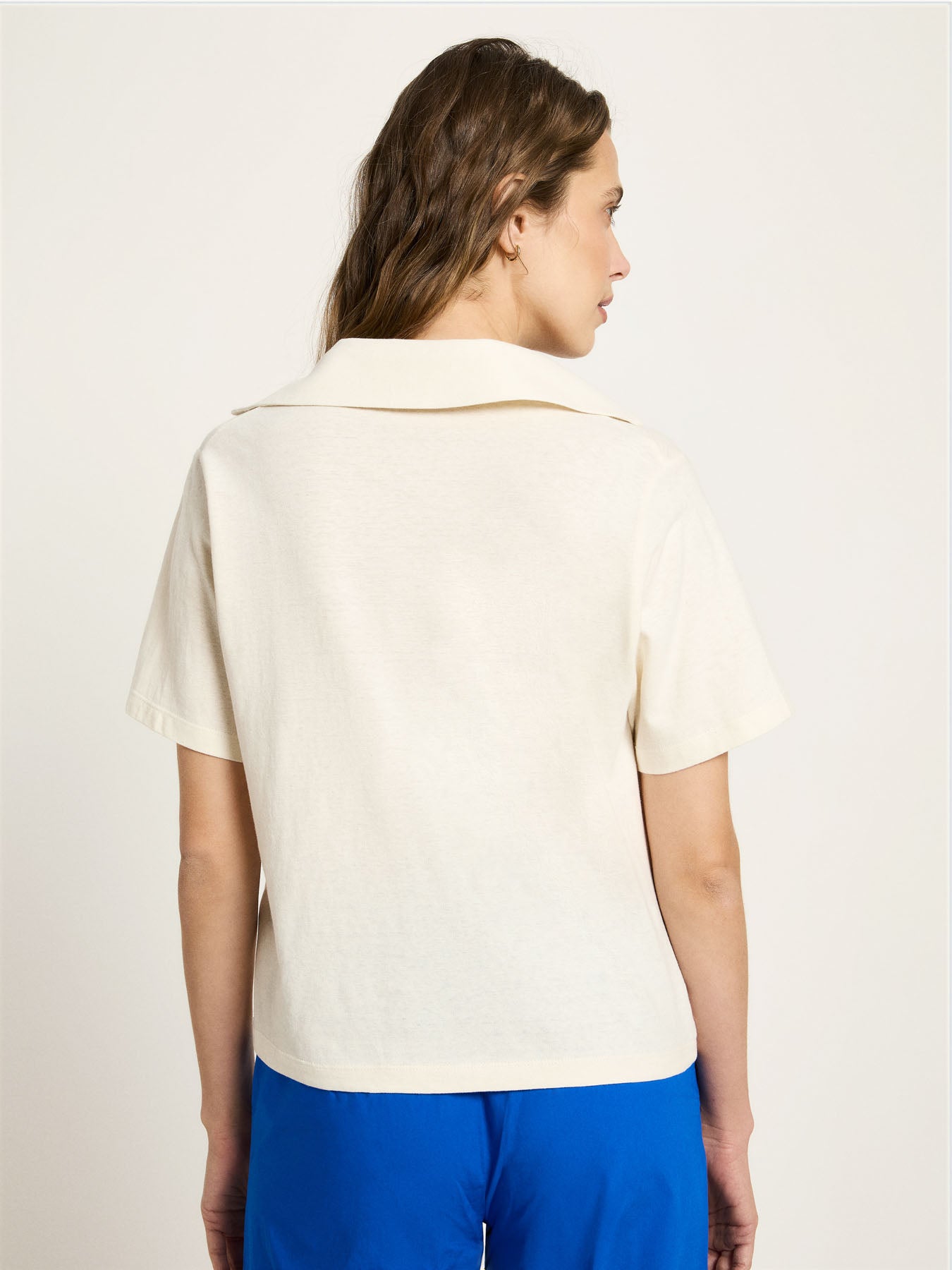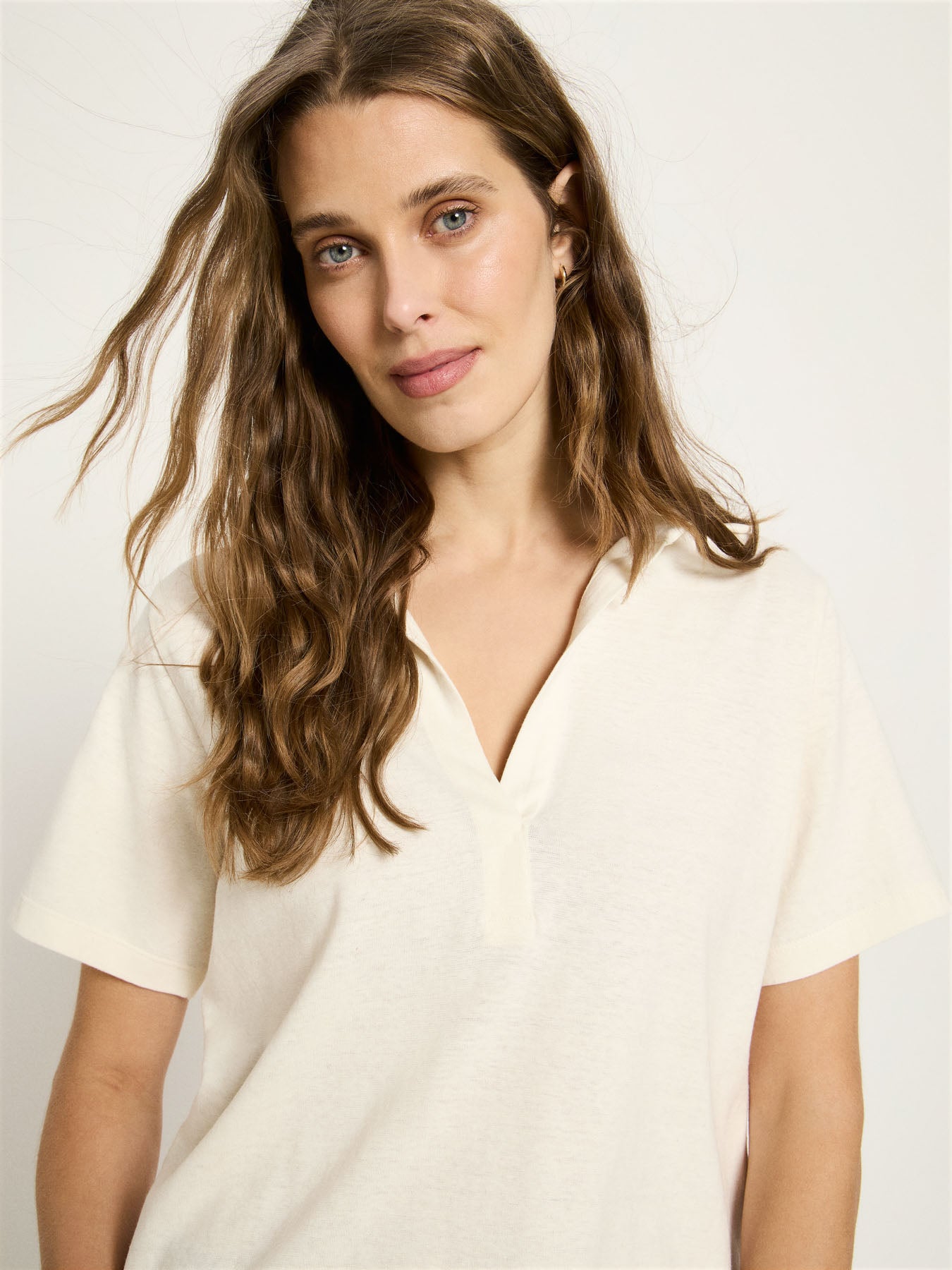 This hemp and organic cotton shirt embodies summery lightness with clean lines. The open polo collar adds a classic touch without appearing formal – perfect for looks that are relaxed yet sophisticated. The textured, breathable fabric feels pleasant against the skin and ensures a fresh feeling even on warm days. Its modern cut makes the shirt easy to style: with denim, trousers, or as a contrast to flowing skirts.