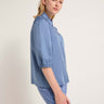 Playful blouse with fashionable details: the cut is slightly boxy, the sleeves are 3/4 length with gathers on the shoulders, the sides are slightly slit. Worn closed or open in combination with a lace top or T-shirt. TENCEL™ Lyocell ensures opacity and the light fall of a classic blouse. The 3/4 sleeve blouse can be combined in many ways with trousers or a skirt, sometimes elegantly, sometimes casually.