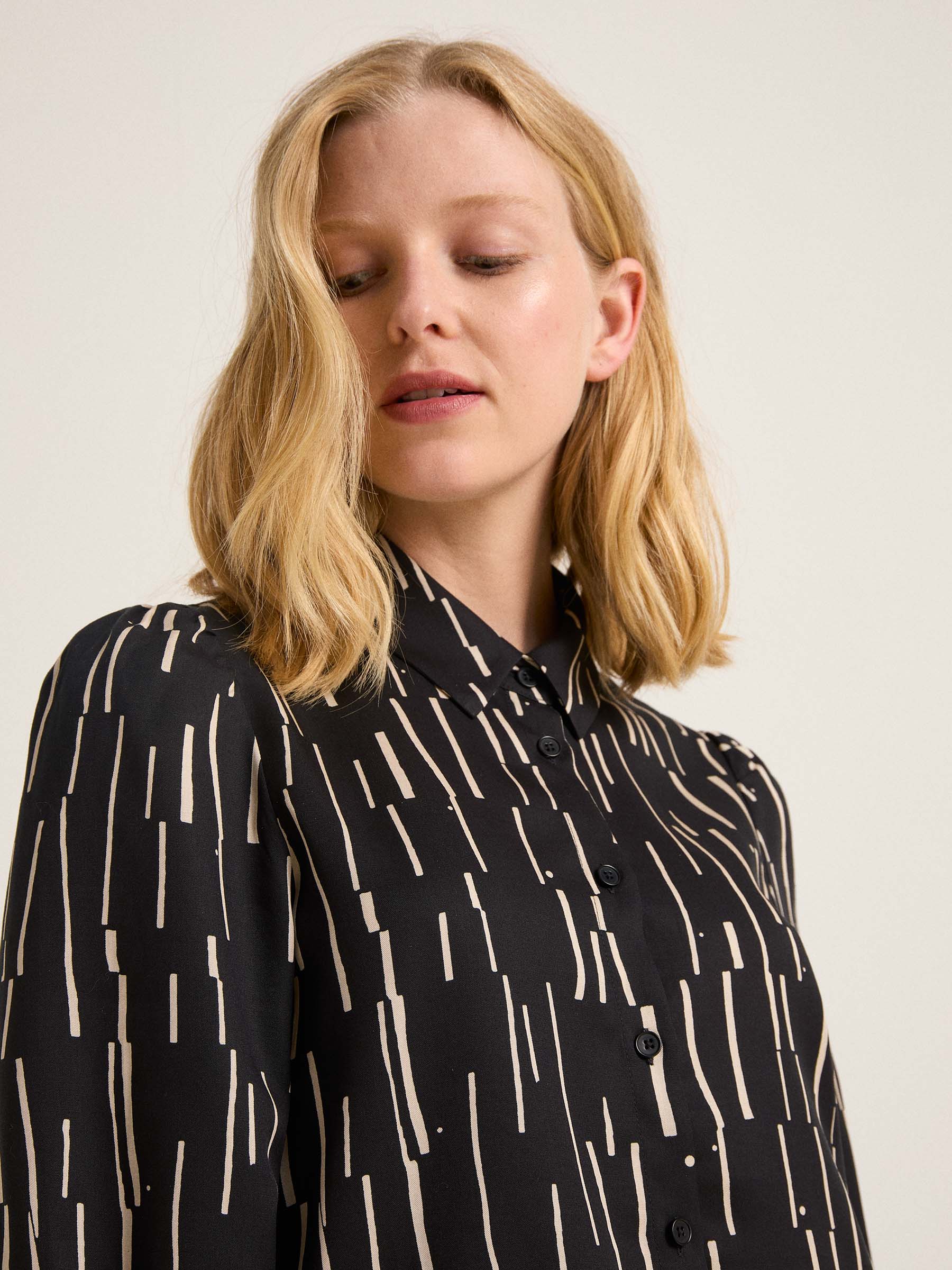 Autumnal retro print: The wonderfully soft and loose-fitting blouse made of TENCEL™ has the potential to be a favorite piece! The classic collar, the slightly flared 3/4-length sleeves and the color-coordinated buttons are elegant and feminine details. The blouse is a real eye-catcher in combination with the matching midi skirt, or casually with jeans and boots. A playful combination talent.