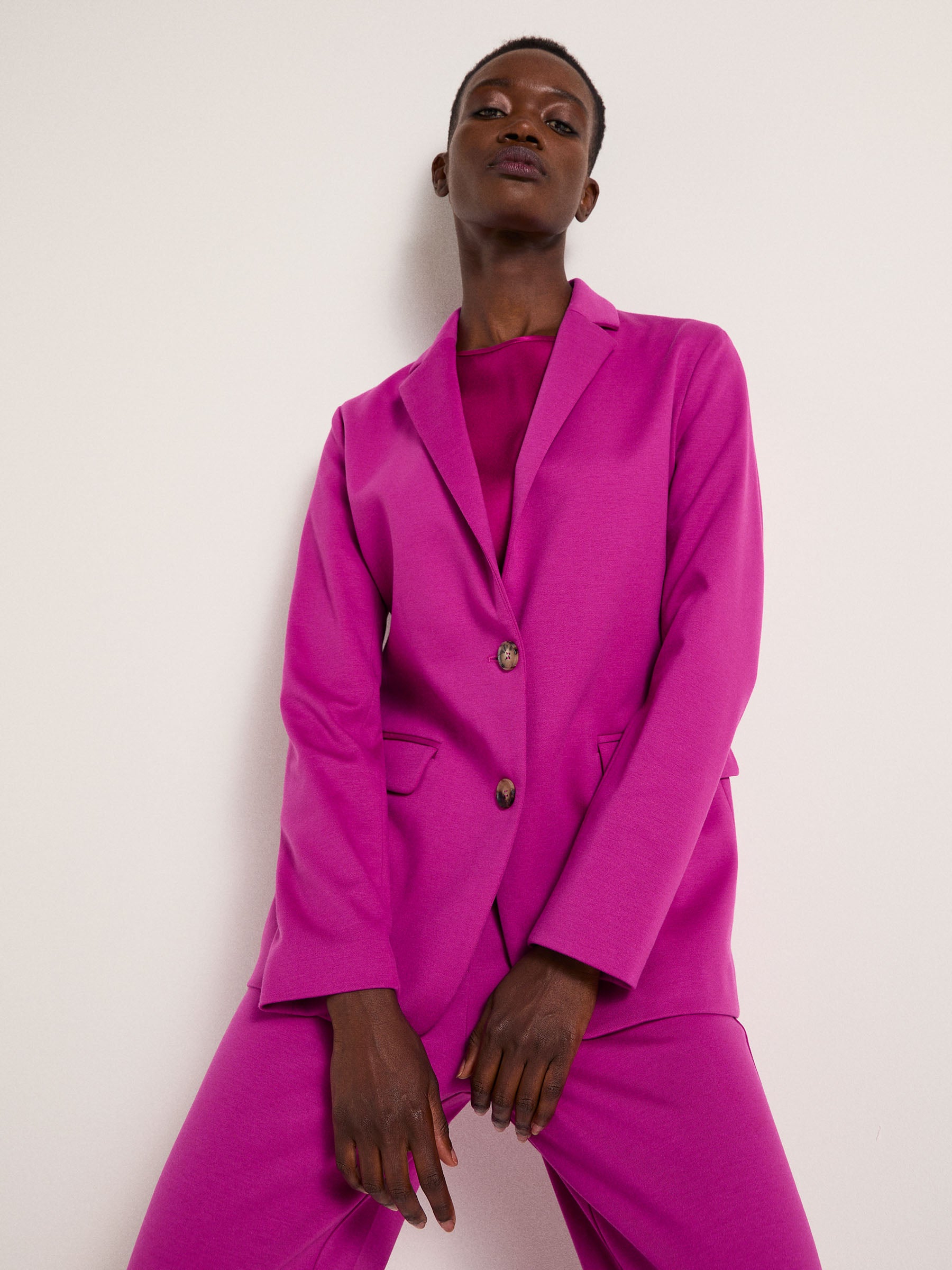 Capsule must-have: Our classic blazer with fashionable details such as the large lapel collar and the loose fit. The material mix of organic cotton and pure new wool ensures a firm, pleasantly soft quality that is perfect for colder days.
