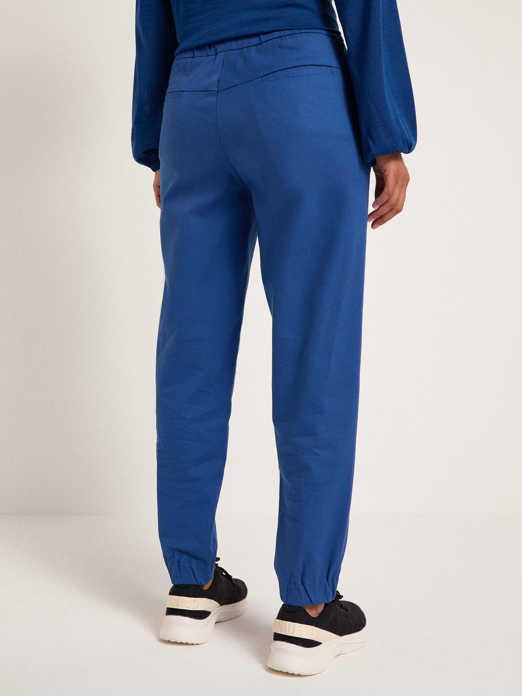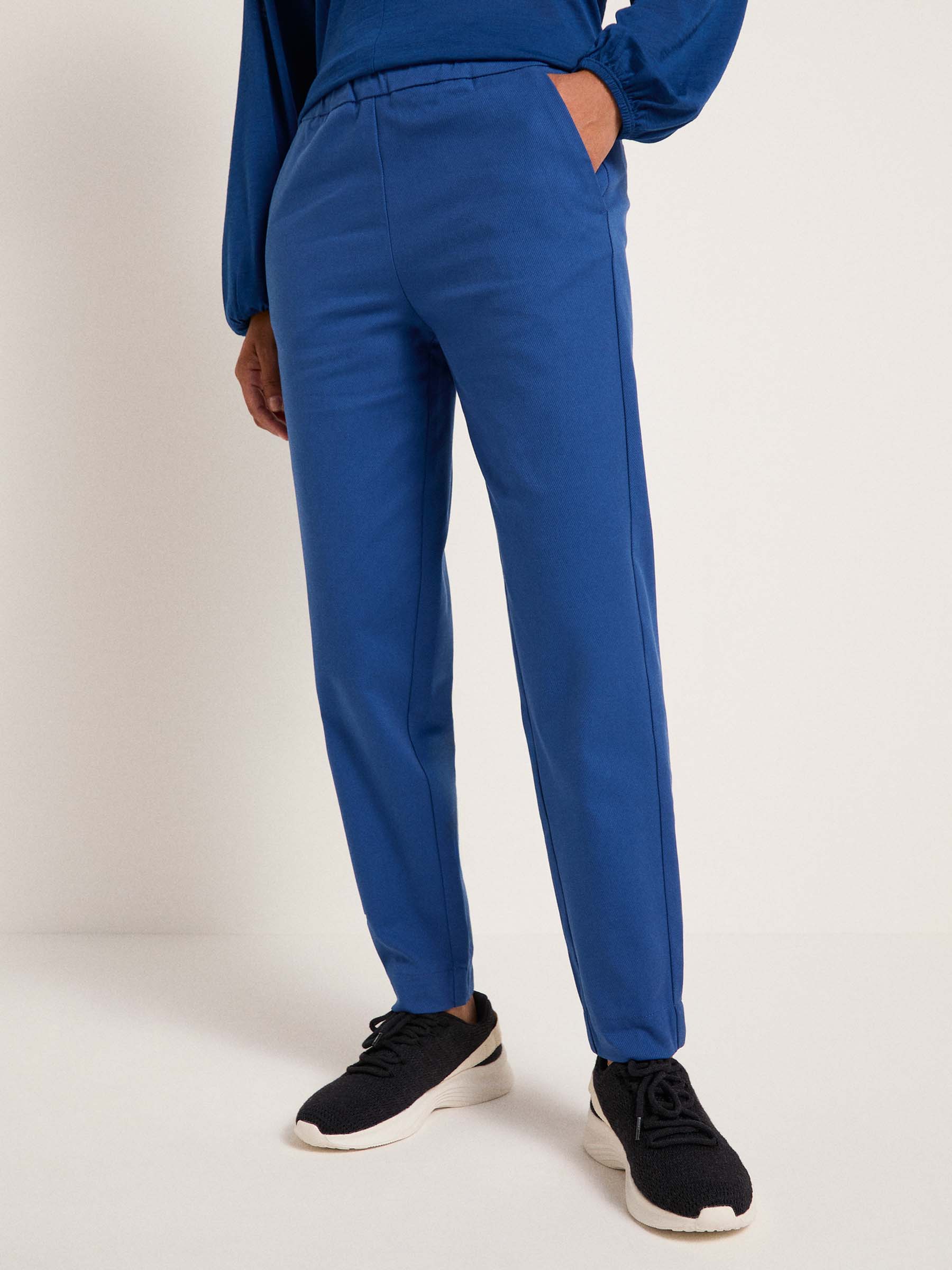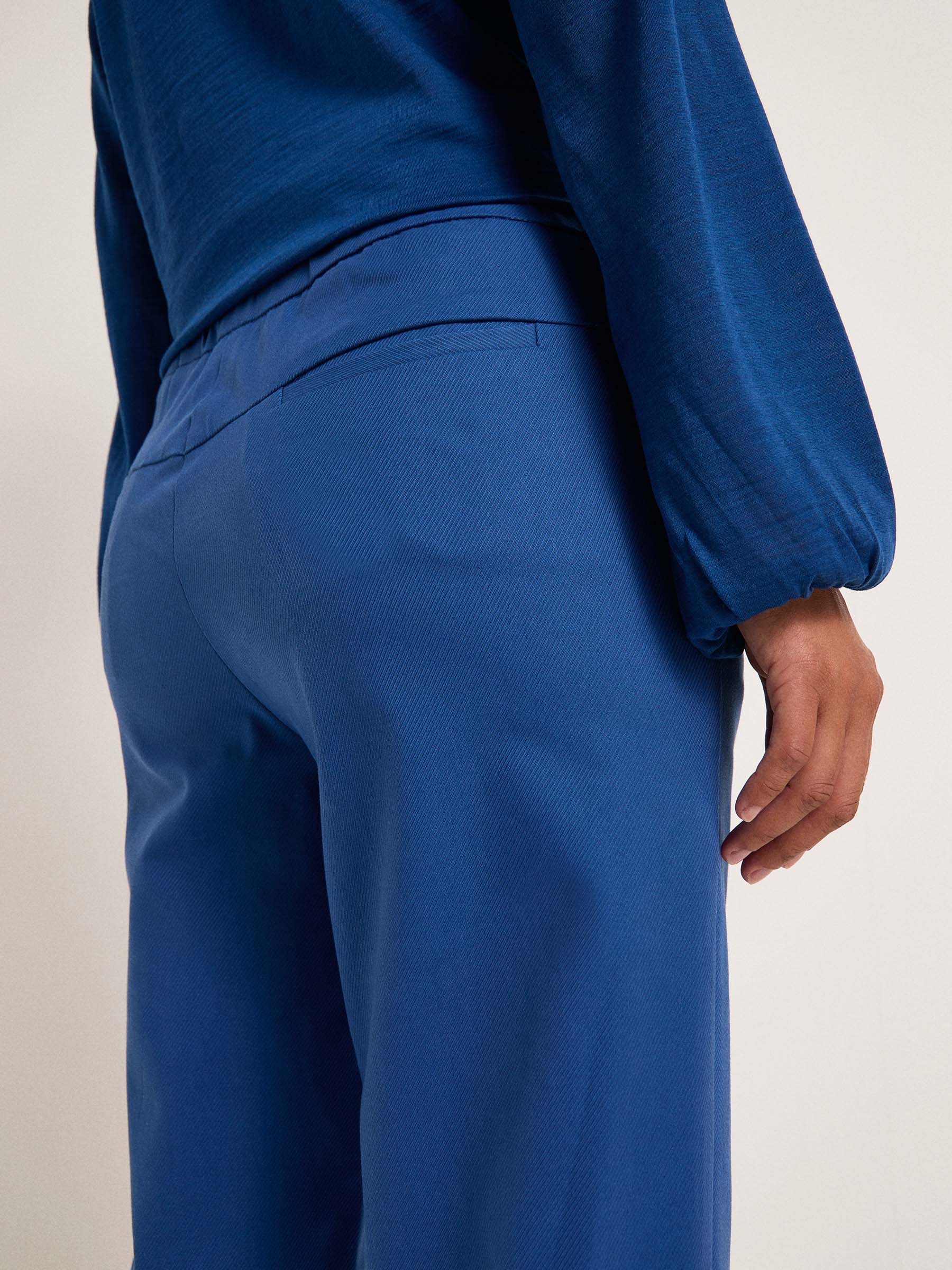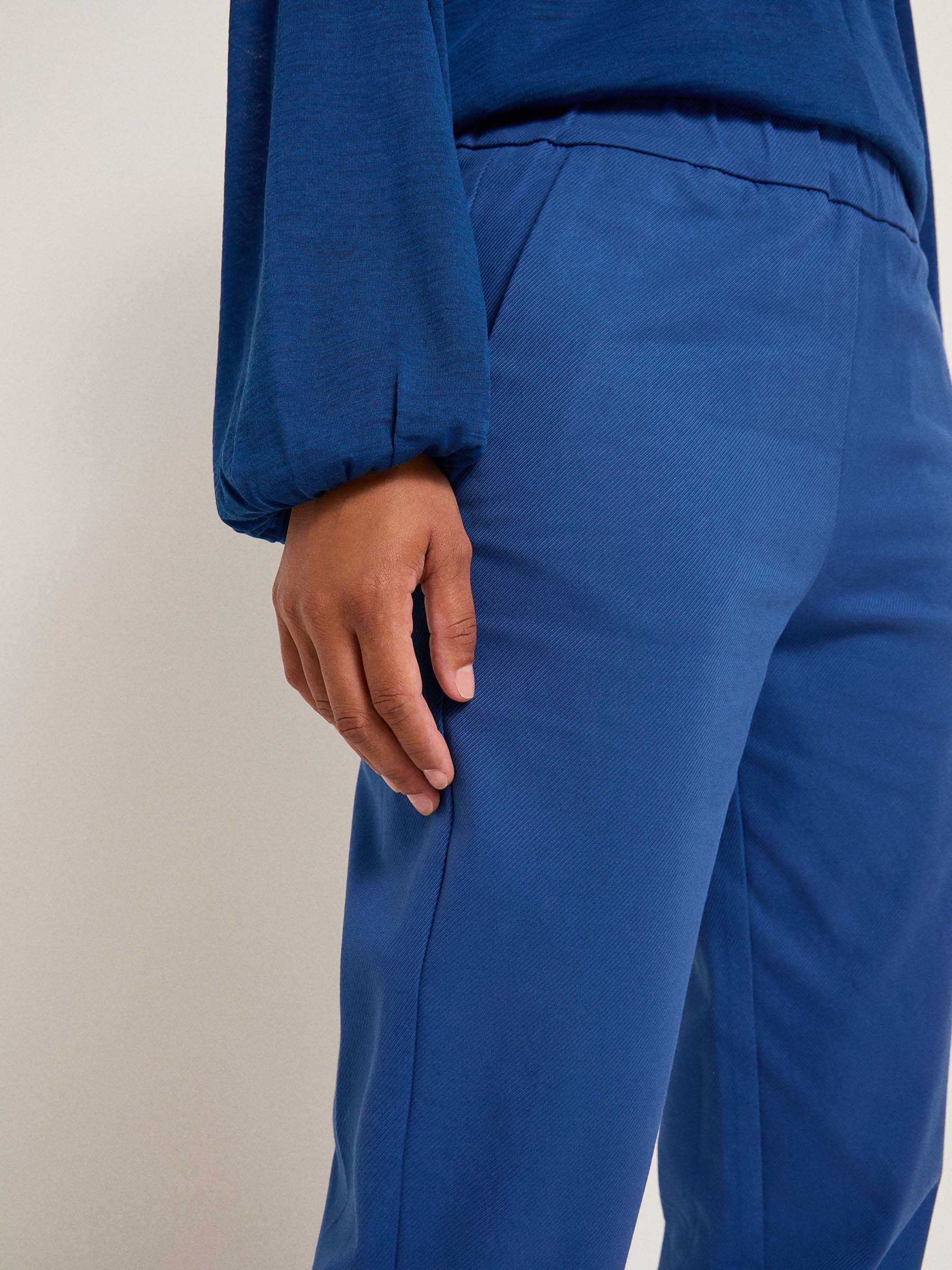 A classic and a must-have at the same time: our trousers with tapered legs made of TENCEL™ and organic cotton! The long trousers with an elastic, high waistband, loose fit and side pockets impress with their simple design. An elastic band at the back of the legs, a patch pocket at the back and a striking seam on the sides of the legs are fashionable details. Thanks to the pleasantly firm and durable material mix, the vegan pencil trousers are comfortable to wear even on cooler days. With a matching shirt and blazer, the all-over look is chic - with a knitted sweater and boots it is suitable for everyday use!