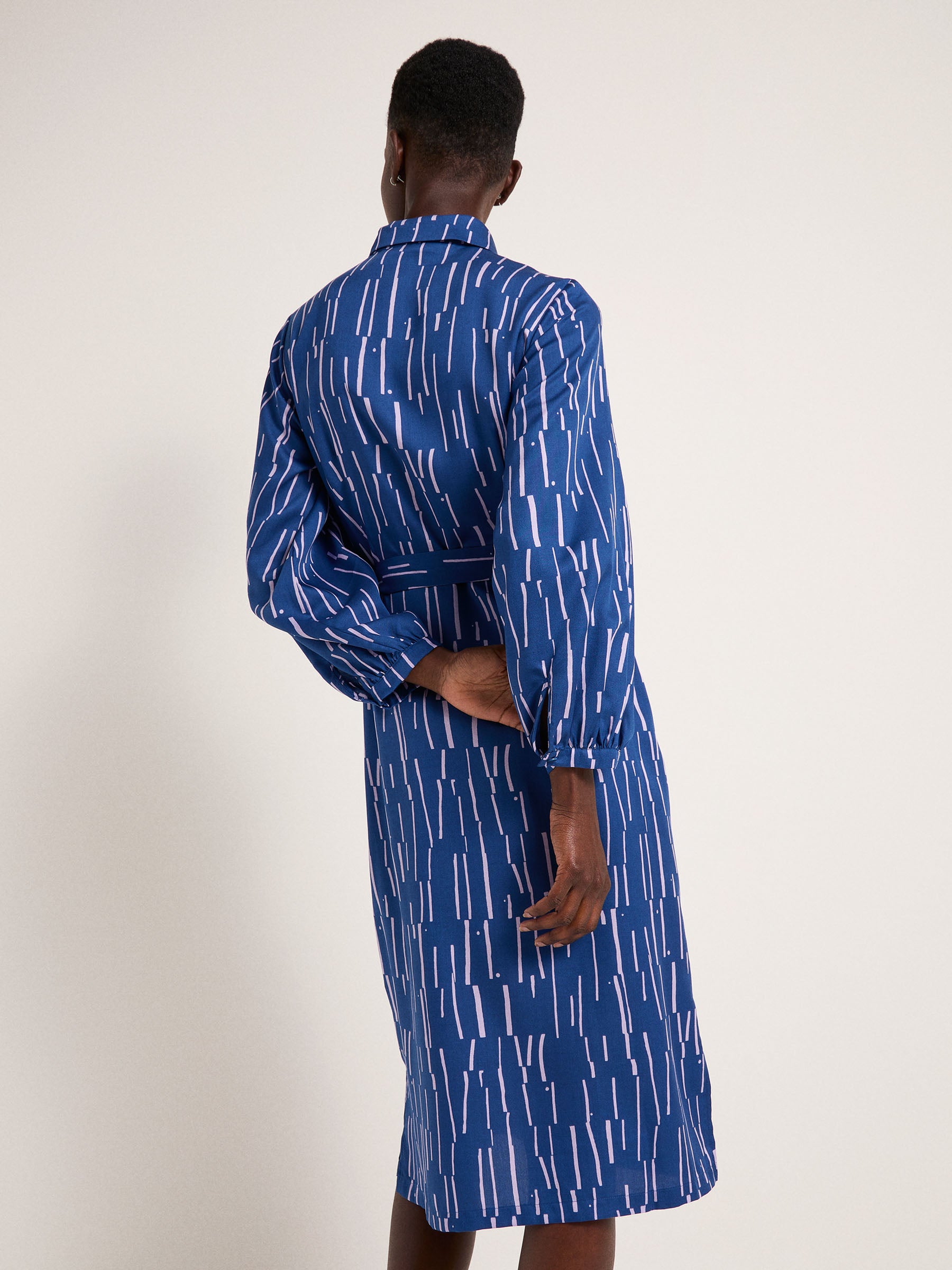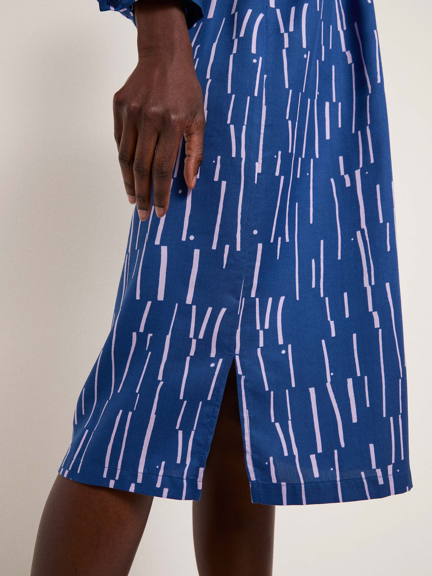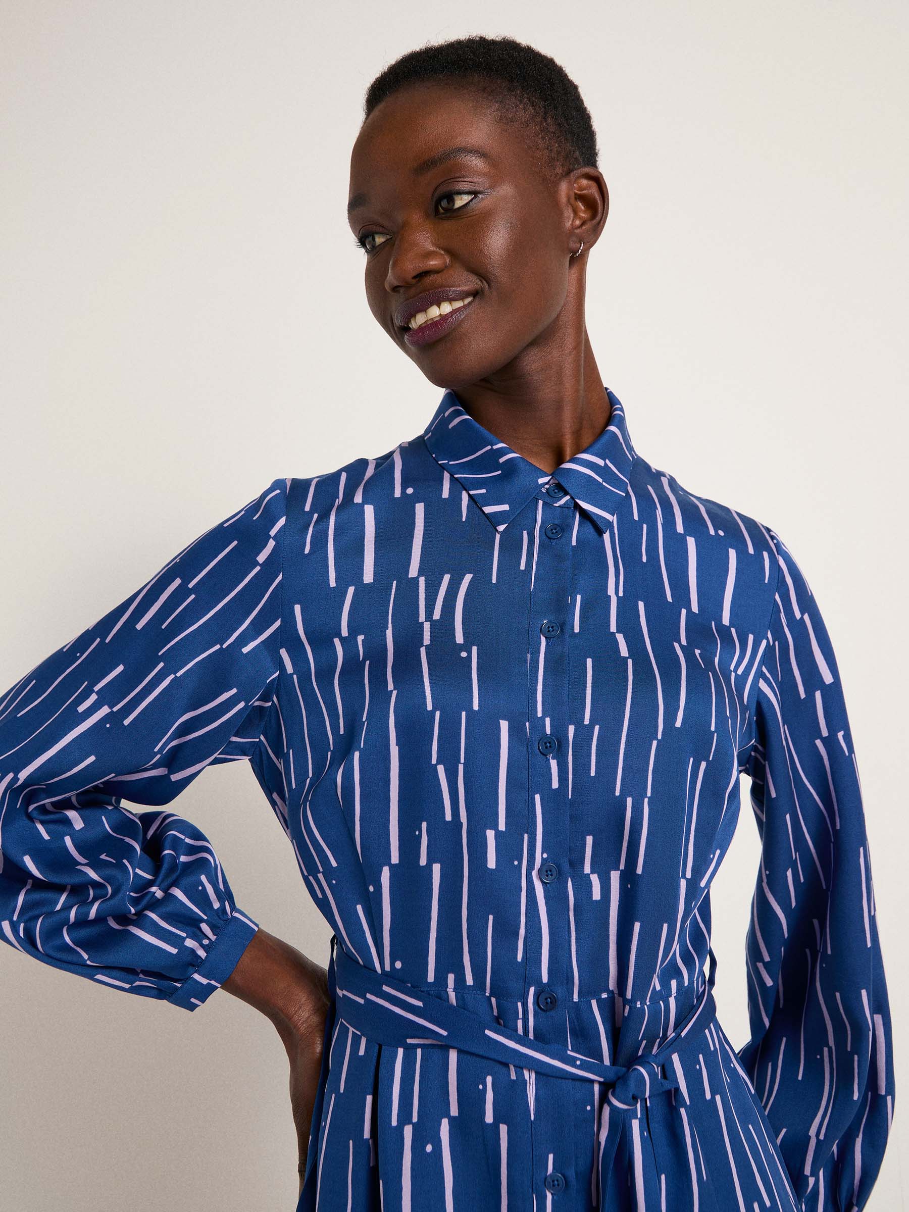 The cut of this dress resembles a shirt dress and is perfect for many occasions. The belt for individual waist adjustment, a small shirt collar and a full-length button placket ensure a flattering fit and are functional as well as fashionable details. The abstract striped print makes the midi-length dress an eye-catcher. Lyocell is pleasant on the skin and falls beautifully. The midi dress is a good choice for your sustainable wardrobe!