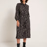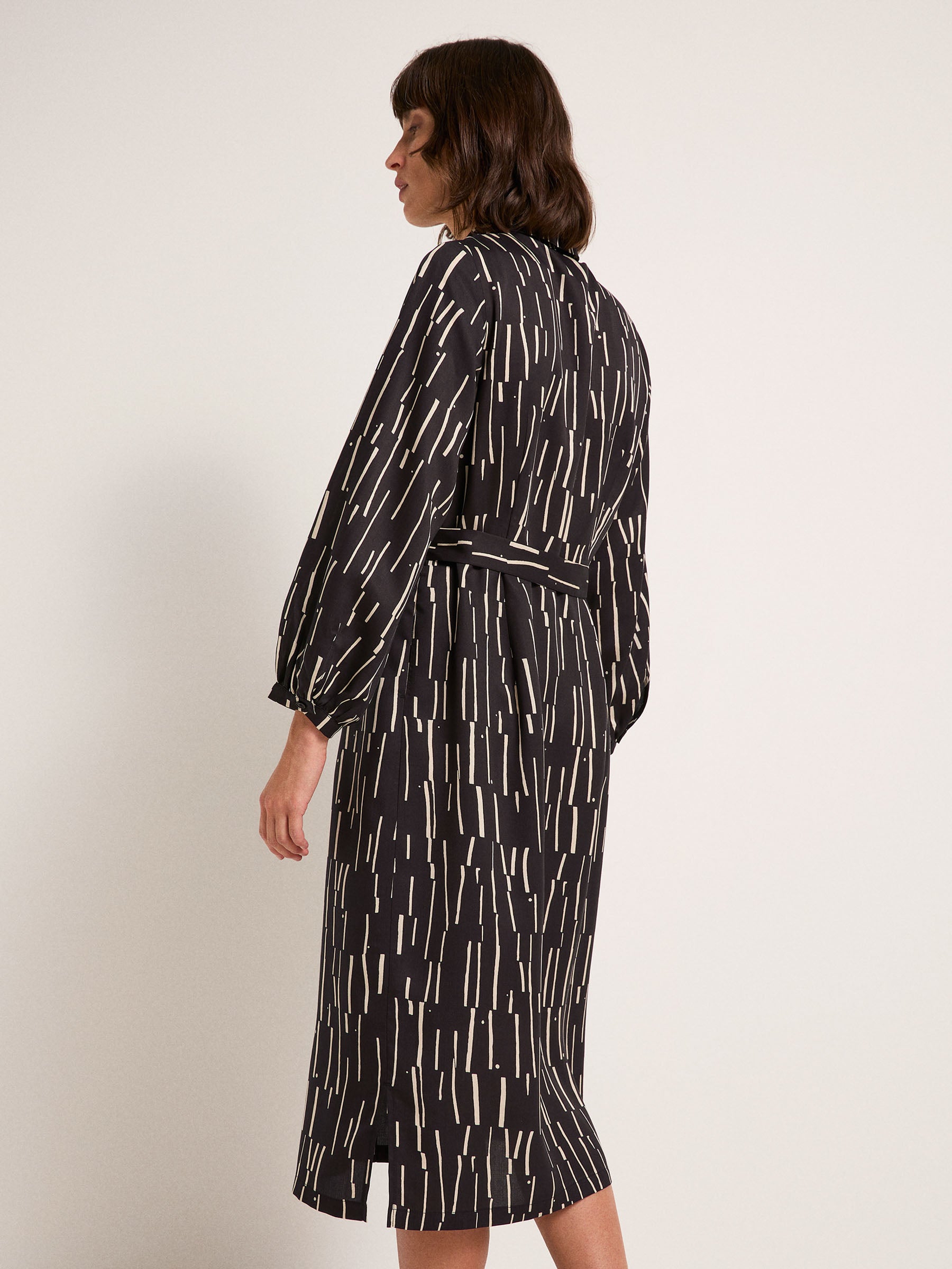 The cut of this dress resembles a shirt dress and is perfect for many occasions. The belt for individual waist adjustment, a small shirt collar and a full-length button placket ensure a flattering fit and are functional as well as fashionable details. The abstract striped print makes the midi-length dress an eye-catcher. Lyocell is pleasant on the skin and falls beautifully. The midi dress is a good choice for your sustainable wardrobe!