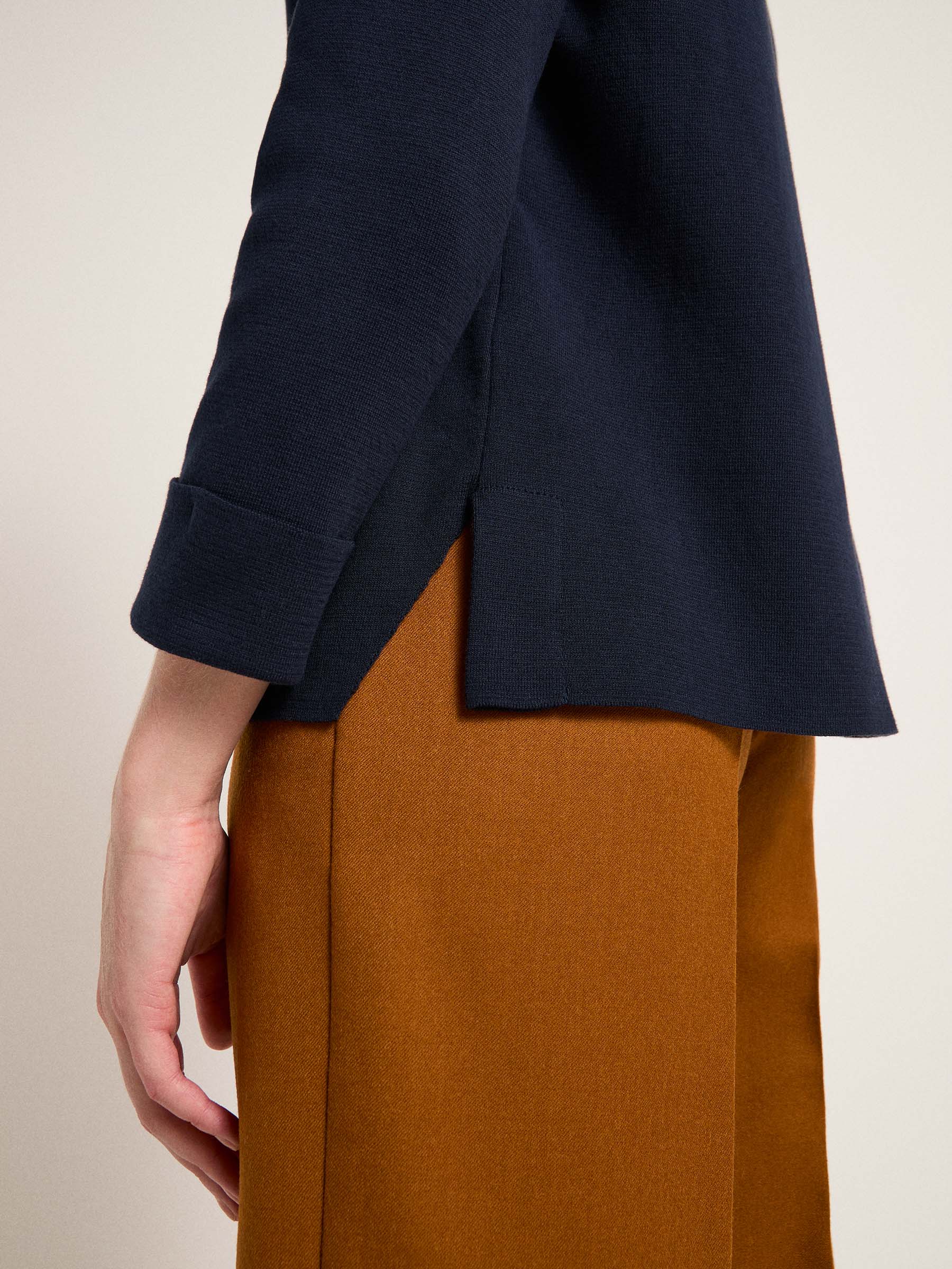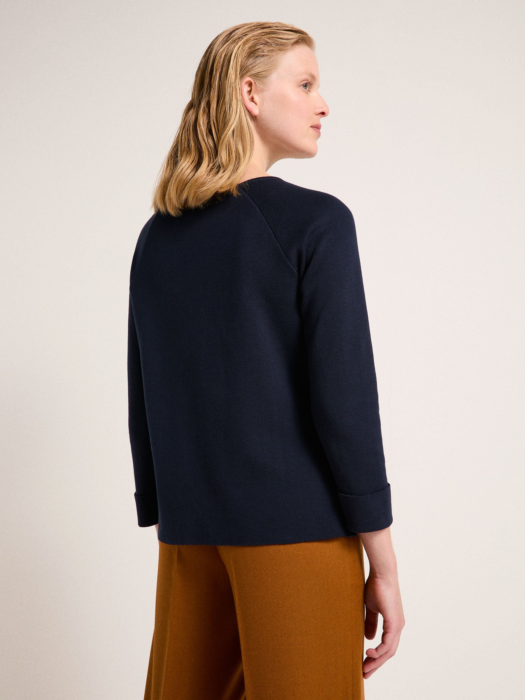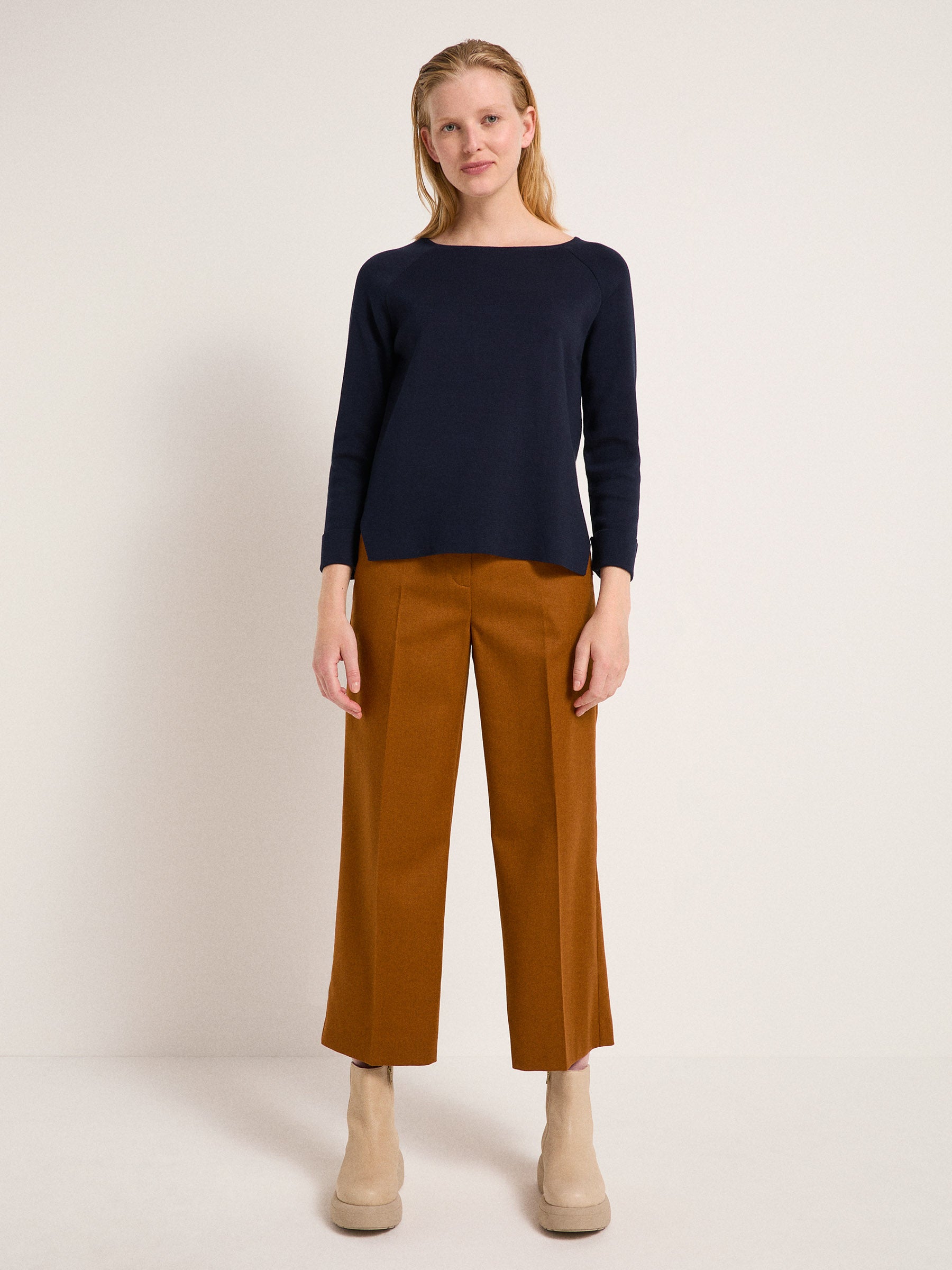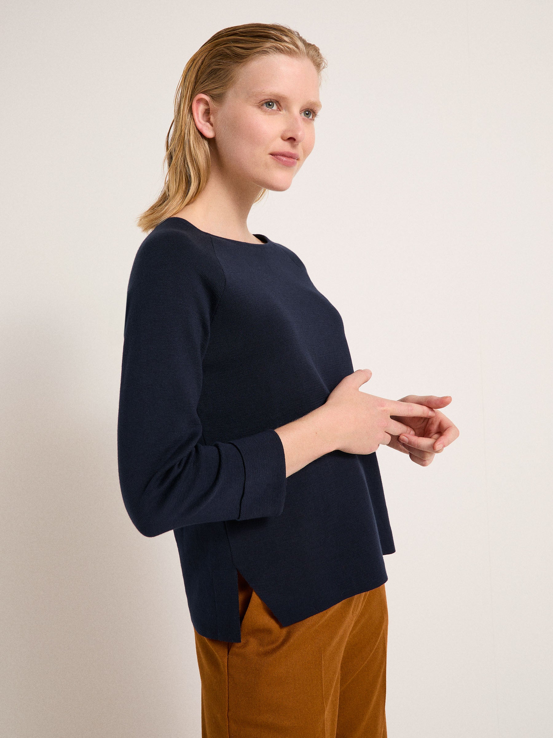 Classic sweater with narrow raglan sleeves, straight fit and boat neck. The special Punto Milano knitting technique is knitted from high-quality organic cotton in a subtle structure, gives the sweater a soft yet compact strength, makes it easy to care for and durable. The folded cuffs of the slightly shortened sleeves and the side slits ensure a modern, casual look. The special thing about the quality: little to no pilling!