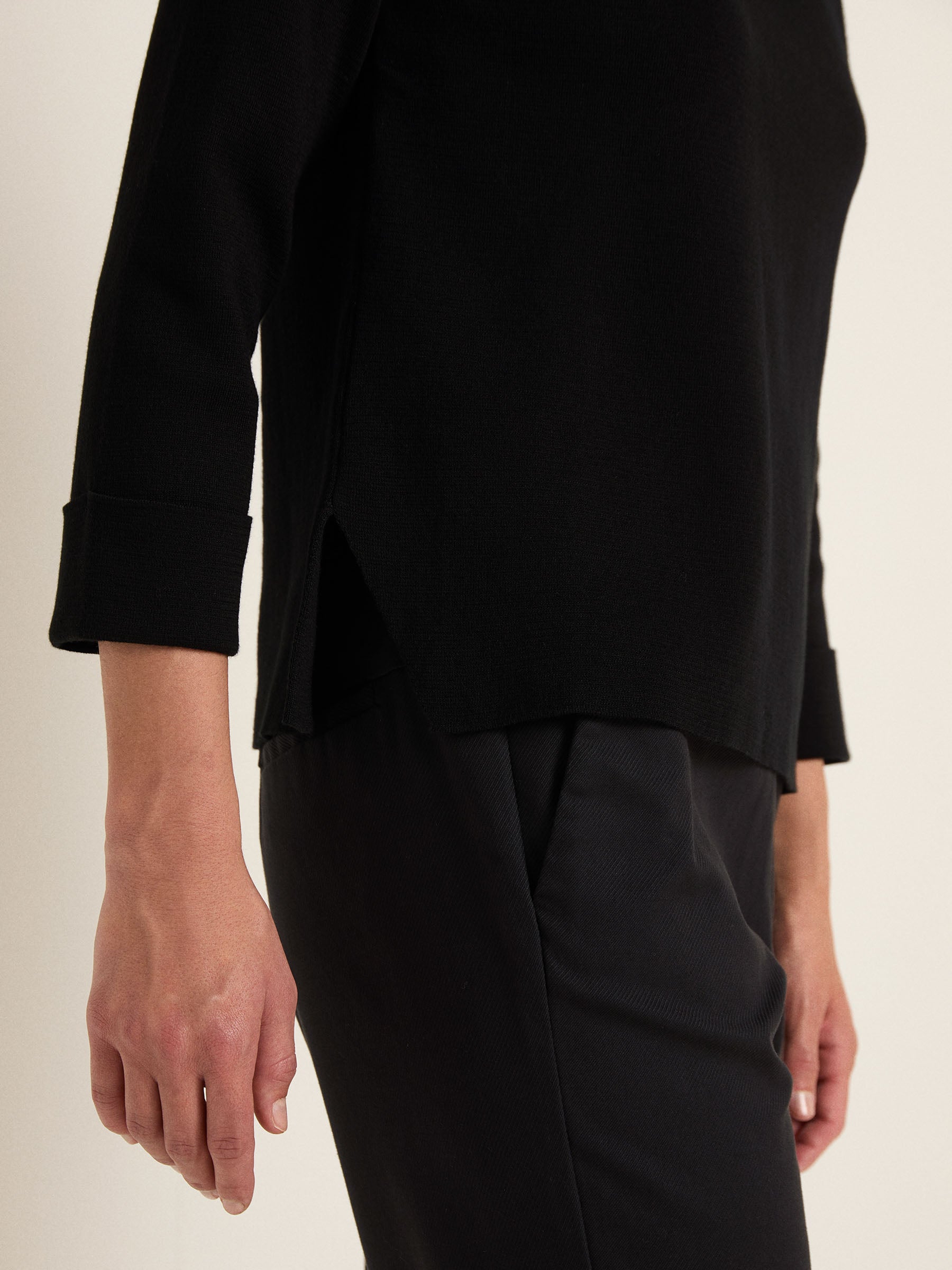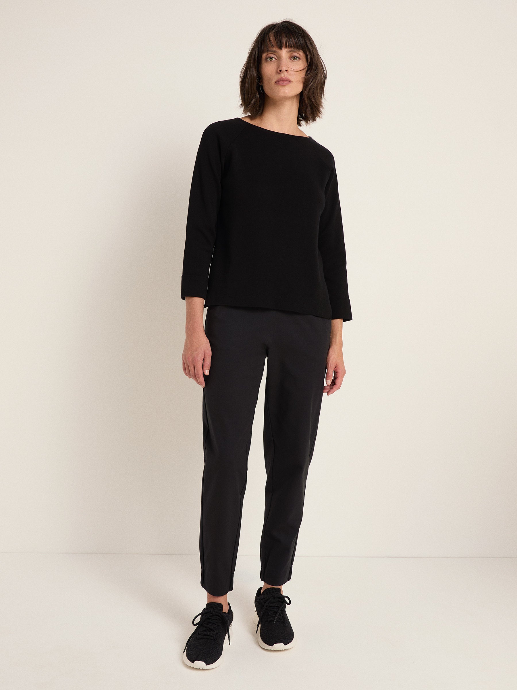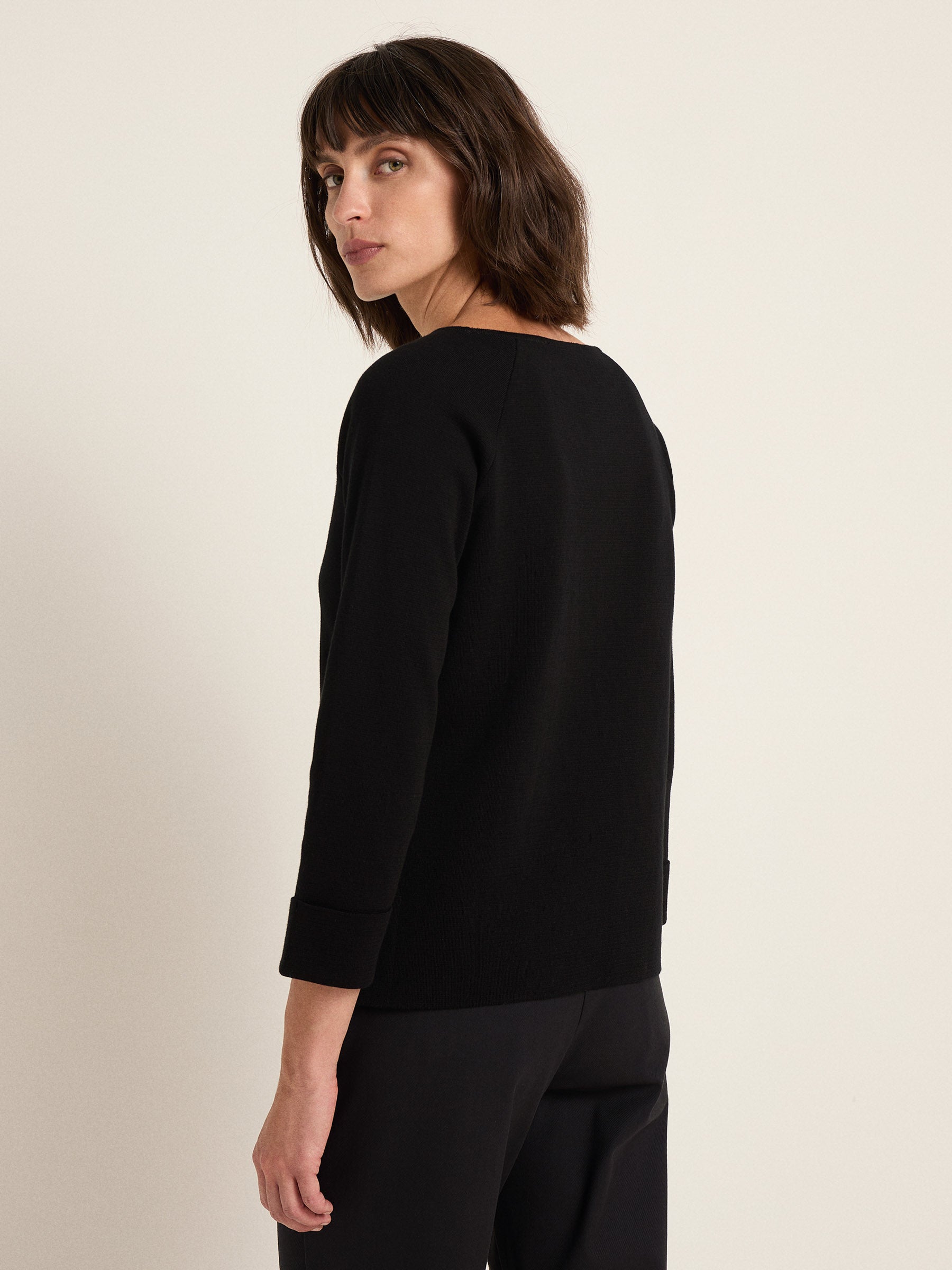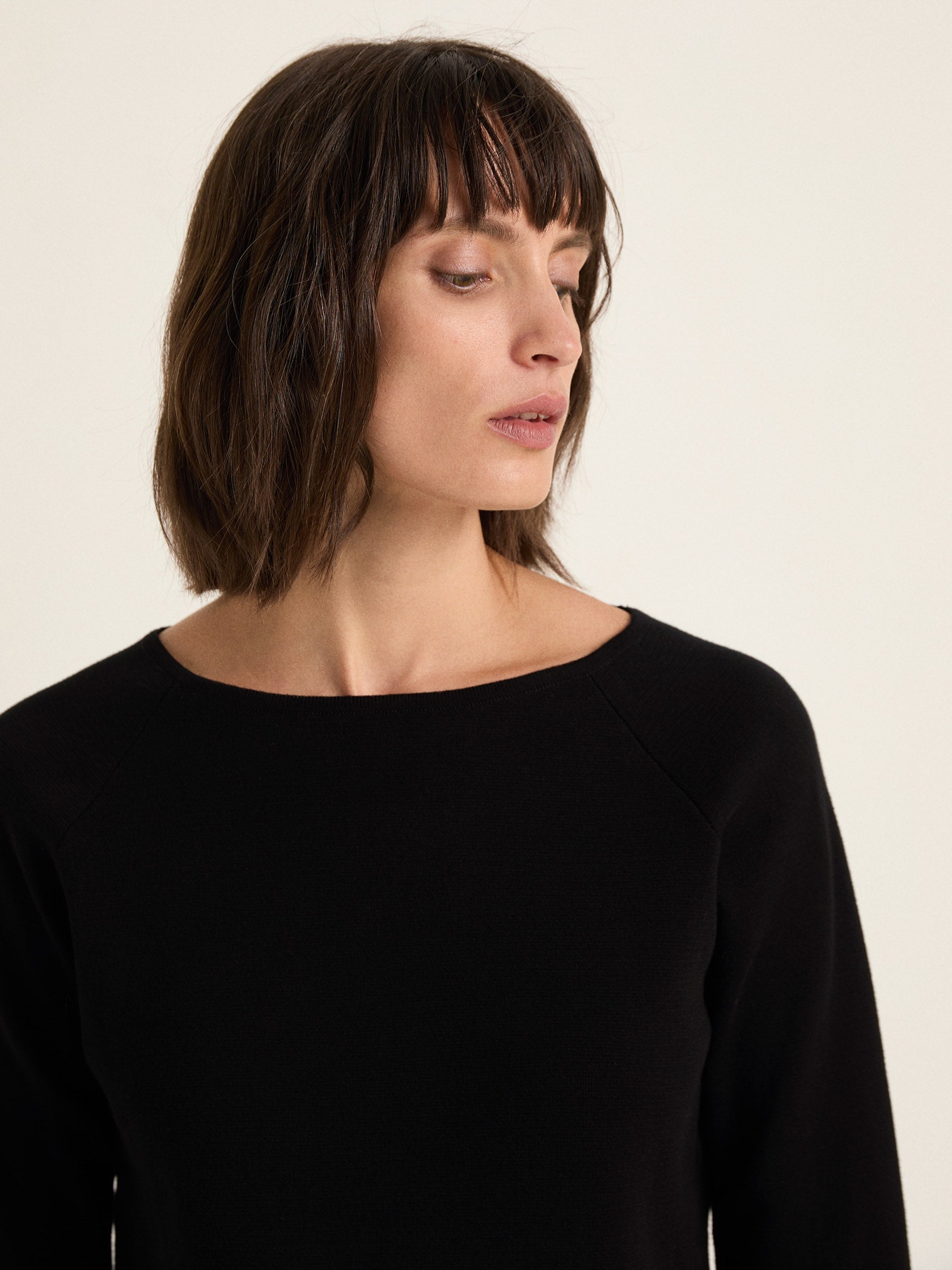 Classic sweater with narrow raglan sleeves, straight fit and boat neck. The special Punto Milano knitting technique is made from high-quality organic cotton with a subtle structure, which gives the sweater a soft yet compact strength, making it easy to care for and durable. The folded cuffs of the slightly shortened sleeves and the side slits ensure a modern, casual look. The special thing about the quality: little to no pilling!