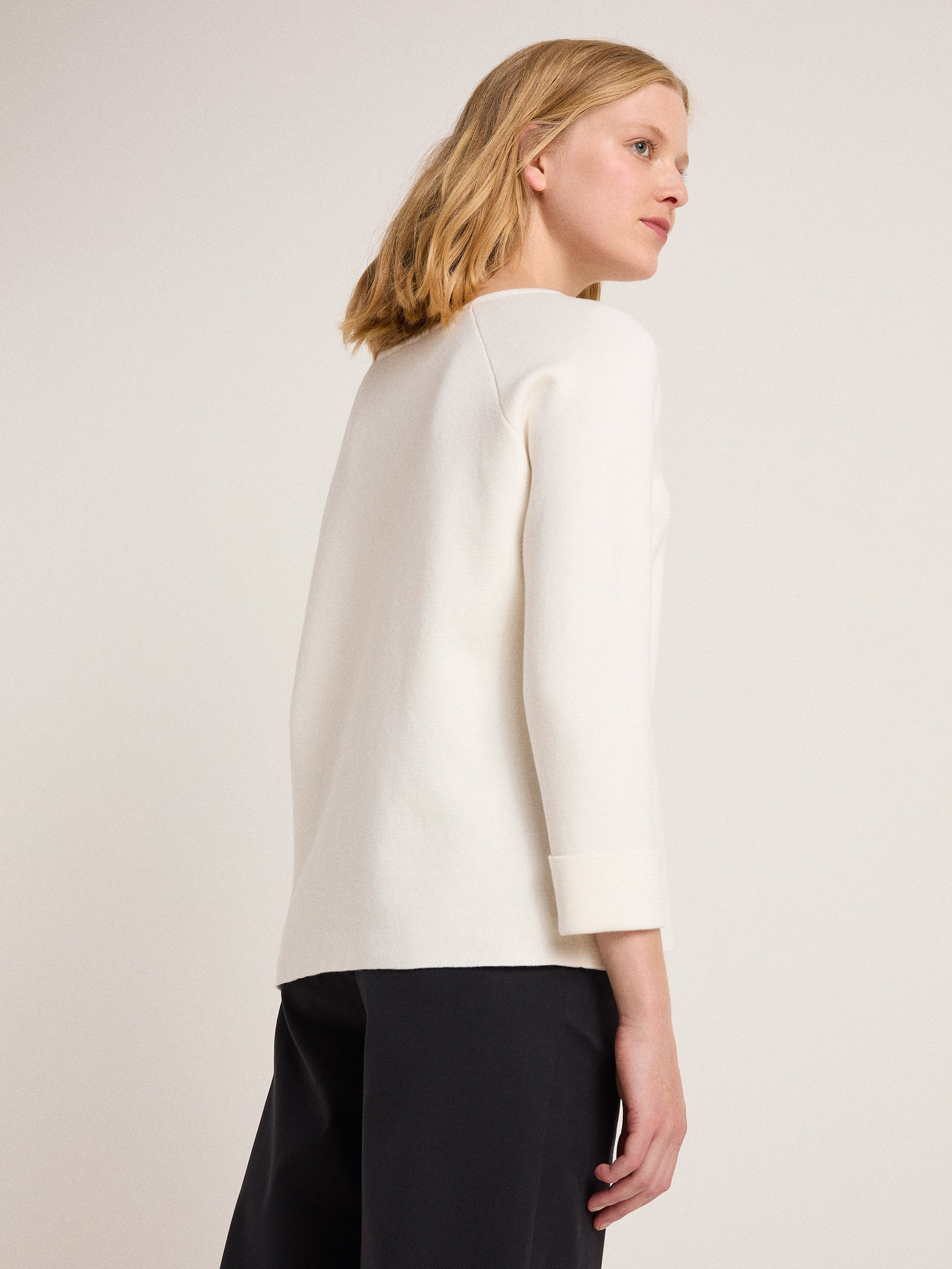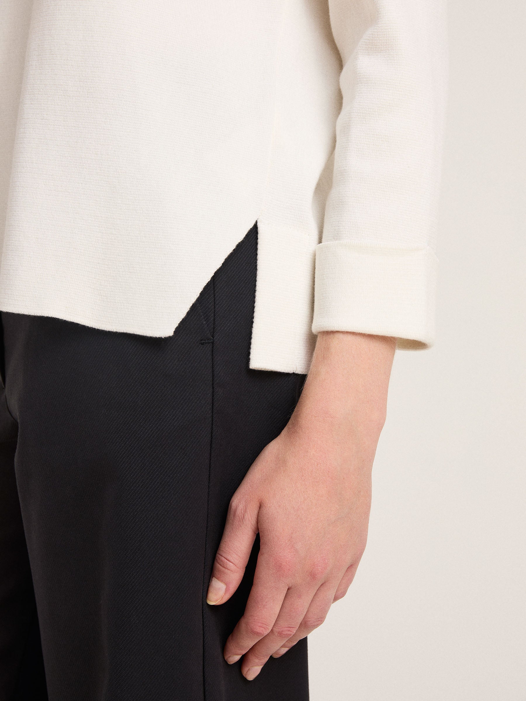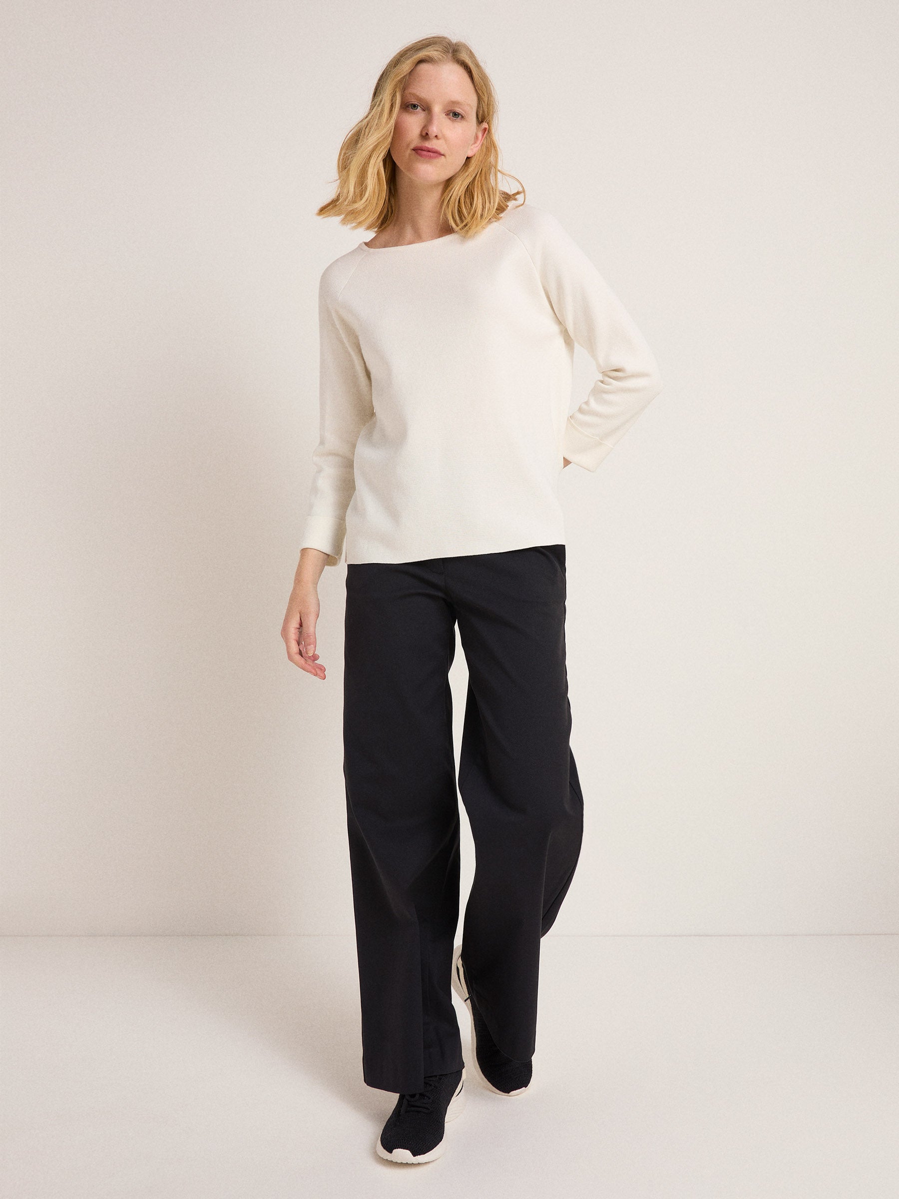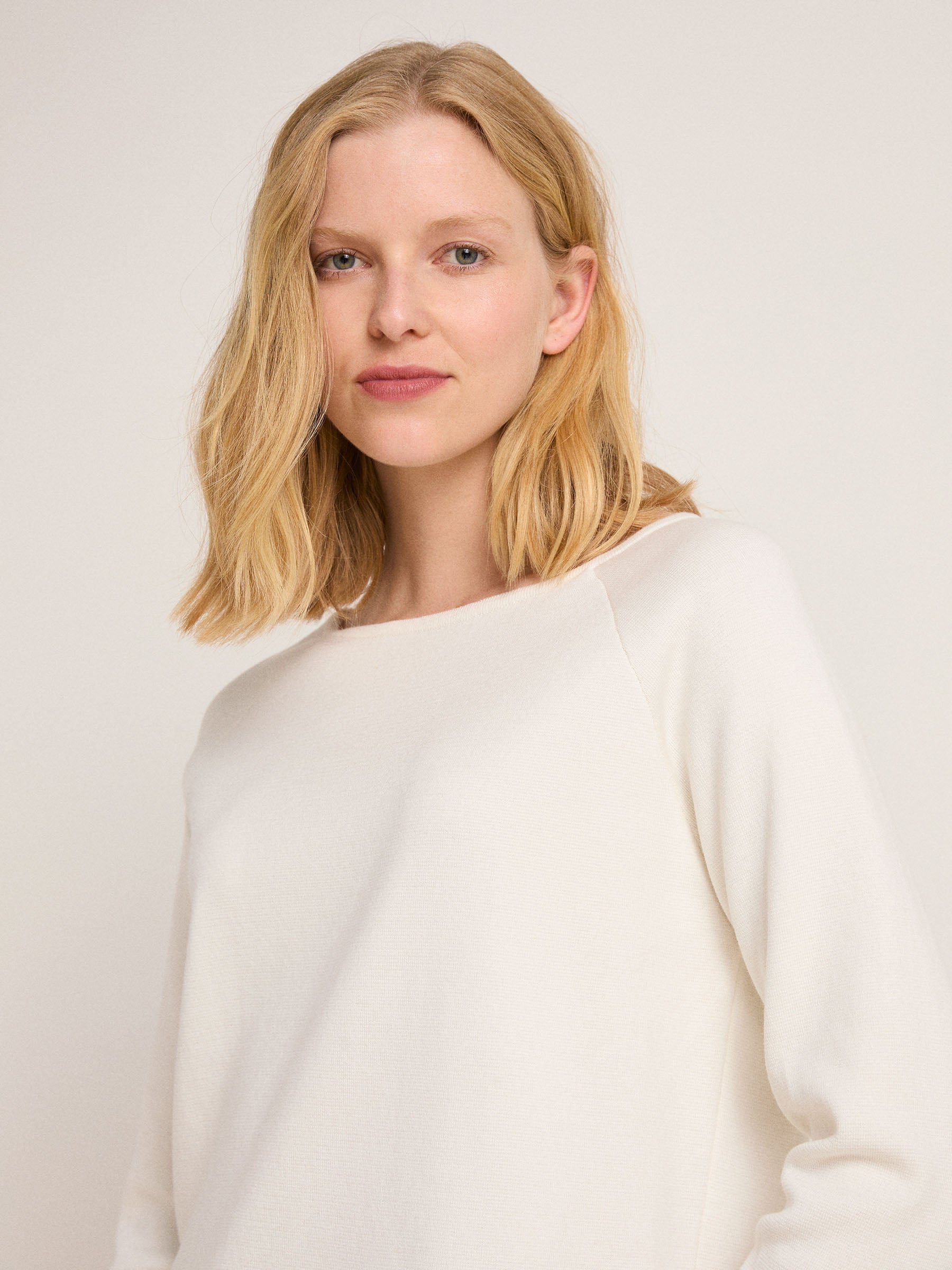 Classic sweater with narrow raglan sleeves, straight fit and boat neck. The special Punto Milano knitting technique is made from high-quality organic cotton with a subtle structure, which gives the sweater a soft yet compact strength, making it easy to care for and durable. The folded cuffs of the slightly shortened sleeves and the side slits ensure a modern, casual look. The special thing about the quality: little to no pilling!