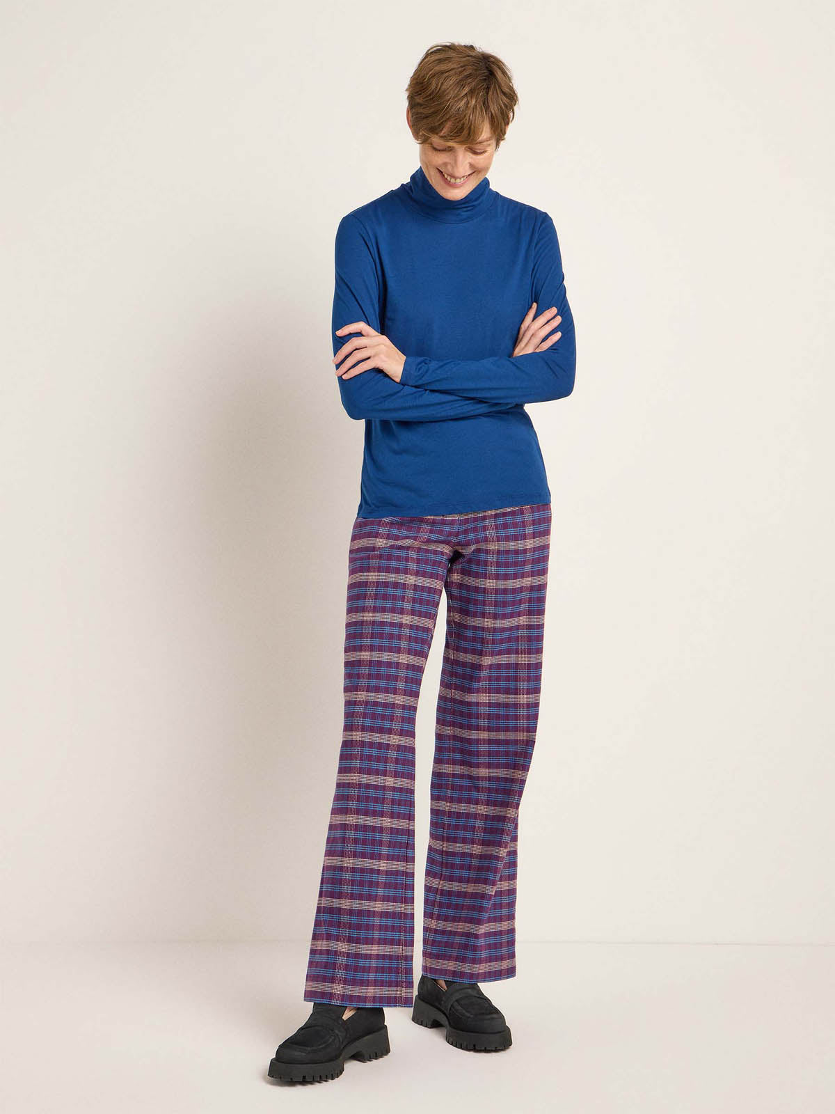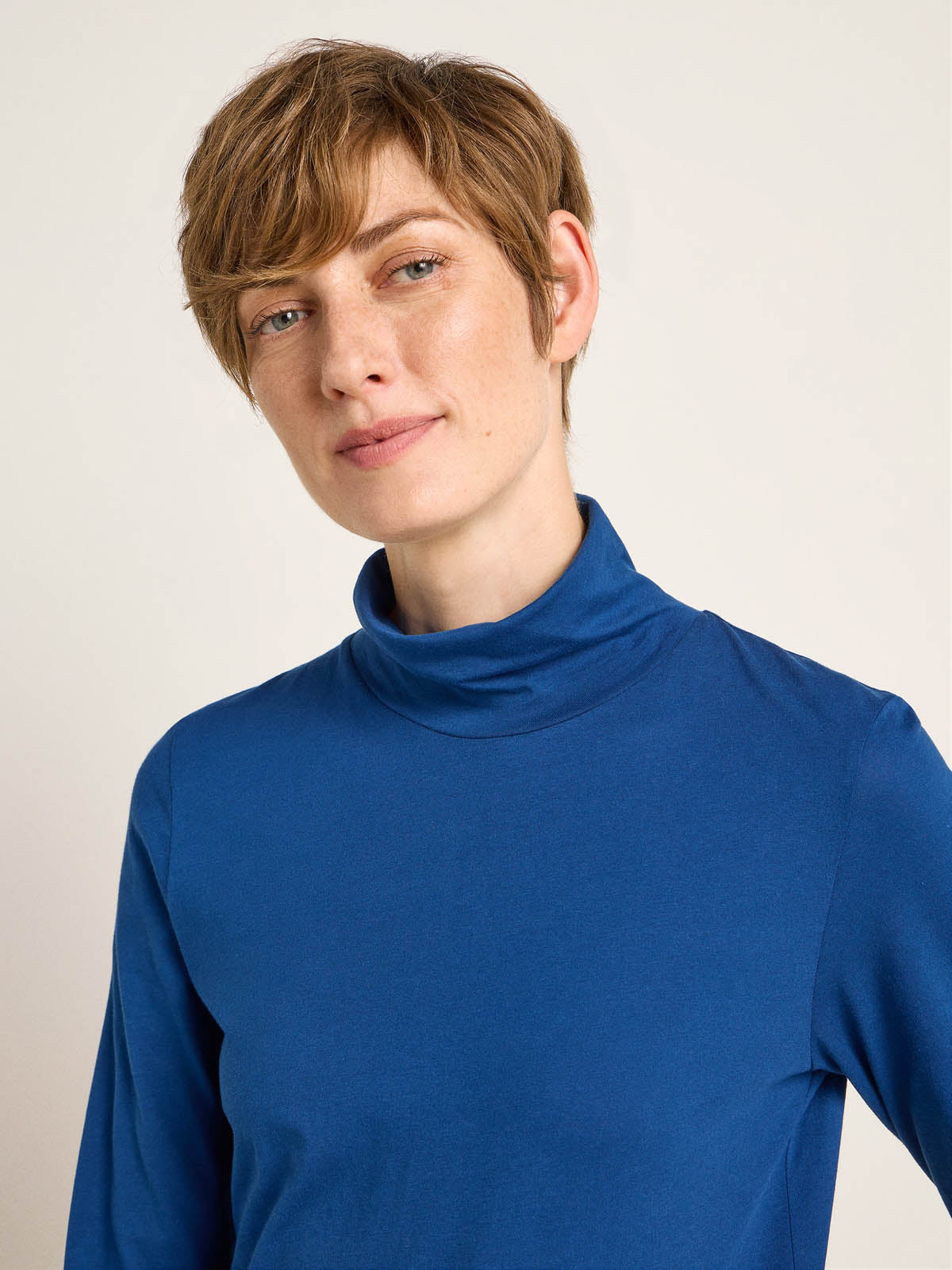 High-quality LANIUS basic must-have: turtleneck top made of 100% organic cotton, fairly produced in Europe. The cotton fabric is pleasantly airy and soft and is also ideal for sensitive skin. The long sleeves give the arm a slim silhouette, the turtleneck looks chic and elegant. The shirt is cut close to the body. The waistband and cuffs are reinforced with a double hem. Available in eight different colors!