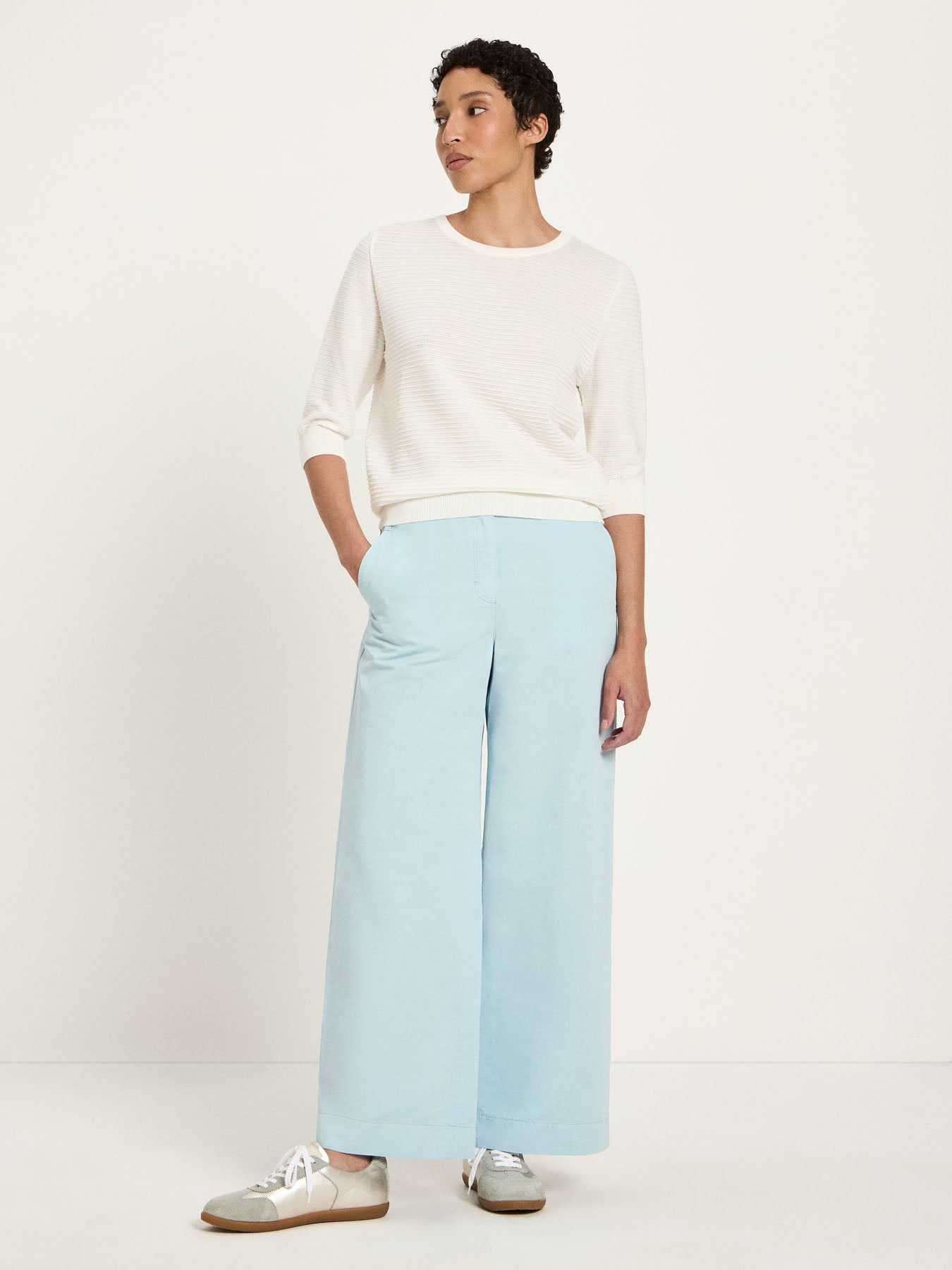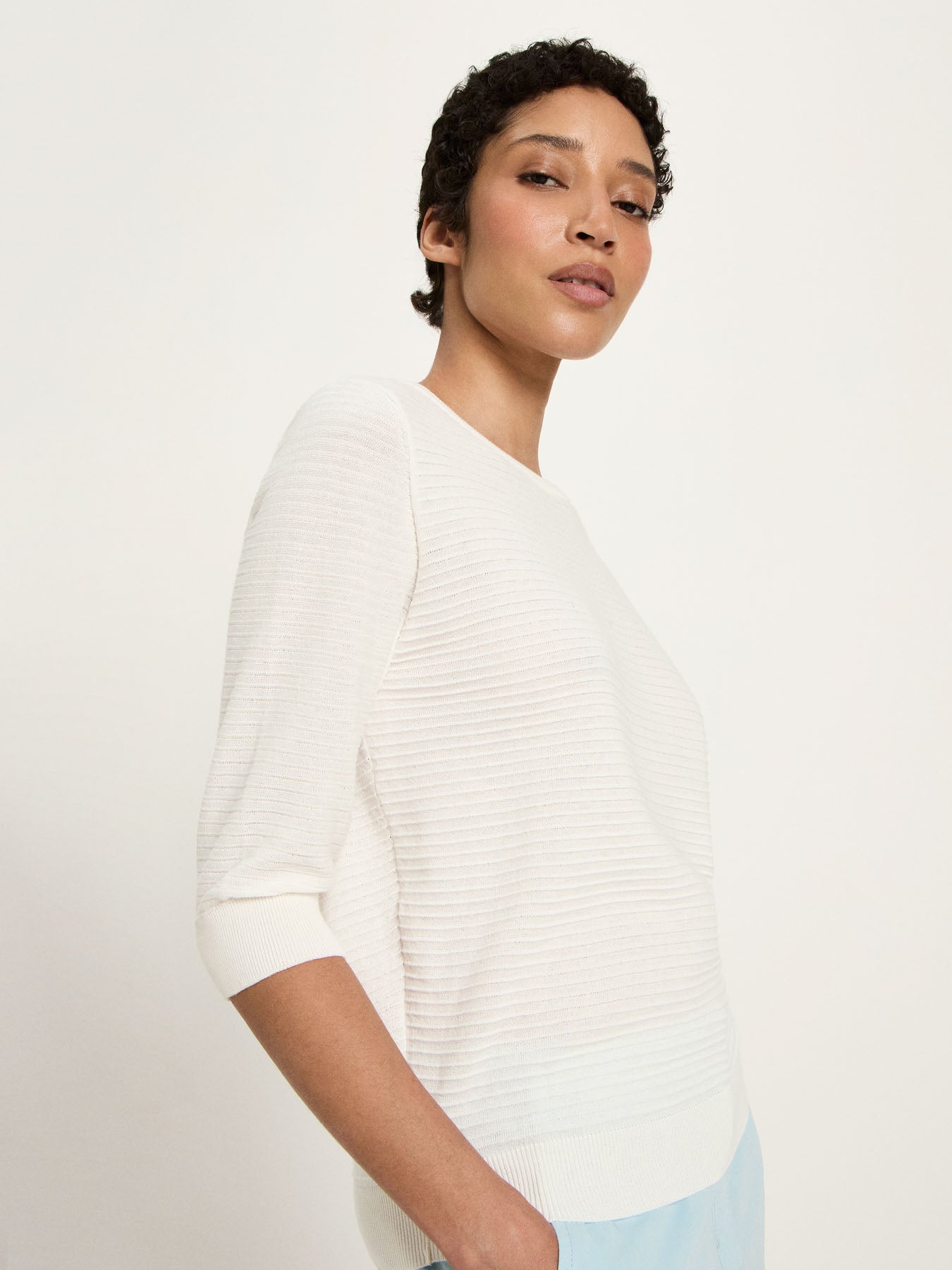 Mit seinem minimalistischen Design ist dieser Halbarmpullover aus hochwertiger Bio-Baumwolle sowohl für entspannte als auch elegantere Outfits die perfekte Wahl. Er besticht durch seine feine Struktur und den angenehm weichen Tragekomfort. Ideal für die Übergangszeit oder als leichter Layer zu jedem Look.