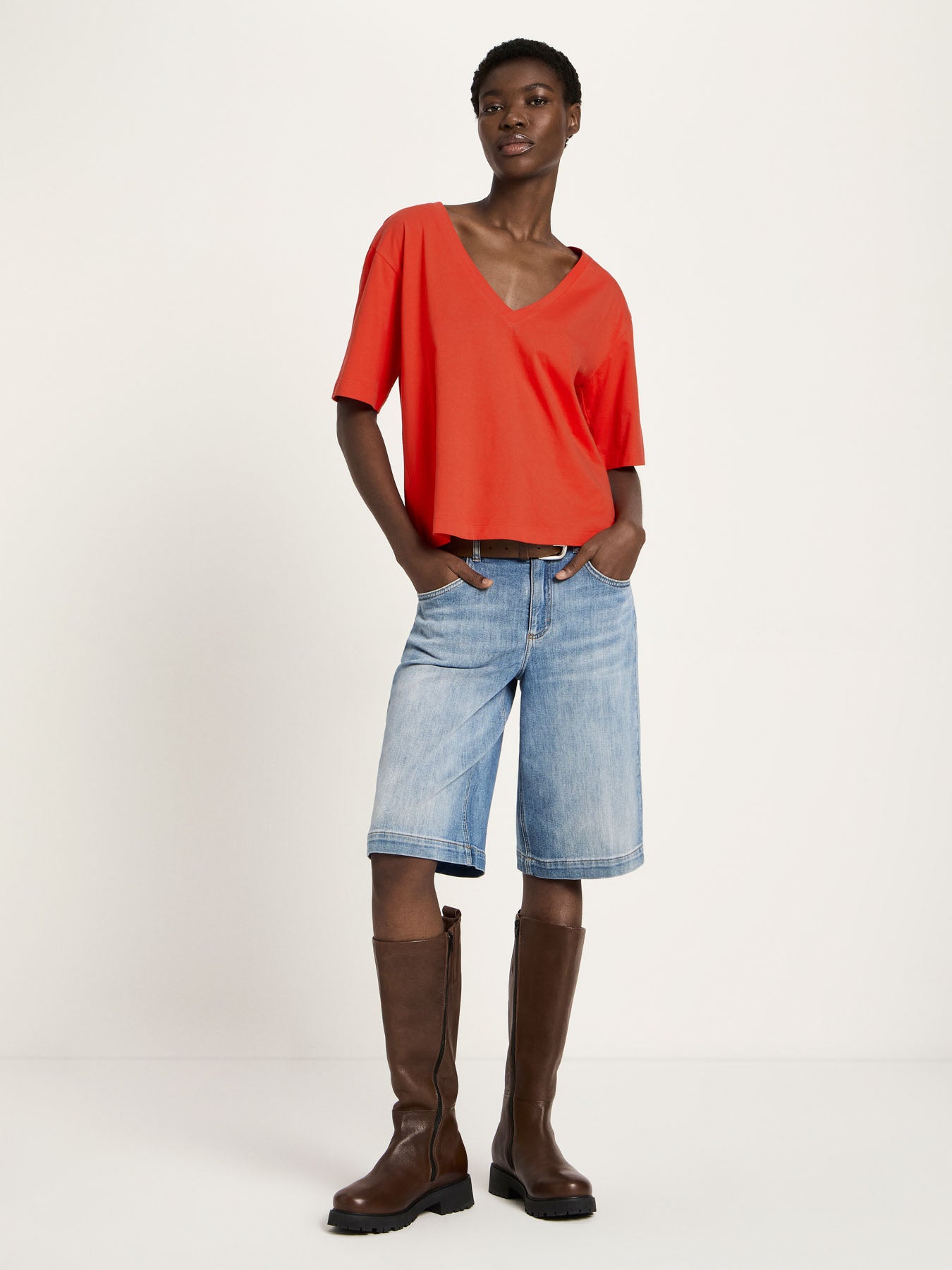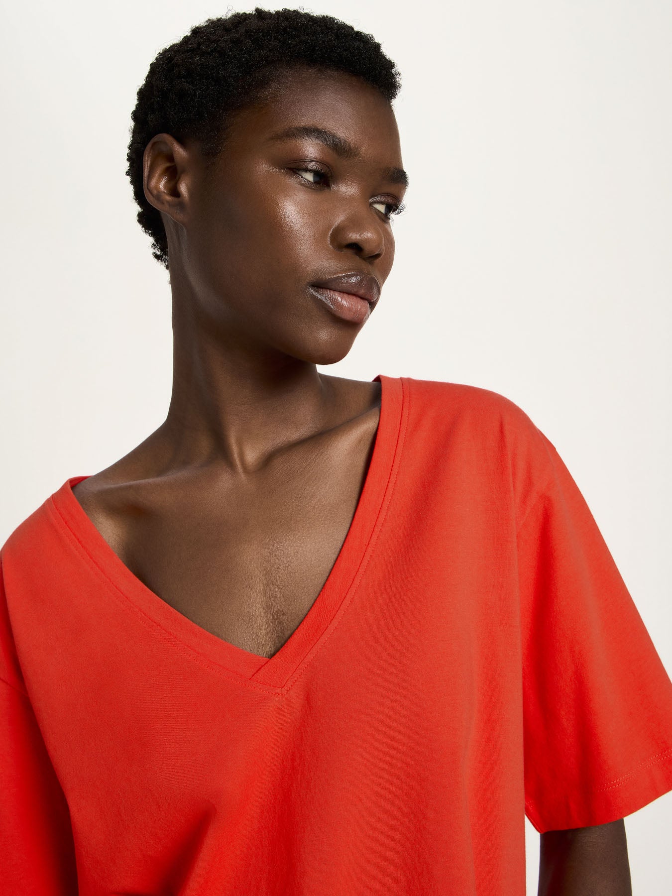 Dieses zeitlose Basic-Piece mit elegantem V-Ausschnitt ist ein echtes Essential für jede Garderobe. Das körpernahe Shirt aus hochwertiger, GOTS-zertifizierter Bio-Baumwolle überzeugt durch angenehmen Tragekomfort, eine schmeichelnde Silhouette und eine bewährte Passform. In verschiedenen Farben erhältlich, lässt sich das nachhaltige Oberteil vielseitig kombinieren – ob casual zur Jeans oder elegant unter Blazer oder Cardigan.