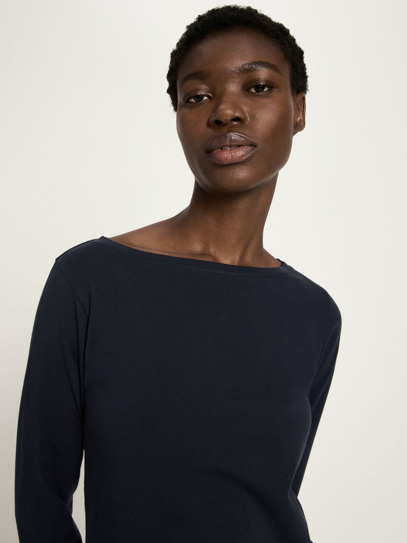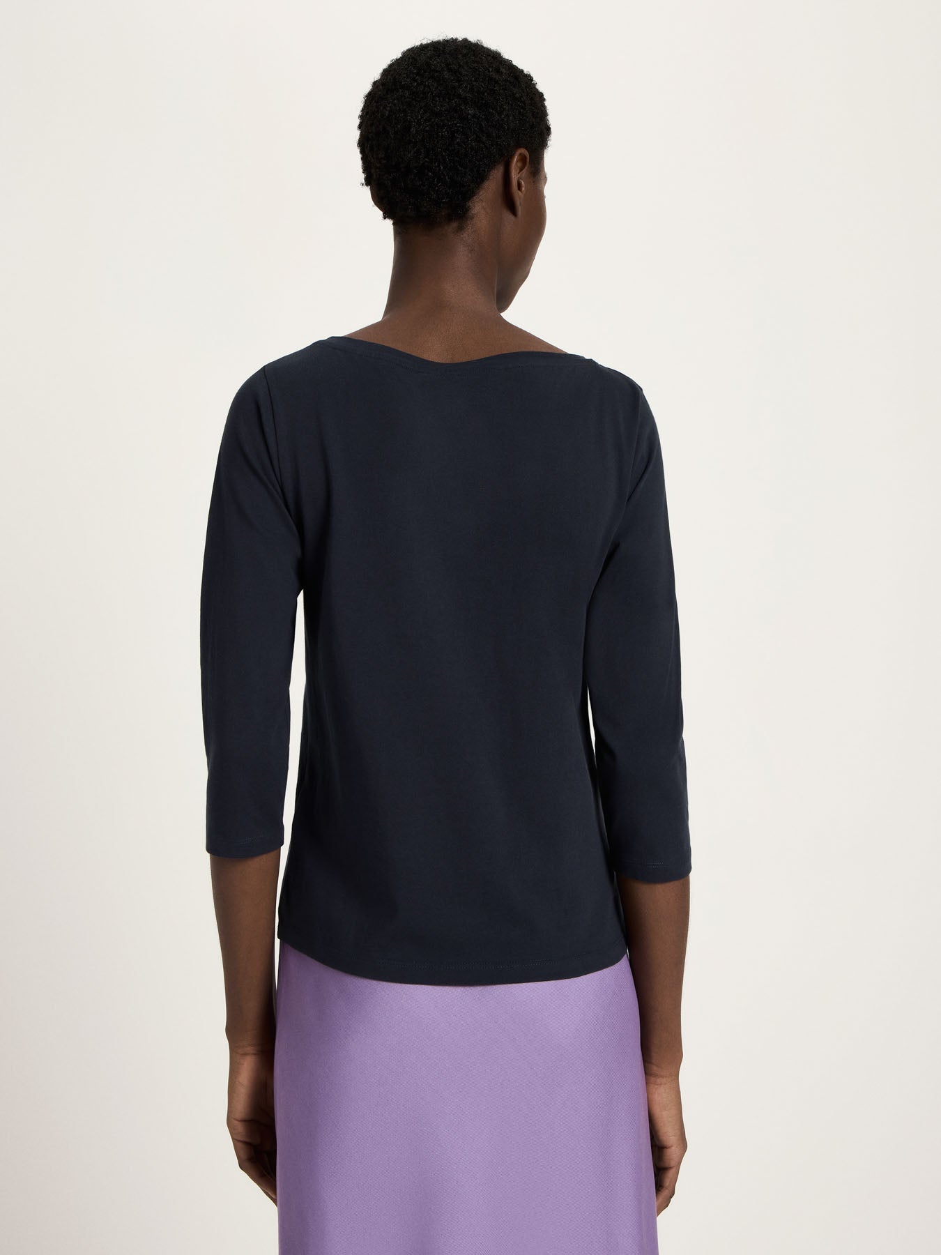 Spring Basic: Feminines, körpernahes U-Boot-Shirt aus 100 % Baumwolle aus kontrolliert biologischem Anbau in vielen verschiedenen Farben. Die verkürzten Ärmel und der moderne hohe Ausschnitt ergänzen die bewährte Qualität und erprobte Passform. GOTS-zertifiziert, vegan und klimaneutralisiert - nachhaltige Basics für jeden Tag mit bestem Gewissen.