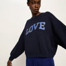 This statement sweatshirt combines organic cotton with recycled polyester for a high-quality material blend with a pleasant texture. The straight cut and front print lend the look a modern and confident feel. Whether worn casually with jeans or as a contrast to feminine styles, this sweatshirt combines comfort, style, and statement.