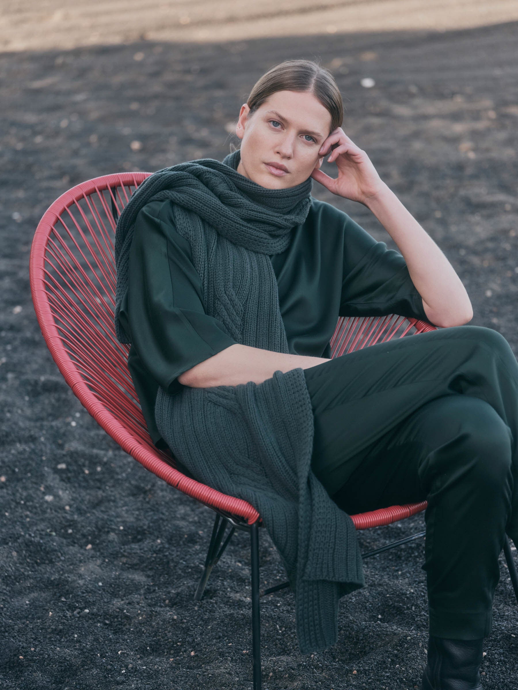 Weich, wärmend und vielseitig kombinierbar: Die feine Rippenstruktur mit dezentem Zopfmuster sorgt für eine zeitlose Optik, während die hochwertige Materialkombination ein angenehmes Tragegefühl schenkt – an kalten Wintertagen ebenso wie in der Übergangszeit. Ob lässig um den Hals geschlungen oder elegant über die Schultern gelegt, der Schal ist ein unverzichtbares Accessoire für Ihre Wintergarderobe.