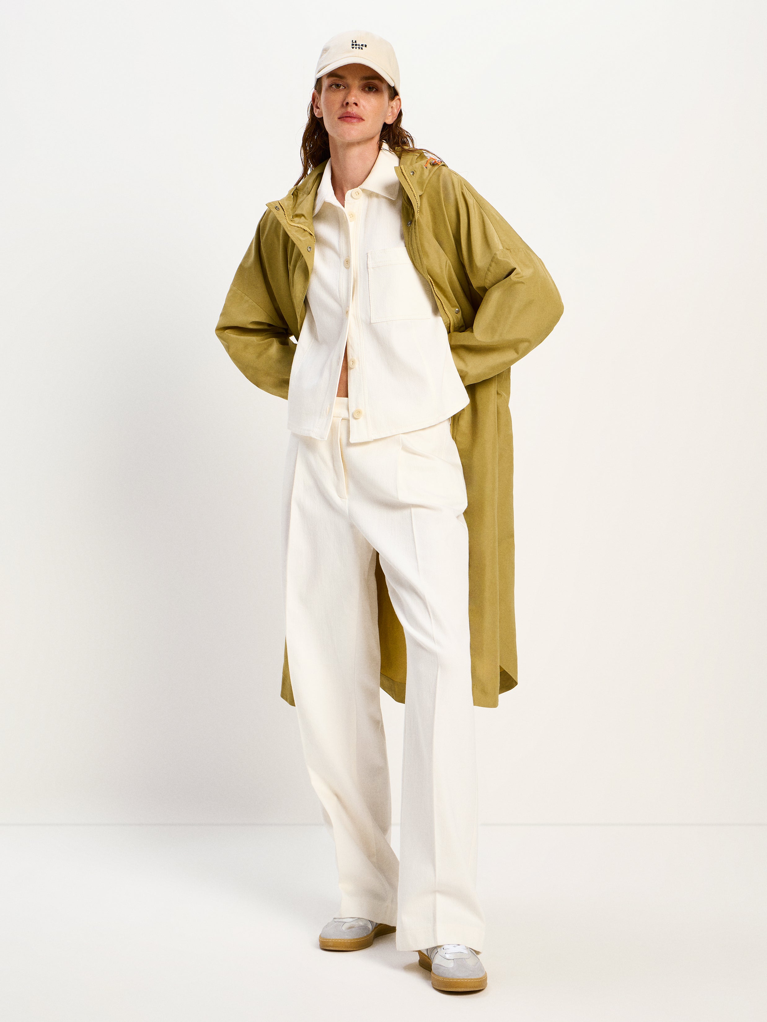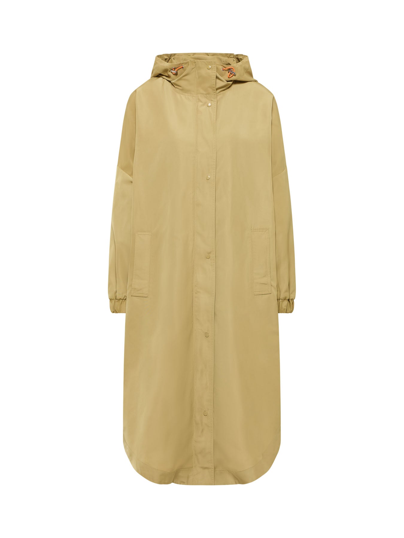 Wetterfest und stilvoll – der beschichtete Mantel aus recyceltem Polyester verbindet Funktionalität mit modernem Design. Die wasserabweisende Oberfläche schützt zuverlässig vor Wind und Nässe, während die legere, lange Silhouette und die Kapuze für einen urbanen Look sorgen. Praktische Details wie Druckknopfverschluss, seitliche Eingrifftaschen und verstellbare Kapuze runden den Tragekomfort ab. Ein nachhaltiges Essential für alle, die auch an unbeständigen Tagen nicht auf Stil verzichten möchten.