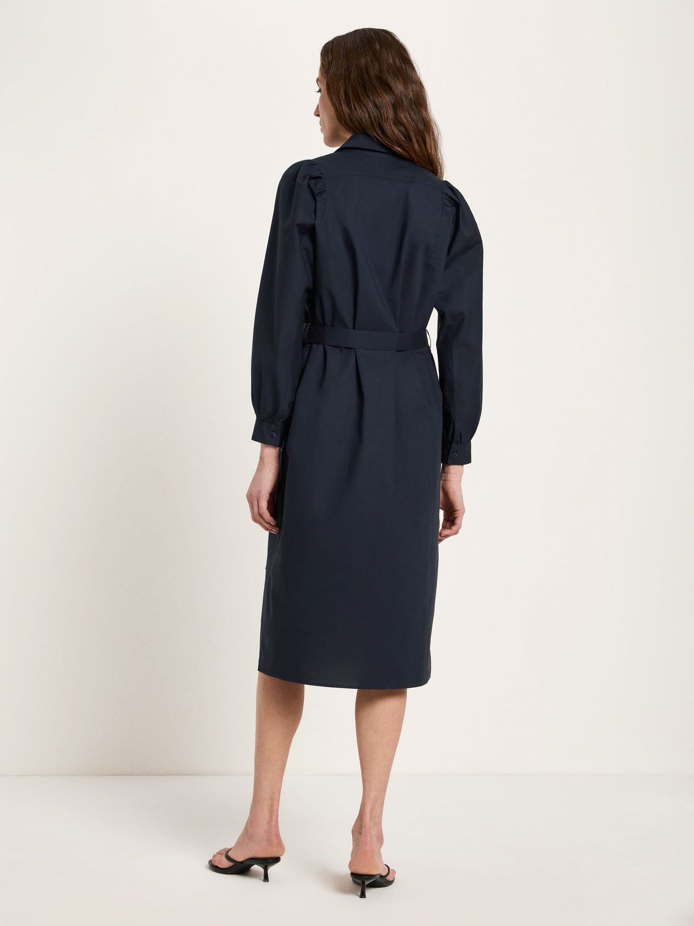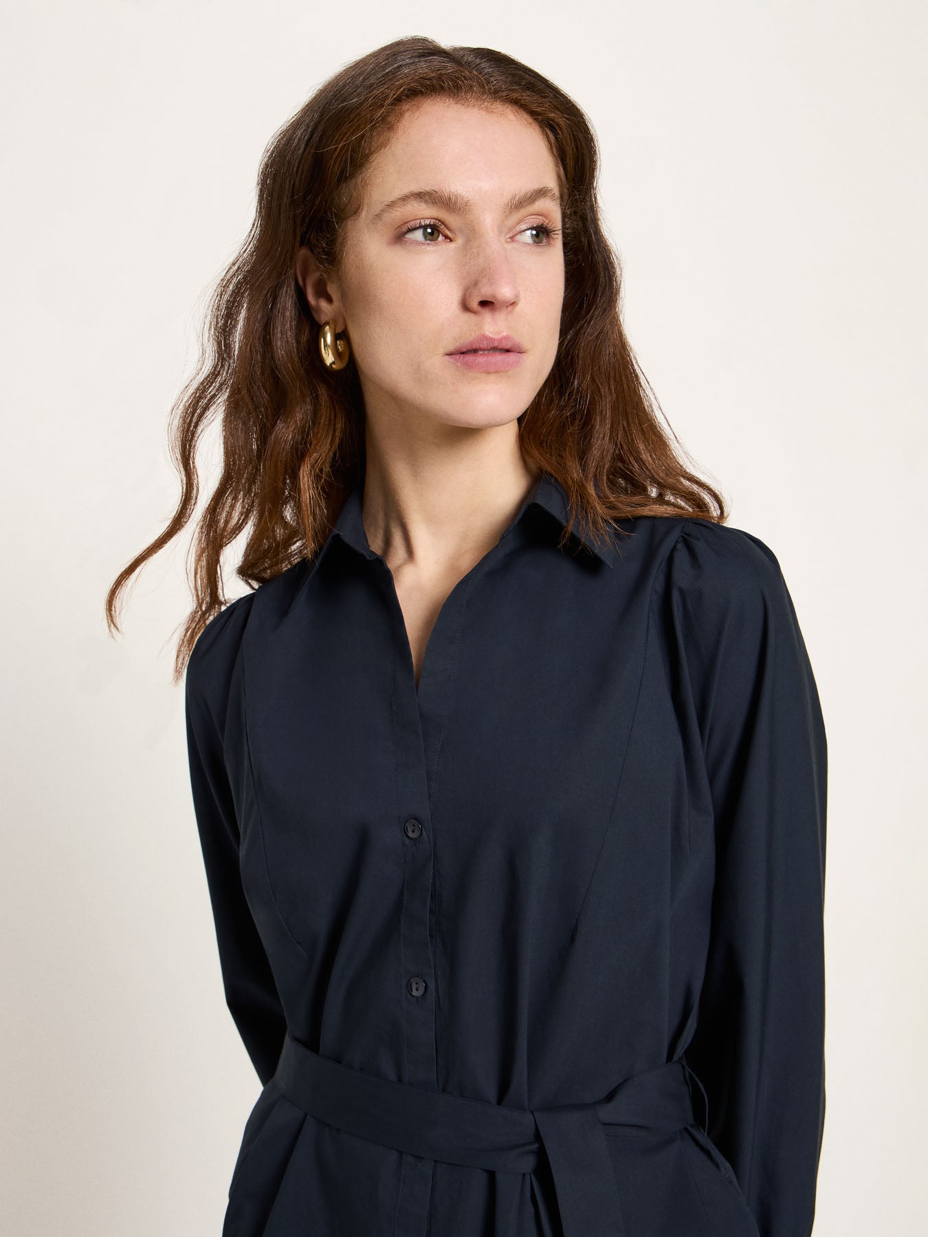 Feminine, timeless, and versatile: This organic cotton dress with gathers combines a clean shirt dress look with special details. The soft, natural material ensures a comfortable feel and makes the dress an easy companion – for everyday wear, the office, or special occasions. The collar and full button placket give the design structure, while the gathers add a soft, feminine touch. The tie belt allows you to accentuate the waist for a silhouette that can be styled casually or elegantly.