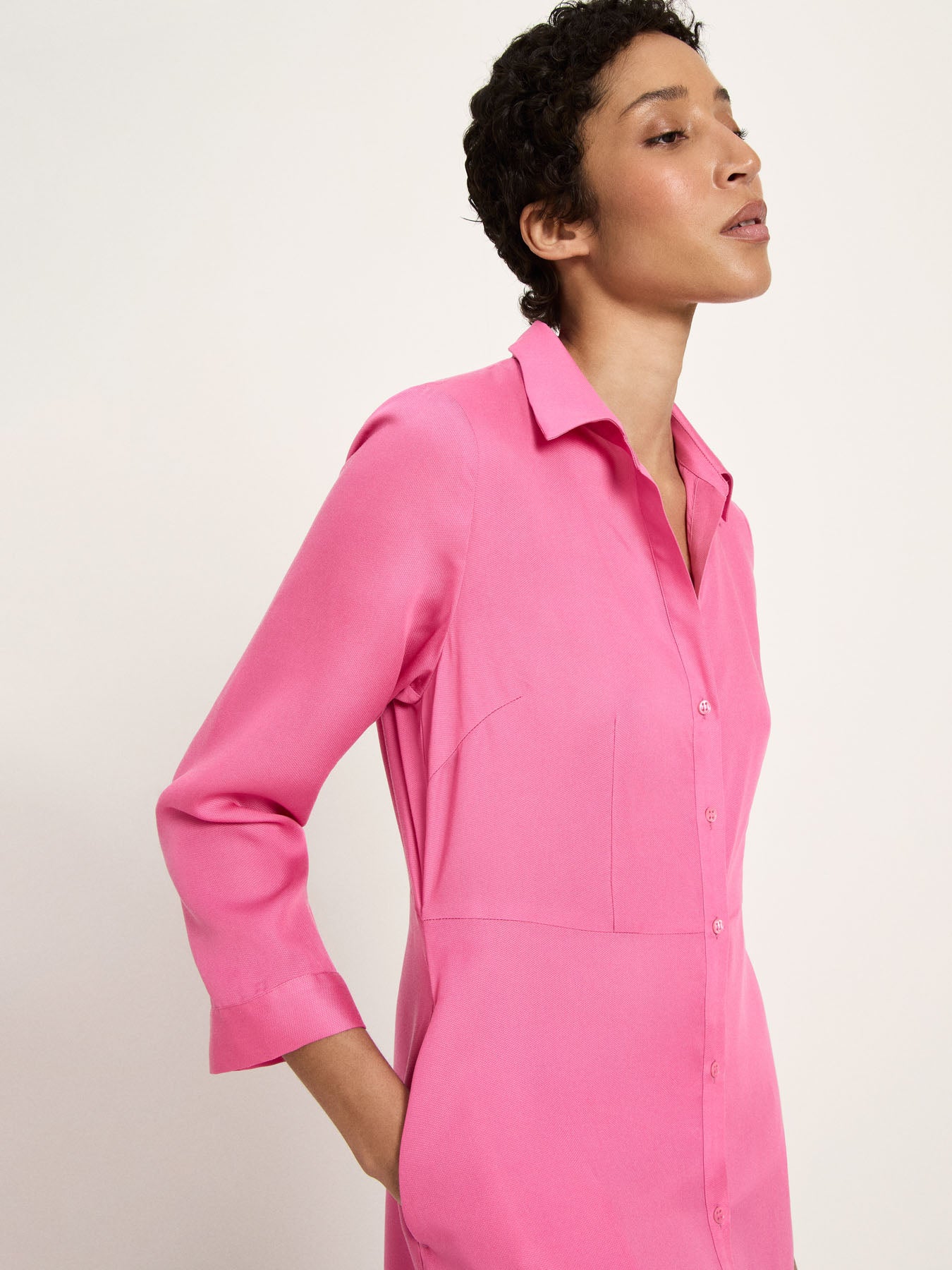 Timeless elegance meets sustainable innovation: This midi dress made from TENCEL™ combines feminine style with responsible material selection. The flowing TENCEL™ Lyocell fabric ensures a comfortable feel and a natural sheen, while the tailored cut and full-length button placket create a flattering silhouette.