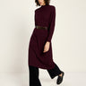 This ribbed-knit dress made from certified organic virgin wool impresses with its minimalist design and high-quality craftsmanship. The soft ribbed structure provides subtle texture, while the narrow stand-up collar and dropped shoulders lend the design a modern touch. The slightly flared midi length makes the dress versatile to wear—with tights and boots, over trousers, or with a waist belt for an accentuated silhouette. A stylish companion for cool days.