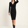 The soft, flowing fabric hugs the skin comfortably, while the deep V-neck and subtle wrap subtly accentuate the waist. The knee-length cut, long sleeves, and clean lines make this dress a versatile companion—for everyday wear, the office, or elegantly combined for an evening out.