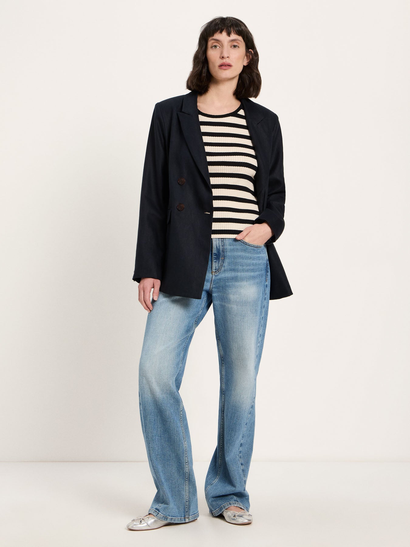 This tank top, crafted from premium waffle stripe jersey, combines a clean silhouette with comfortable freedom of movement. The stretchy organic cotton fabric gently hugs the body, ensuring a comfortable feel. Thanks to its soft material and close fit, this top is an ideal versatile essential – worn on its own or layered under blouses, knits, or jackets.