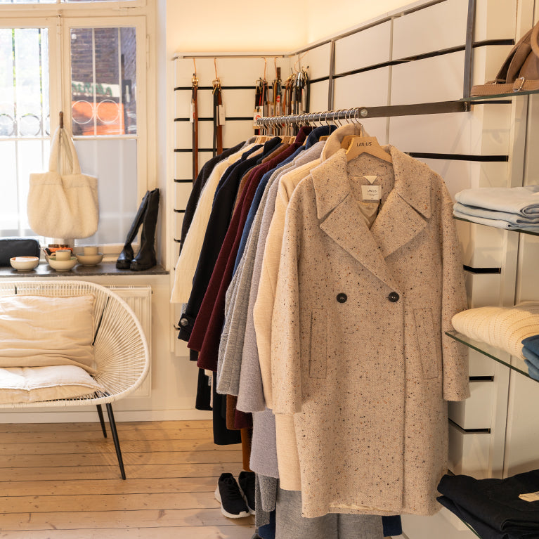 In a warm boutique atmosphere, you will find the current LANIUS collection in our stores in Cologne, as well as selected clothing and accessories from other brands.
