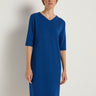 Potential favorite dress! The dress falls softly and has a perfect fit: slightly tailored silhouette, flared skirt, tapered V-neck and narrow half sleeves. The slight sheen of the fiber underlines the elegant look of the feminine dress. The compact, flexible material is crease-free, opaque and, thanks to elastane, keeps its shape. The special thing: this dress can be worn from both sides, at the front and at the back.