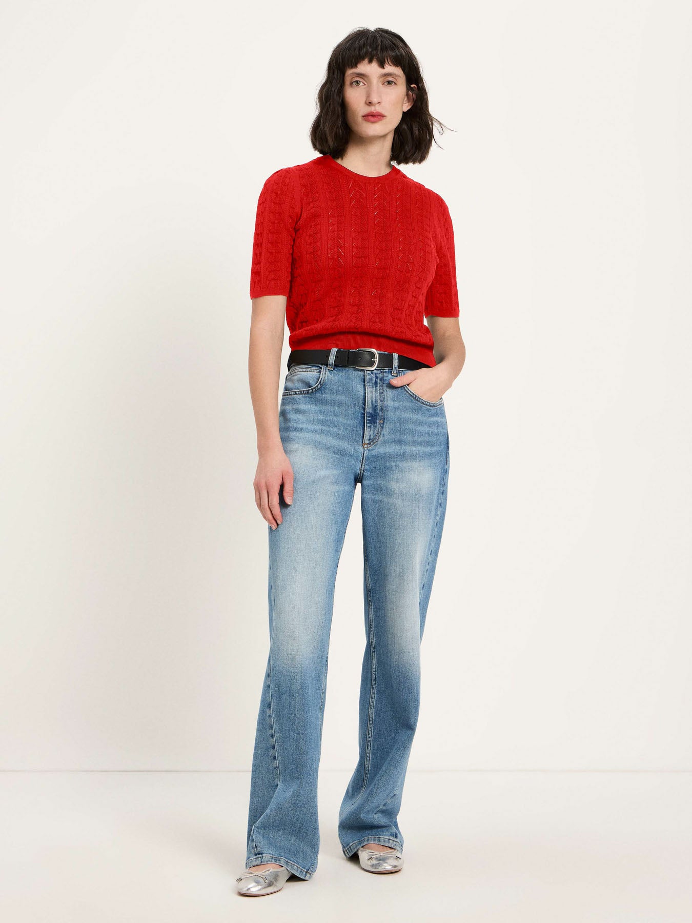 Minimalist, versatile, and exceptionally comfortable: Our short-sleeved organic cotton sweater is a clean essential for all seasons. The soft knit fabric feels gentle on the skin, is breathable, and makes this sweater the perfect companion – worn on its own in spring and summer or layered under a blazer, cardigan, or coat. The timeless cut creates a modern, relaxed look that goes with almost anything: from denim and wide-leg trousers to skirts.