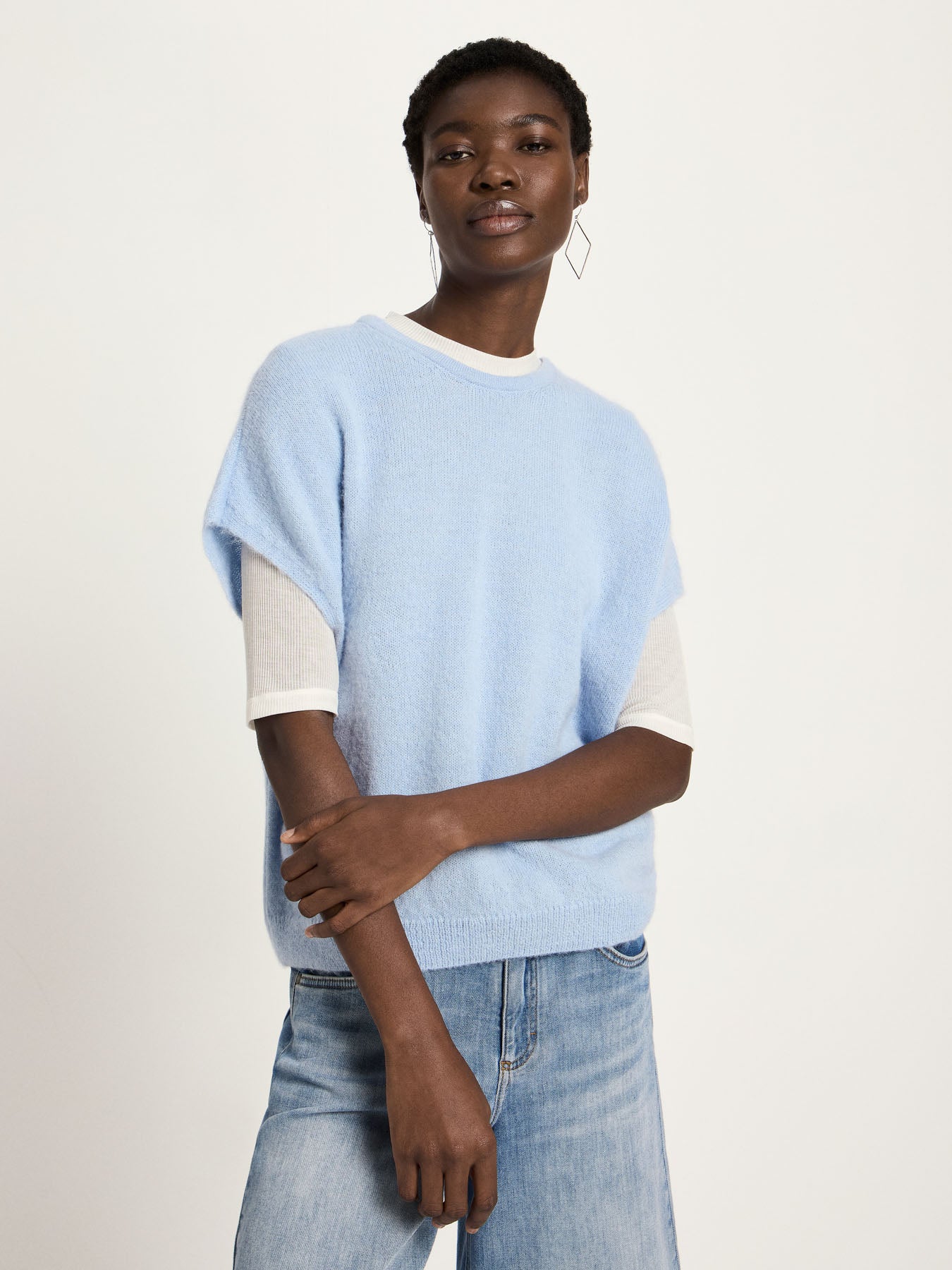 Unser Pullunder aus Schurwolle und Alpakawolle vereint Komfort, Stil und Nachhaltigkeit. Der kastige Schnitt mit kurzen Ärmeln und feinem Strick sorgt für eine moderne, lässige Silhouette. Ob über einem engen Langarmshirt oder solo getragen – der Pullunder bietet zahlreiche Kombinationsmöglichkeiten und begleitet uns stilvoll durch die Saison. Das weiche Material schmiegt sich angenehm an und sorgt für ein natürliches Tragegefühl.